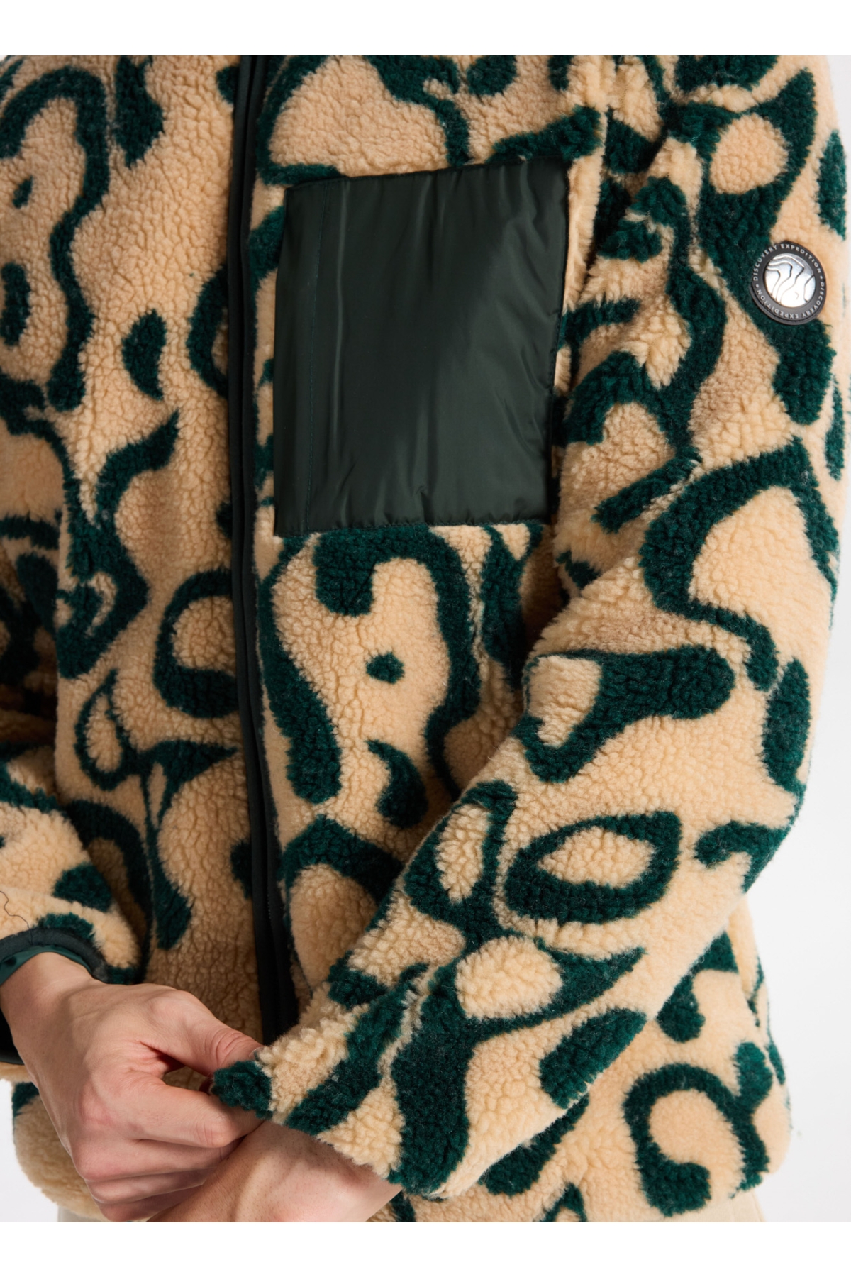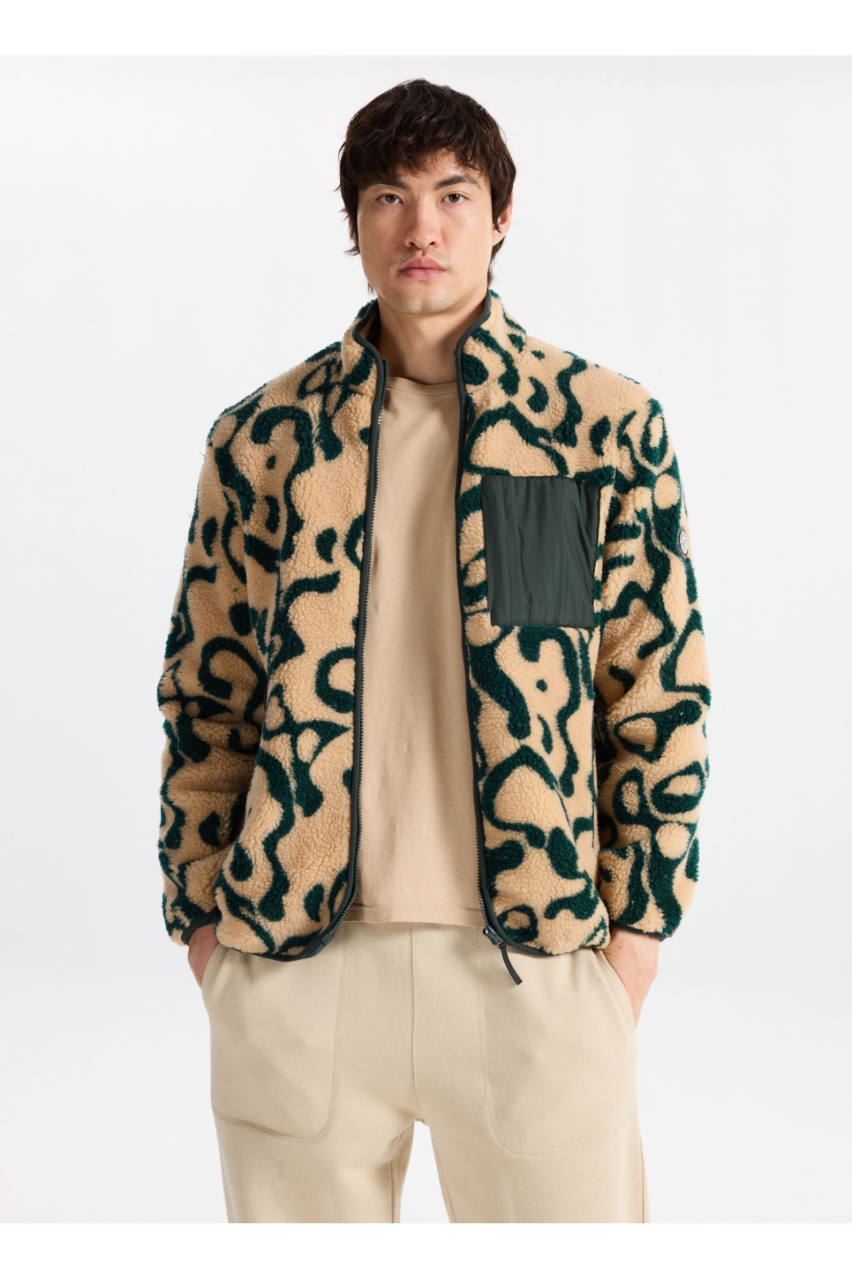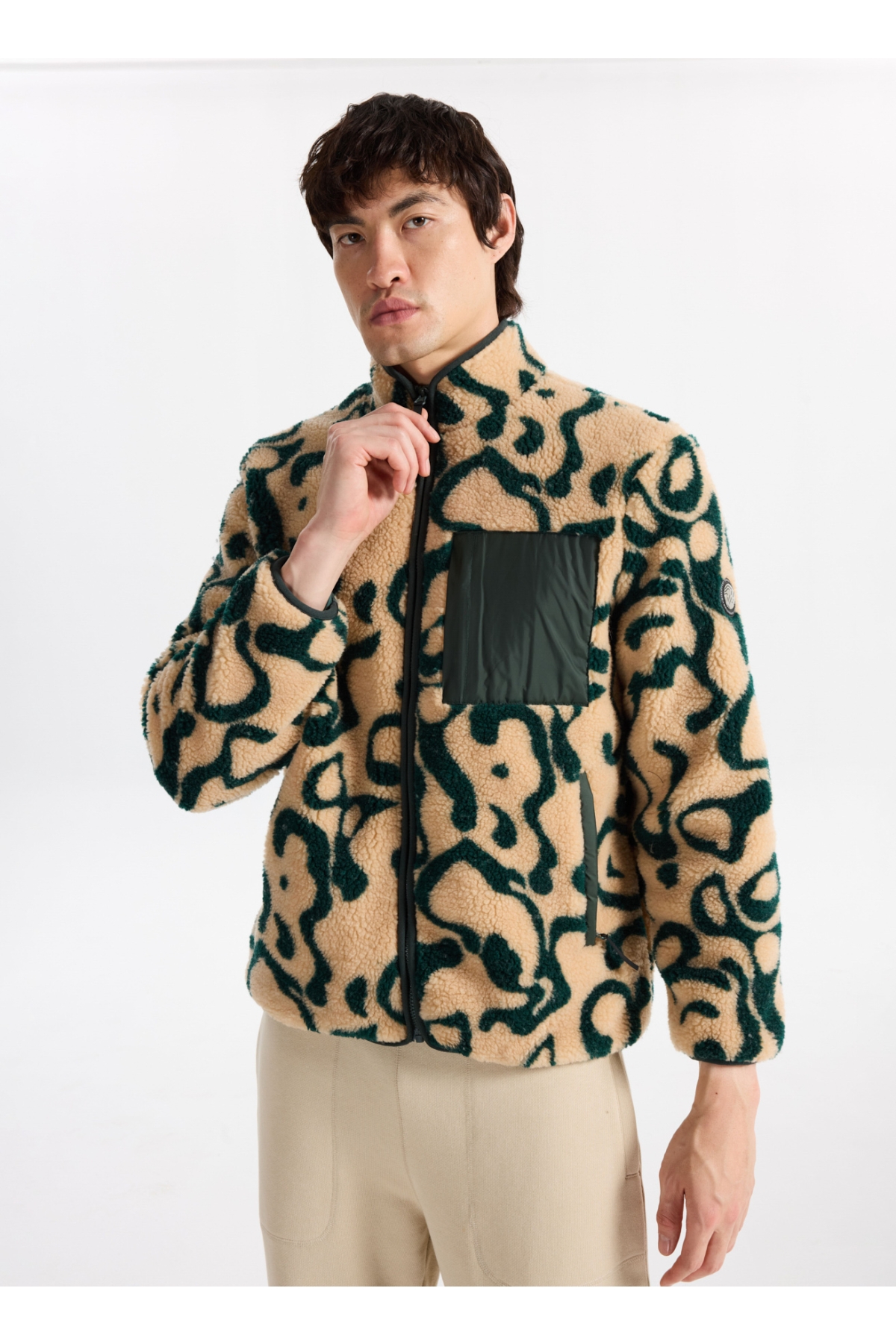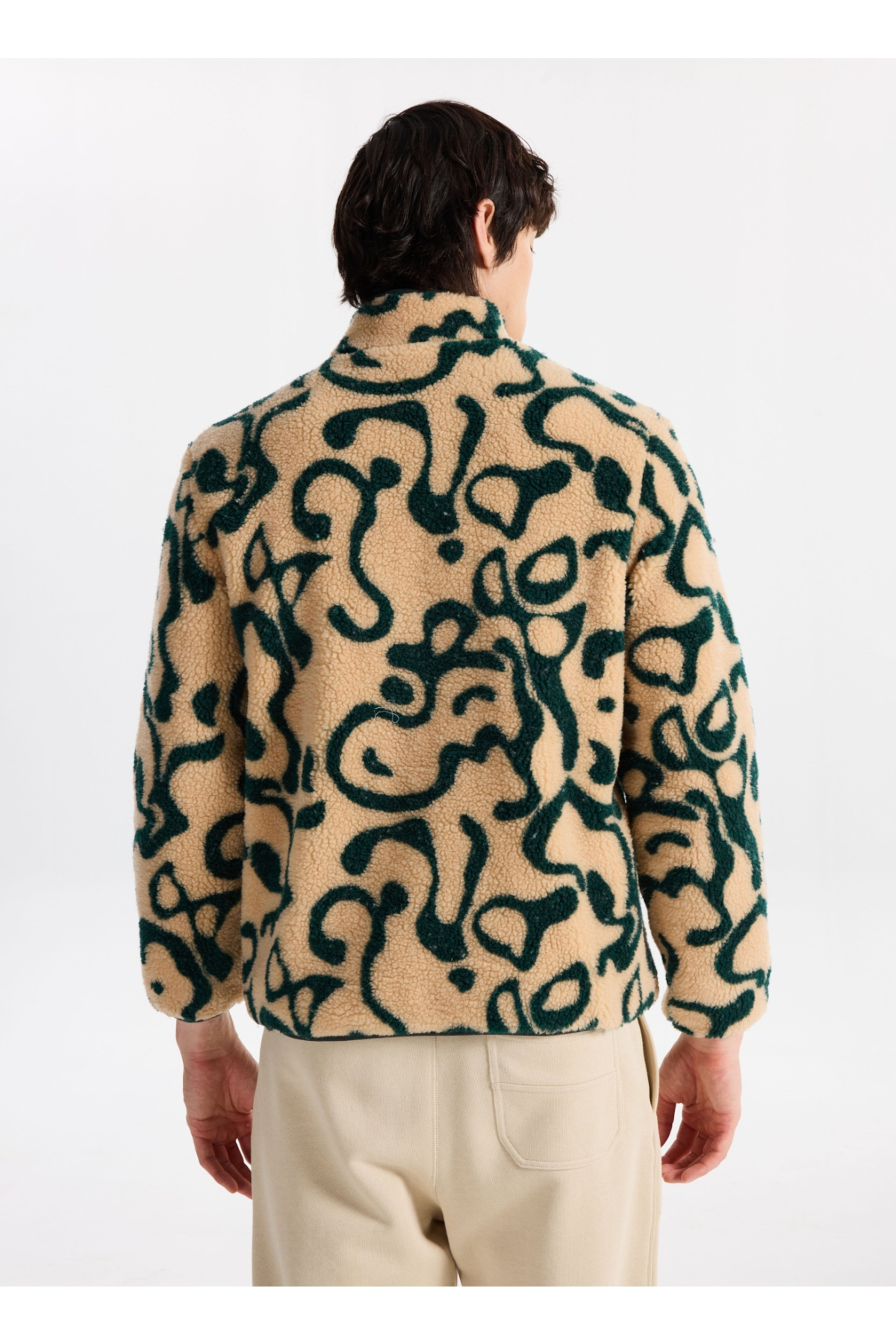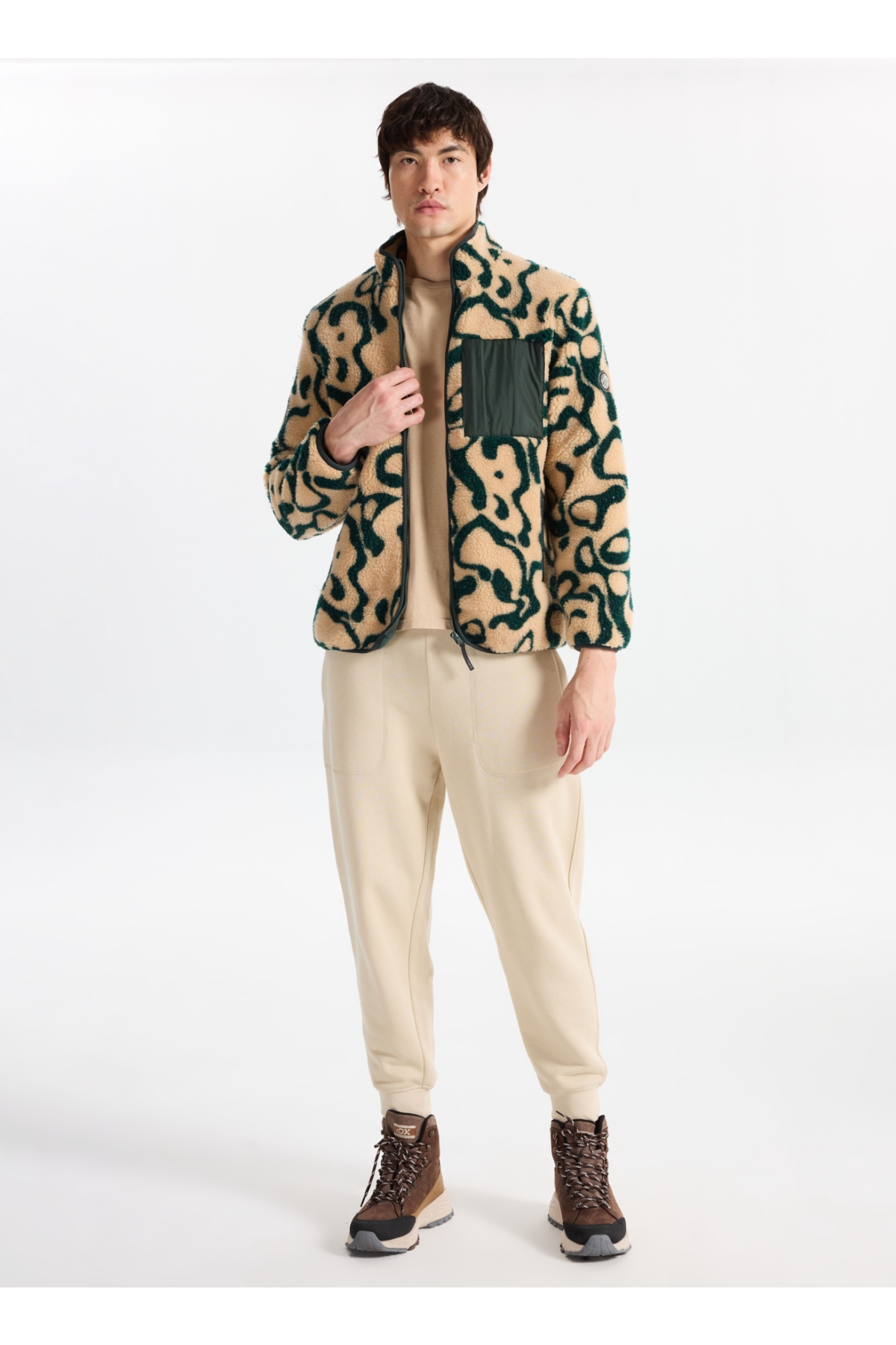 Discovery Expedition D5WM-SWT3807 Ekru - Yeşil Dik Yaka Relaxed Desenli Erkek Sweatmont