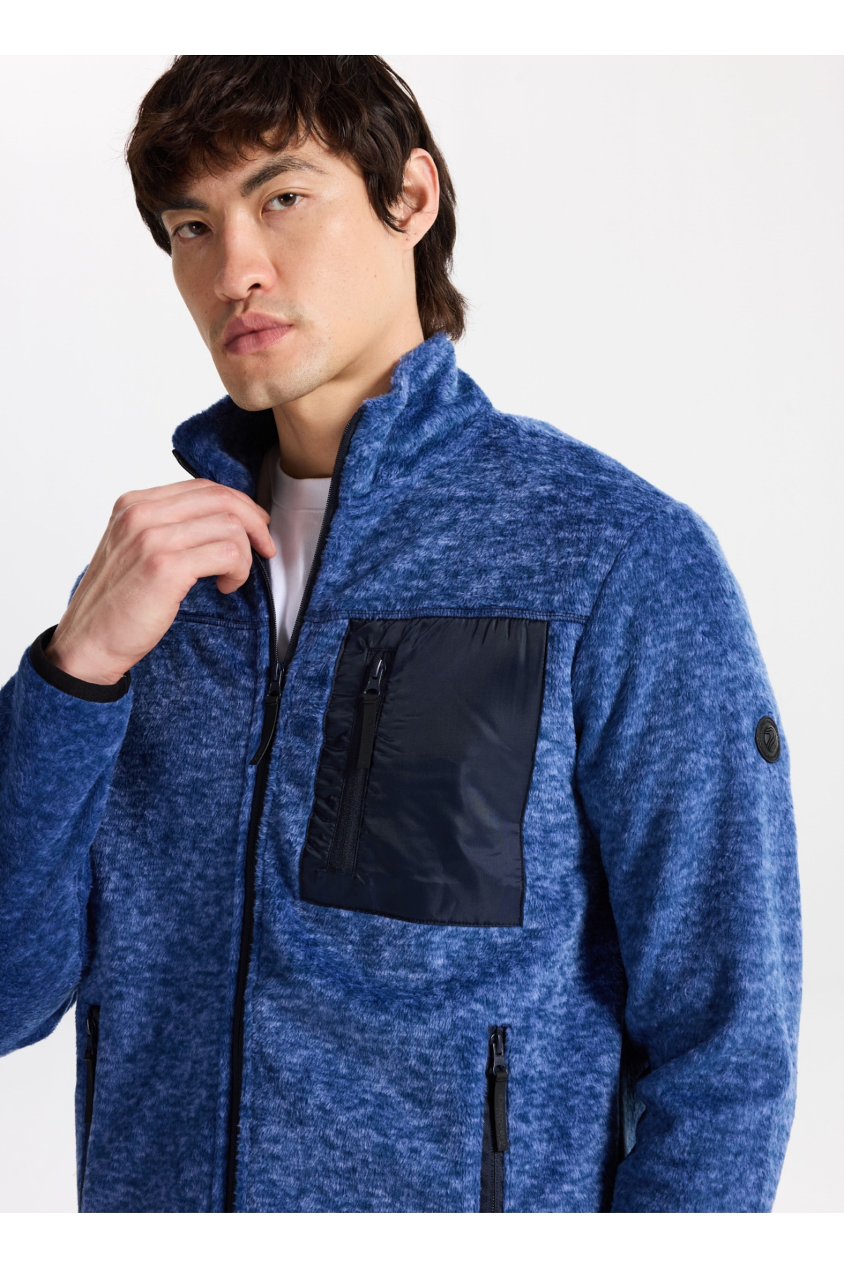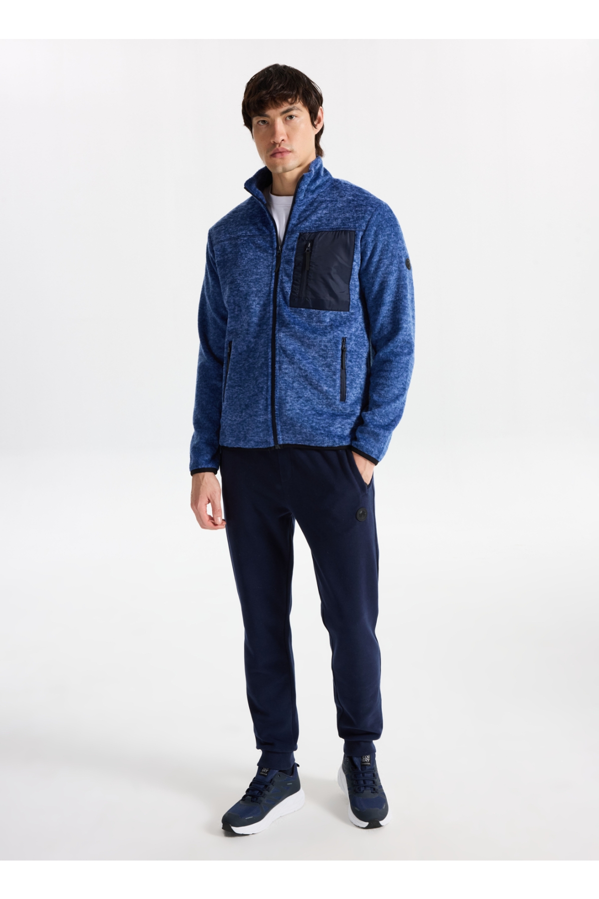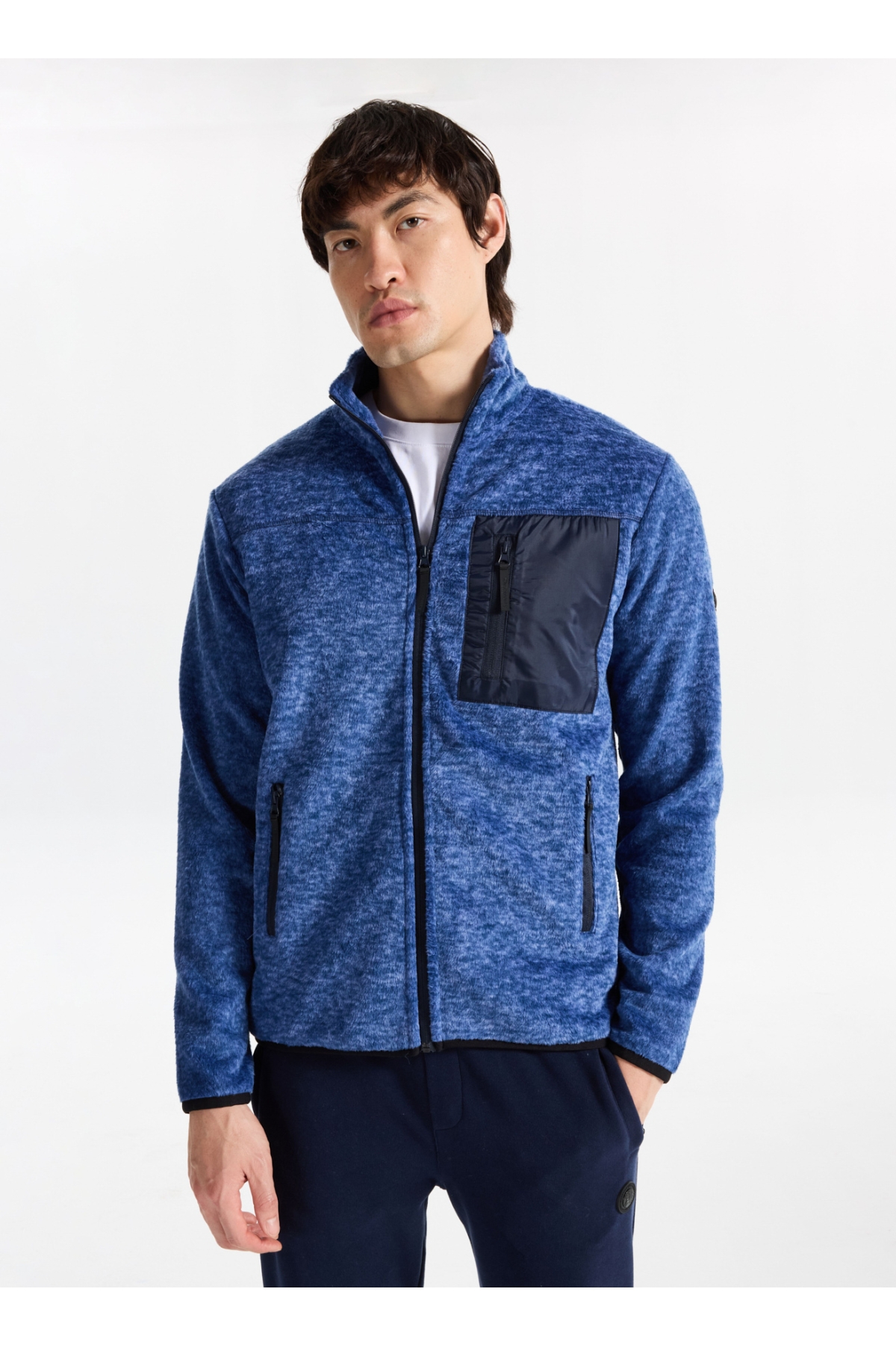 Discovery Expedition D5WM-SWT3808 Koyu Mavi Dik Yaka Relaxed Düz Erkek Polar Sweatshırt