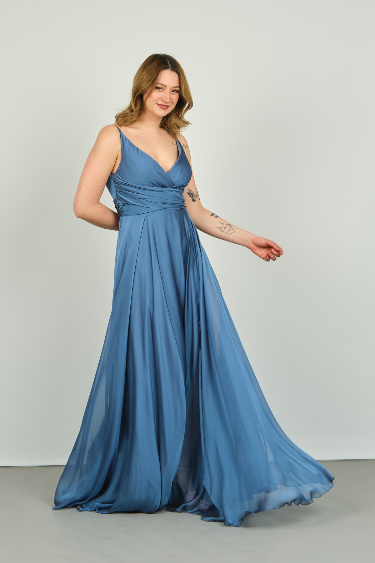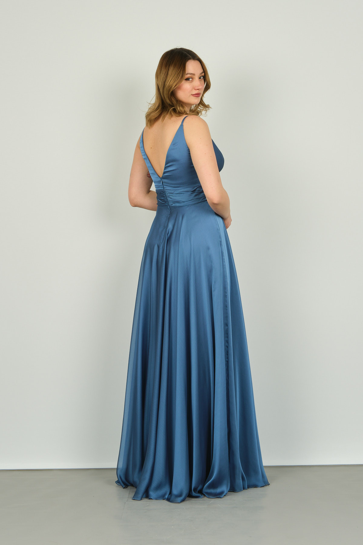 Ürün Tipi: Abiye Elbise;Materyal Bilgisi: Polyester;Kalıp Bilgisi: Dar kalıp;Detay: Ön-arka V yaka, derin yırtmaçlı, astarlı abiye elbise;