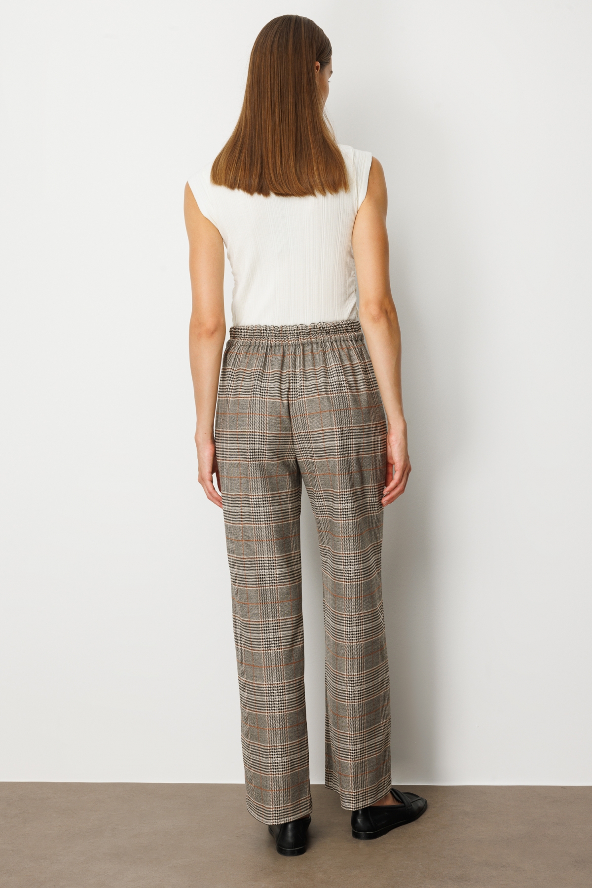Ürün Tipi: Pantolon;Kalıp Bilgisi: Regular Fit;Materyal Bilgisi: 64% Polyester, 34% Viskon, 2% Elastan;Menşei : Türkiye (TR);Detay: Bu pantolon modeli, dokuma kumaş tipiyle hem şık hem de dayanıklı bir yapı sunar. Beli lastikli tasarımı gün boyu konfor sağlarken, bol paça kesimiyle özgür ve zarif bir siluet oluşturur. Yan cepler ise hem işlevsel hem de stil tamamlayıcı detaylar olarak öne çıkar. Rahatlığı ve modern görünümü bir arada sunan bu pantolon, günlük kullanımda ve şehir stilinde ideal bir tercihtir;Model Ölçüleri(cm) : Boy - 176, Göğüs - 84, Bel – 61, Kalça - 89;Numune Beden: Modelimiz ürünün en küçük bedenini denemiştir;Ürün Boyu(cm): 110;