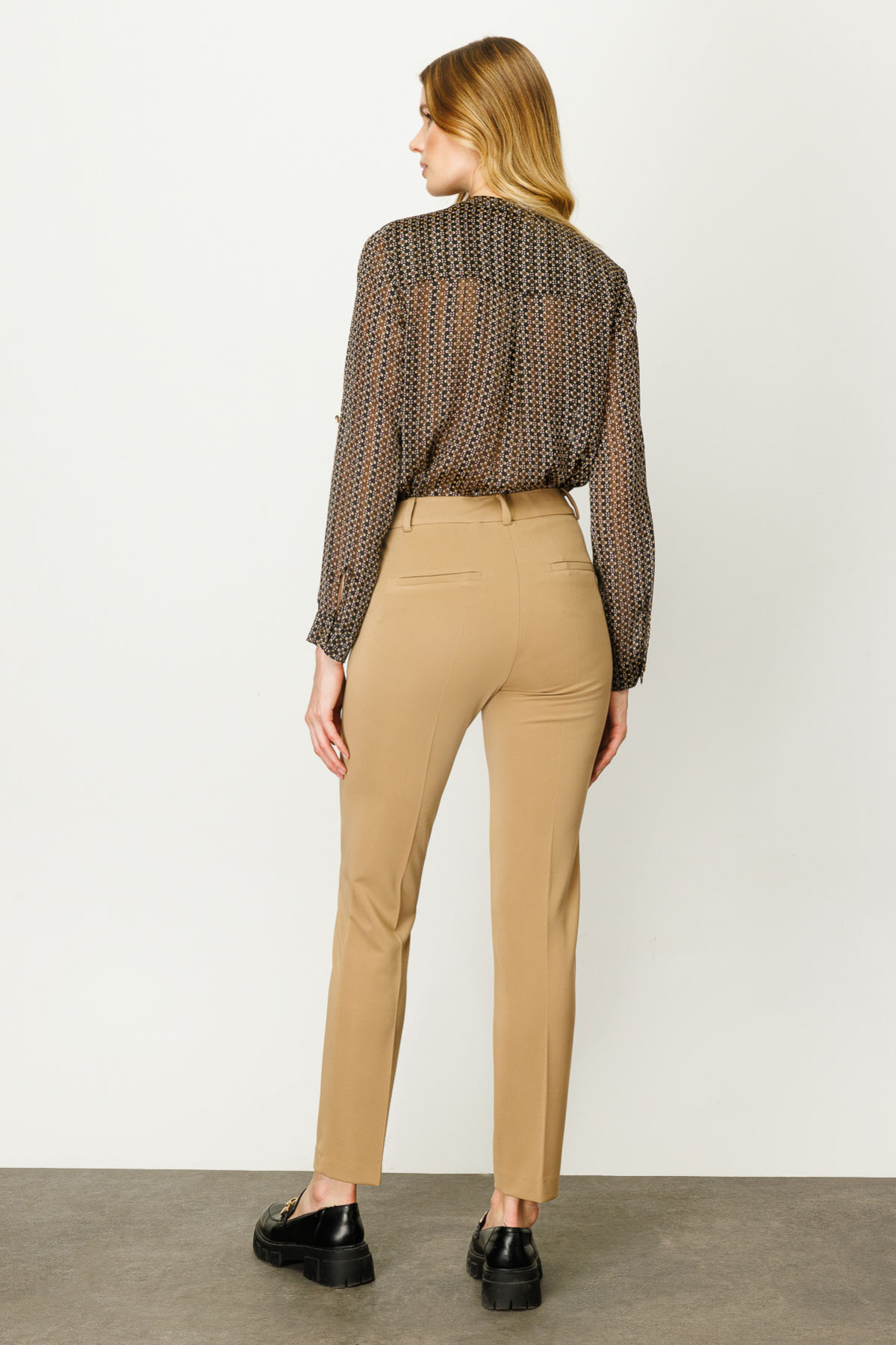 Ürün Tipi: Pantolon;Kalıp Bilgisi: Tam kalıp;Materyal Bilgisi: %97 Polyester %3 Lycra;Detay: Dar paça, cepli, ara bel, kendinden dokulu kumaş pantolon;Model Ölçüleri(cm) / Üzerindeki Ürün: Boy - 176, Göğüs - 84, Bel – 61, Kalça - 89 / 36 beden;Ürün Boyu(cm): 101;