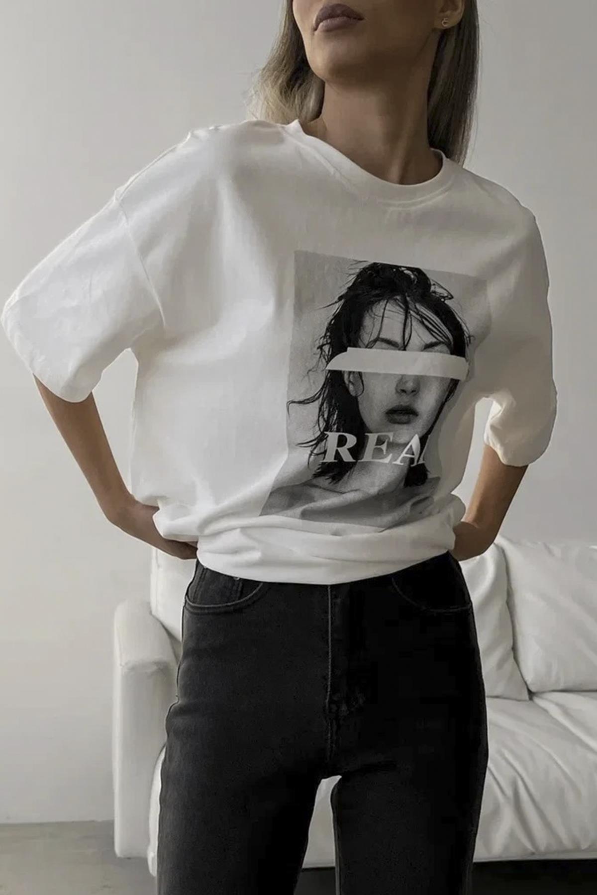 Madmext Ekru Oversize Baskılı Kadın Tişört MG1764Madmext Ekru Oversize Baskılı Kadın Tişört MG1764