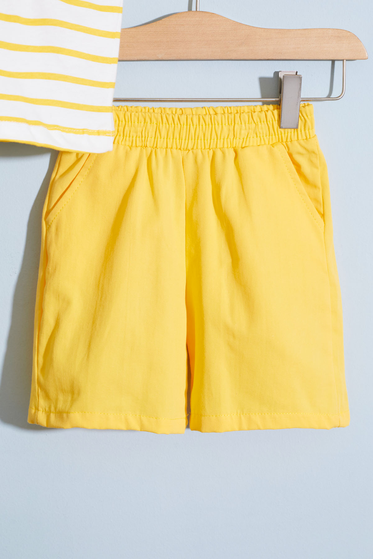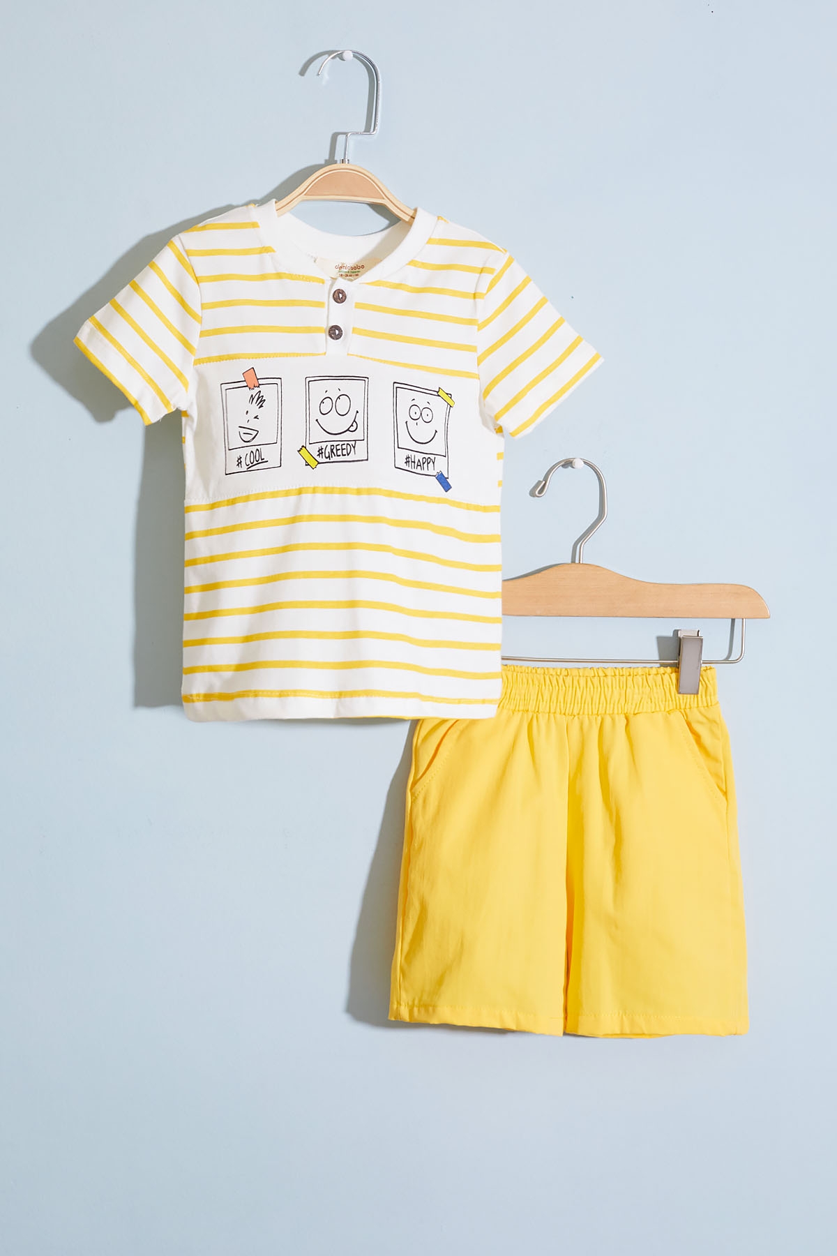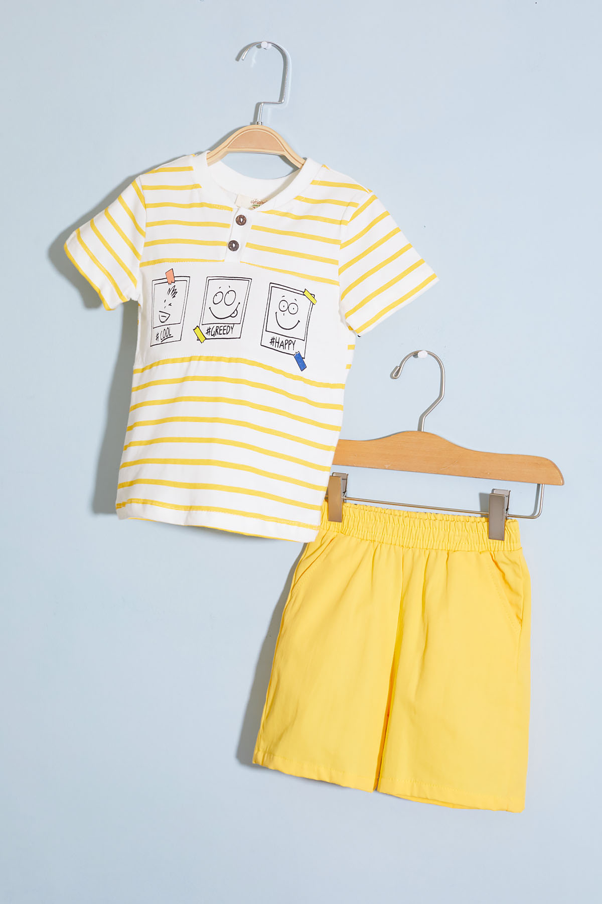 Kumaş İçeriği: %100 Pamuk İçerikli Kumaştır. Türkiye'de Üretilmiştir. Çizgi Desenli Baskılı, Bisiklet Yaka T-shirt ve Keten Şorttan Oluşan Erkek Bebek Şortlu Takım Modeli. Maximum 30 Derece Sıcaklıkta Yıkayınız. Ağartıcı Kullanmayınız. Orta Sıcaklıkta Ütüleyiniz. Kuru Temizleme Yapılmaz. Tamburlu Kurutma Uygulanmaz.