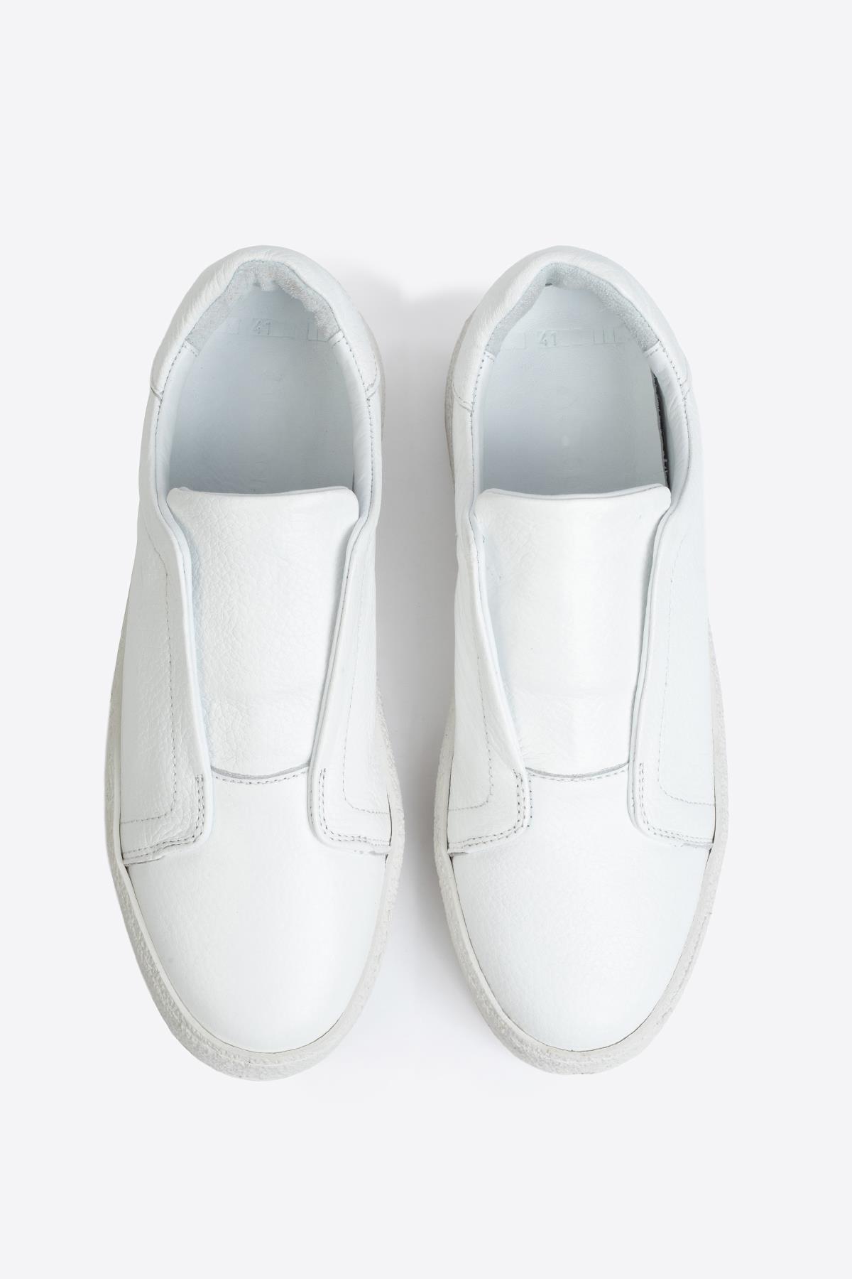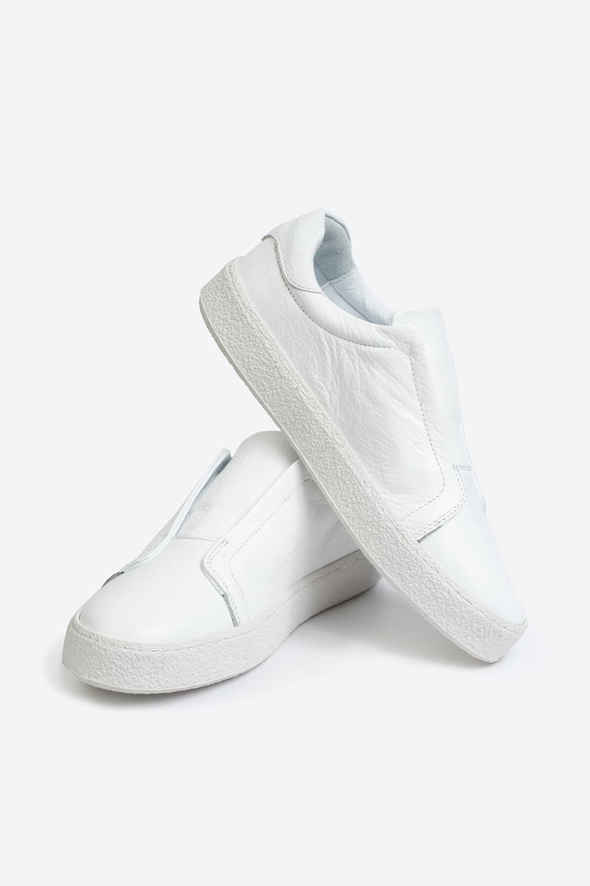 Şıklık ve rahatlığı bir arada sunan erkek beyaz deri sneaker, zamansız tasarımıyla gardırobunuzun vazgeçilmez parçalarından biri olacak. Yumuşak dokulu flotur deri, ayağınıza gün boyu konfor sağlarken, sağlam kauçuk taban uzun ömürlü kullanım sunar. Minimalist stili sayesinde jean, chino ve şort kombinlerinizle kolayca uyum sağlar. Hafif yapısı ve nefes alabilir özelliği ile dört mevsim kullanılabilir. %100 gerçek flotur deri Dayanıklı ve kaymaz kauçuk taban Konforlu iç astar Günlük, casual ve smart-casual kombinler için uygun