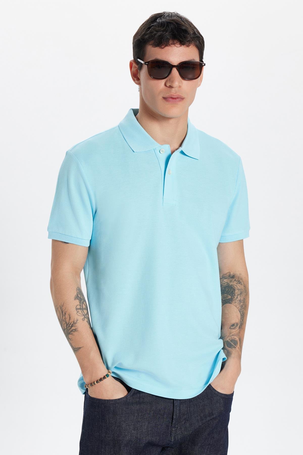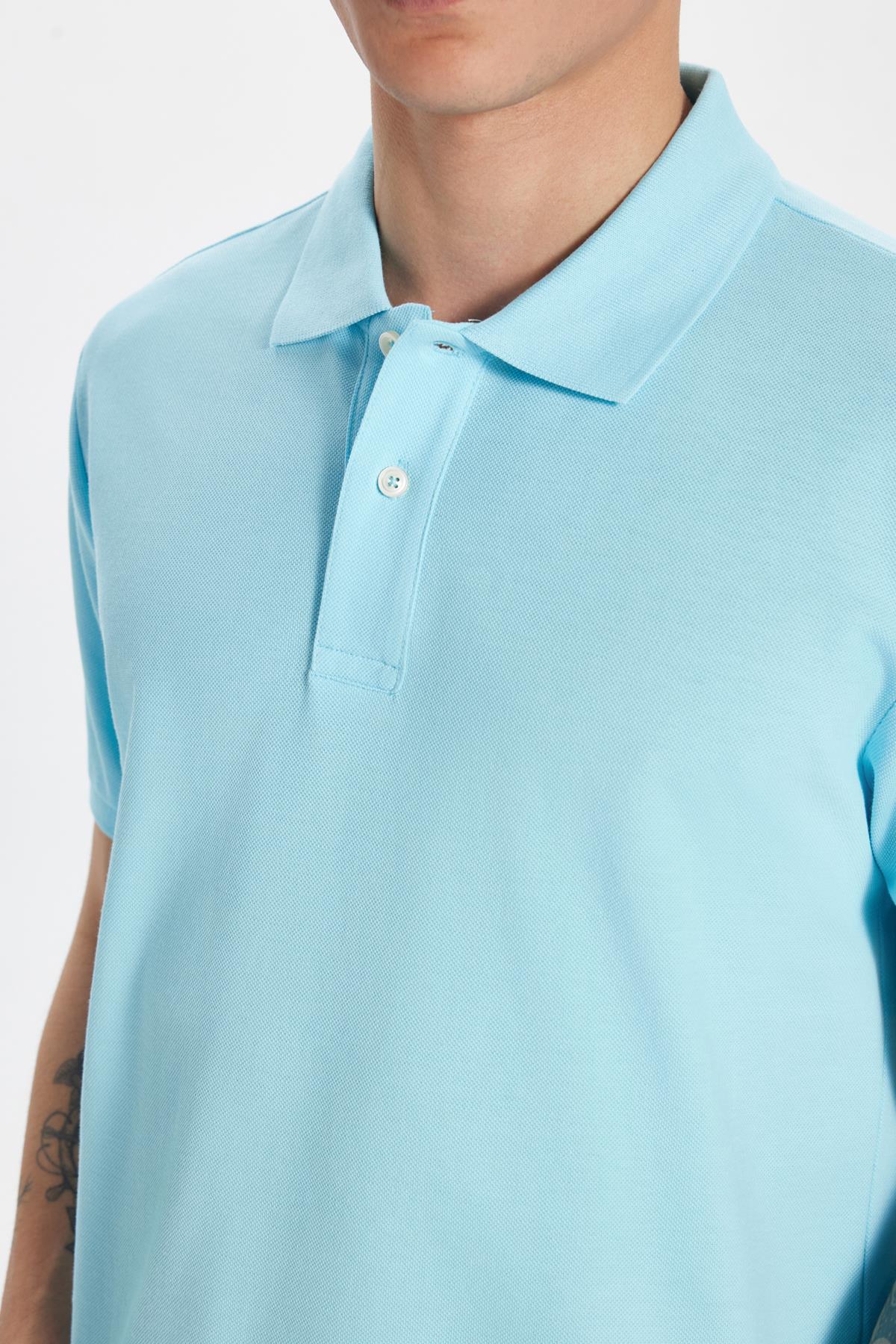 AnasayfaGiyimTişörtKısa kollu tişörtErkek slim fit dar kesim %100 pamuk mavi polo yaka tişört