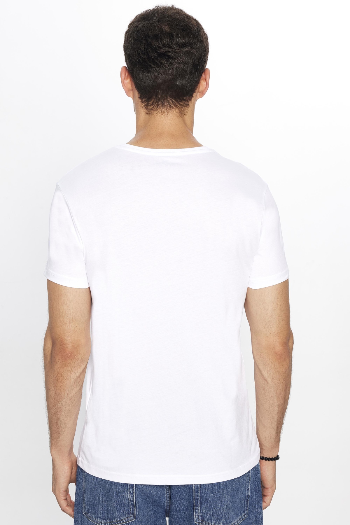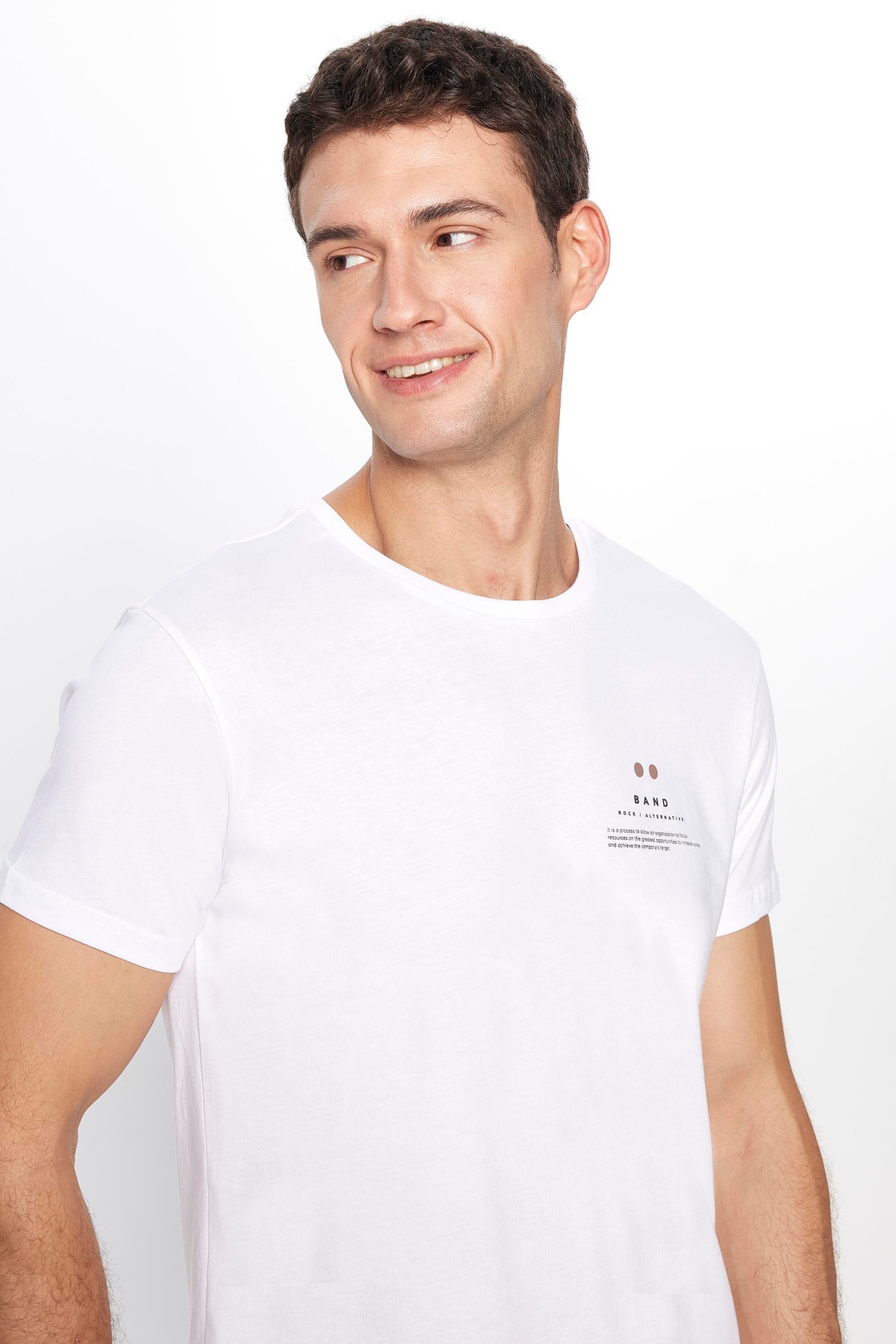 AnasayfaGiyimTişörtKısa kollu tişörtErkek slim fit dar kesim %100 pamuk yumuşak dokulu baskılı beyaz bisiklet yaka tişört