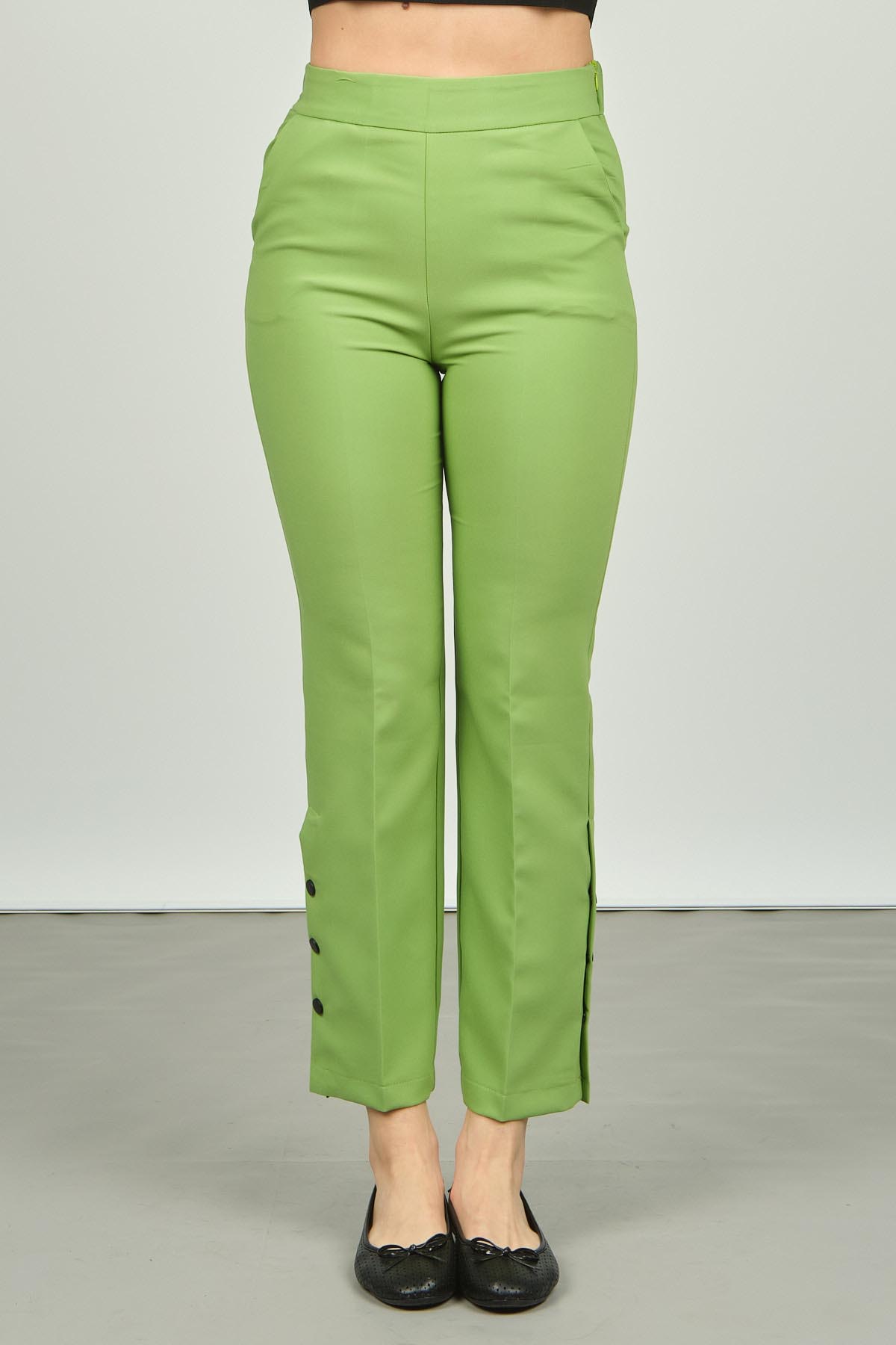 Ürün Tipi: Pantolon;Kalıp Bilgisi: Dar kalıp;Materyal Bilgisi: %90 Polyester %10 Likra;Detay: Paçaları düğme detaylı, dar paça, normal bel, beli lastikli, dar kalıp pantolon;Model Ölçüleri(cm) / Üzerindeki Ürün: Boy - 175, Göğüs - 87, Bel – 65, Kalça - 93 / 38 beden;