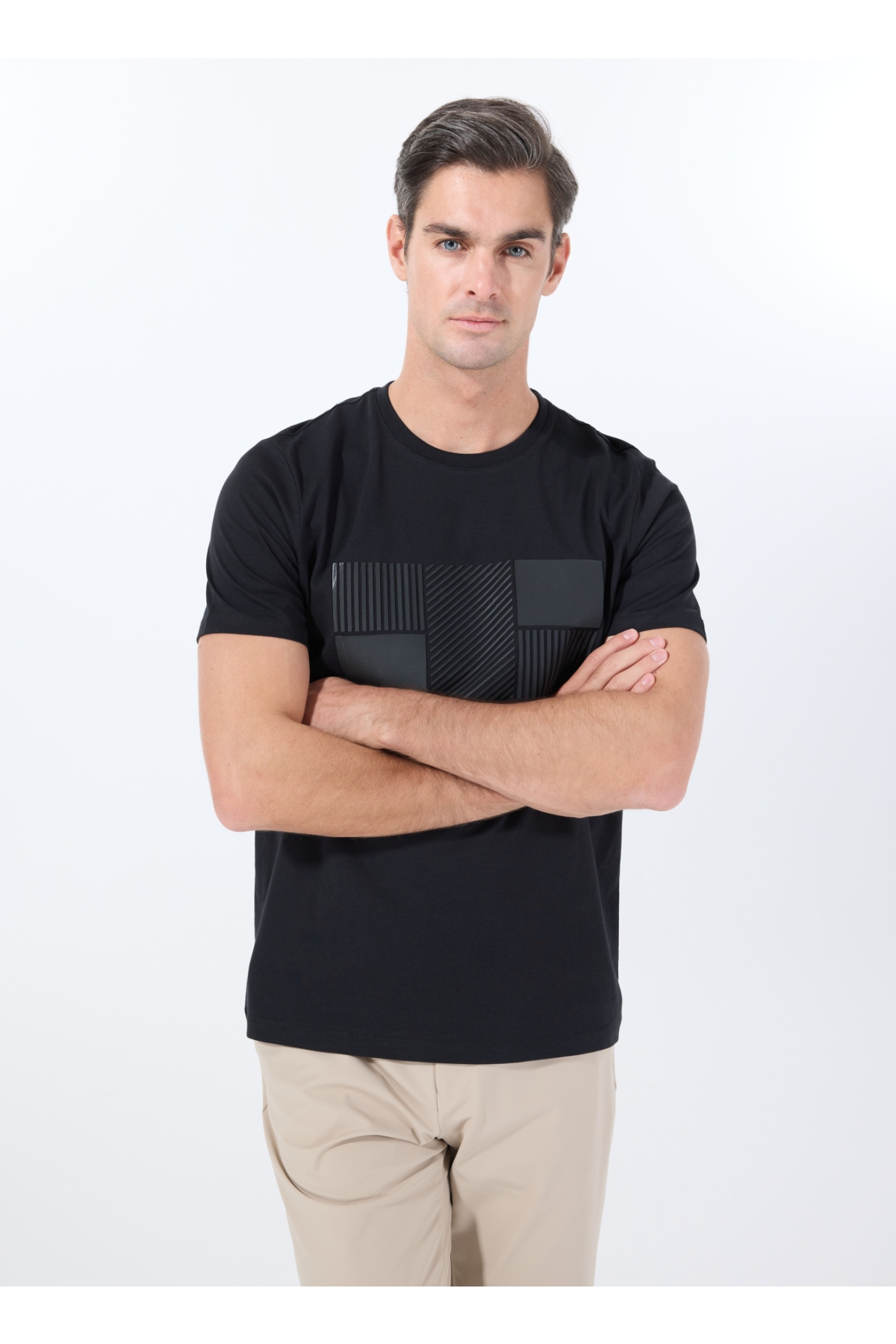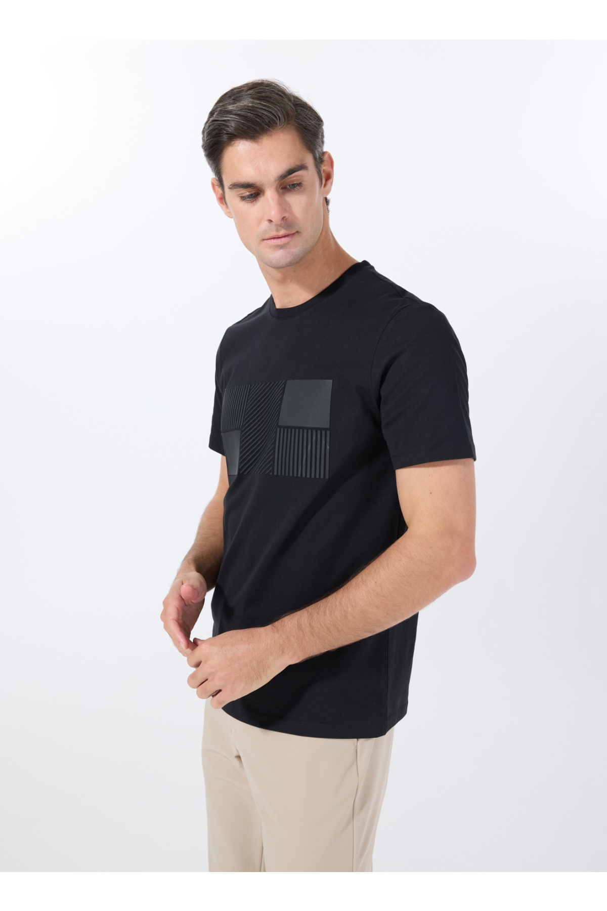 Fabrika Bisiklet Yaka Baskılı Siyah Erkek T-Shirt F5SM-TST 2076
