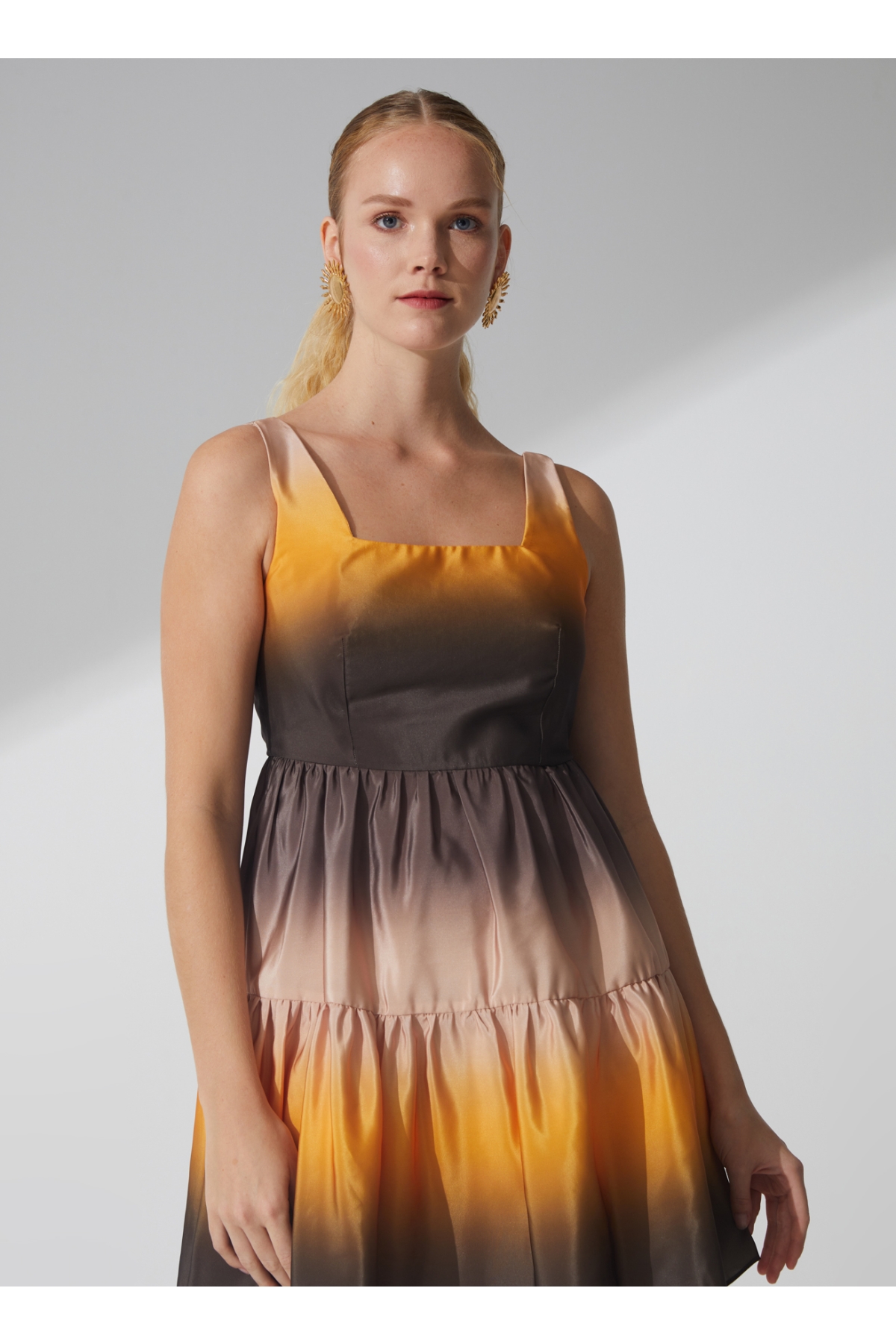 Fabrika'nın çok renkli elbisesi, yaz aylarının enerjisini yansıtan dinamik bir parça olarak dolabınıza katılmayı bekliyor. Kare yakası ve kolsuz tasarımıyla ferah bir görünüm sunan bu elbise, kabarik kalıbı sayesinde rahat hareket imkanı tanır. Yüzlerce farklı renkten oluşan deseniyle dikkat çeken bu model, her ortamda şıklığınızı ön plana çıkaracak.Günlük hayatta rahatlıkla tercih edebileceğiniz gibi özel davetlerde de göz alıcı bir seçenek oluşturur. Sandalet veya topuklu ayakkabılarla kombinleyerek hem gündüz hem de akşam etkinliklerinde stilinizi tamamlayabilirsiniz. Aksesuar seçiminde ise büyük küpeler ya da ince bileziklerle zarif dokunuşlar yaparak görünümünüzü zenginleştirebilirsiniz.Yaz mevsiminin sıcak günlerinde serin tutma özelliği ile öne çıkan Fabrika elbisesi plaj partileri, piknikler veya arkadaş buluşmaları için ideal bir tercihtir. Üzerine hafif bir ceket ekleyerek akşam serinliklerine karşı hazırlıklı olabilirsiniz.Bu eşsiz parçayı gardırobunuza eklemek için daha fazla beklemeyin! Şimdi satın alarak tarzınızı yenileyebilirsiniz!