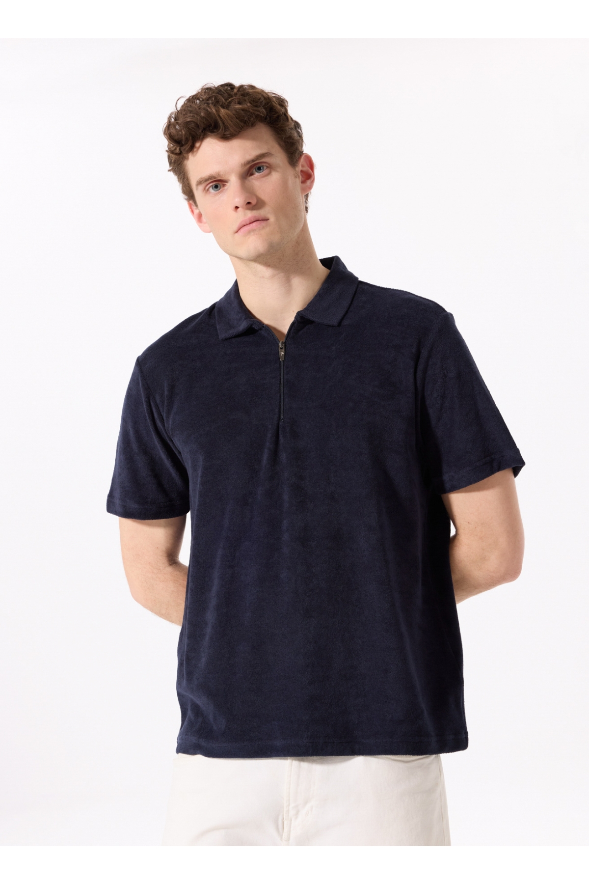 Fabrika Düz Lacivert Erkek Polo T-Shirt F5SM-TST 2776