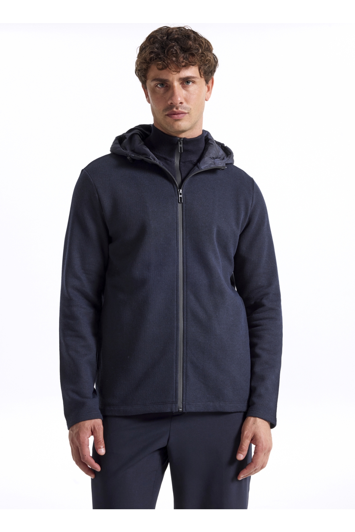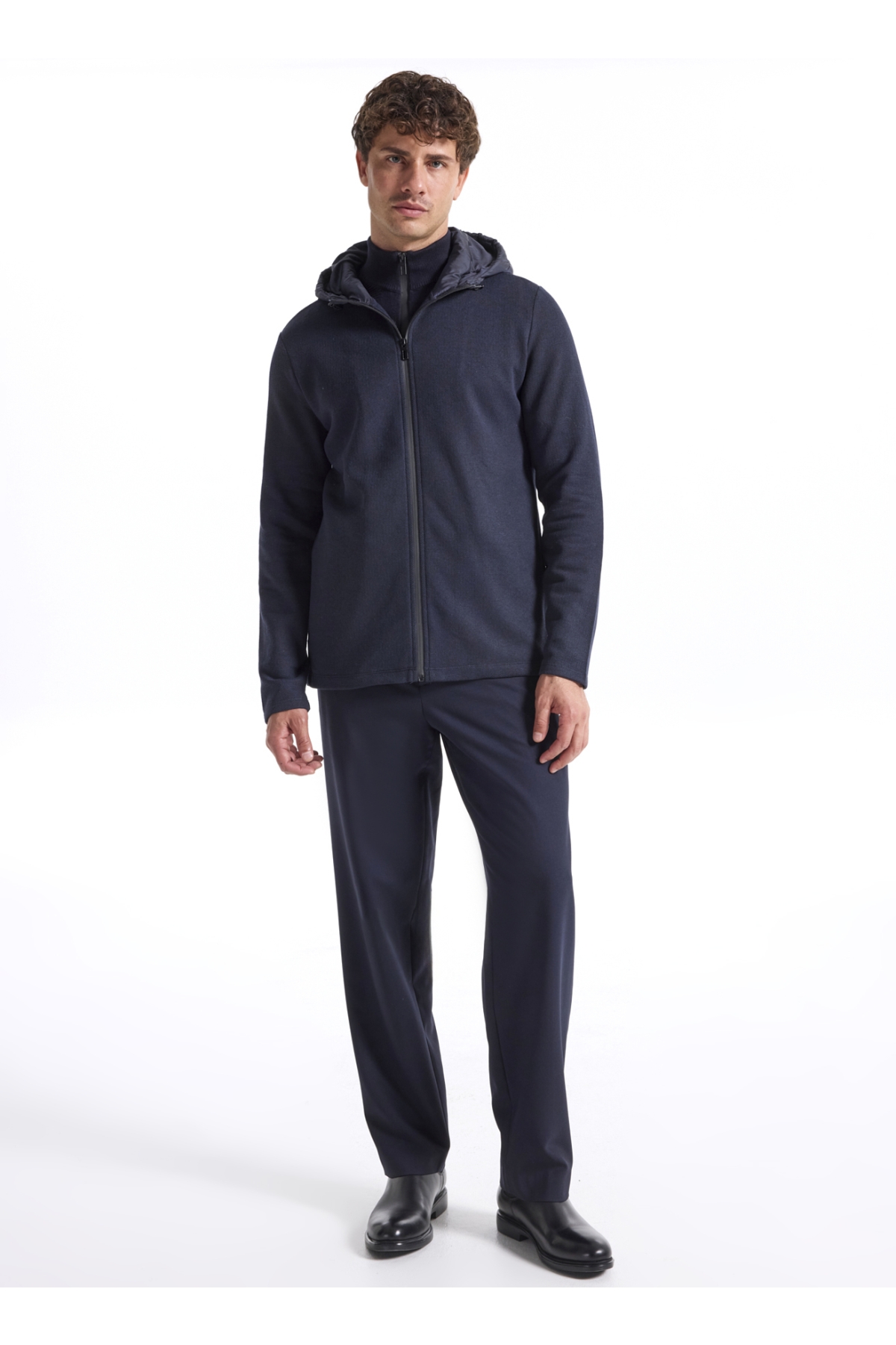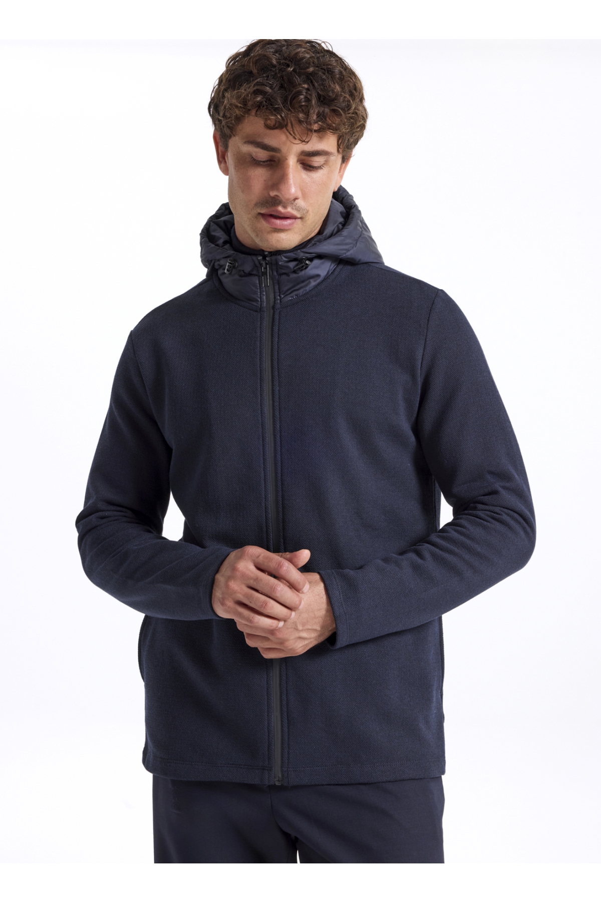 Fabrika Kapüşon Yaka Düz Lacivert Erkek Sweatshırt F5WM-SWT 2249