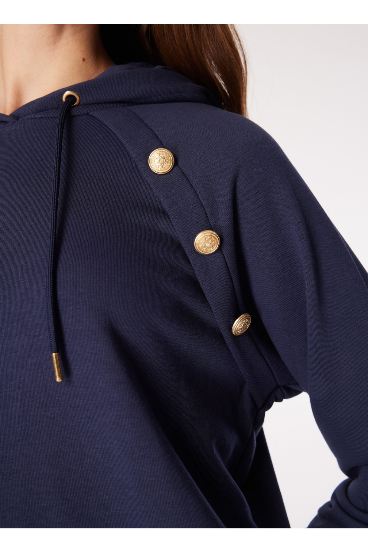 Fabrika'nın lacivert sweatshirt modeli, günlük şıklığı ve rahatlığı bir araya getiriyor. Kapüşonlu tasarımı sayesinde hem spor hem de şehir stiline mükemmel uyum sağlıyor. Basic kalıbı ile vücut hatlarını zarifçe sararken, uzun kolları soğuk havalarda ekstra koruma sunuyor.Bu sweatshirt, özellikle sonbahar ve kış aylarında katmanlı giyimler için ideal bir parça olarak öne çıkıyor. Jean pantolonlar veya taytlarla kombinlendiğinde modern bir görünüm elde edebilirken üzerine alacağınız şık bir mont ya da bomber ceketle sokak modasına damga vurabilirsiniz. Aksesuar olarak tercih edeceğiniz büyük boy çantalar veya sade bilezikler ile kombininizi tamamlayarak dikkat çekici detaylar yaratabilirsiniz.Rahatlığın yanı sıra tarzınızı yansıtan bu parçayı ofis ortamında da kullanabilir klasik kesim eteklerle birlikte kombinleyerek daha sofistike görünebilirsiniz. Günlük yürüyüşlerde ise spor ayakkabılarla eşleştirerek konforu ön planda tutmak mümkün.Kendinizi özel hissetmek istiyorsanız bu lacivert sweatshirt'ü dolabınıza eklemeyi unutmayın! Şimdi sipariş verin ve stilinize yeni bir soluk kazandırın!