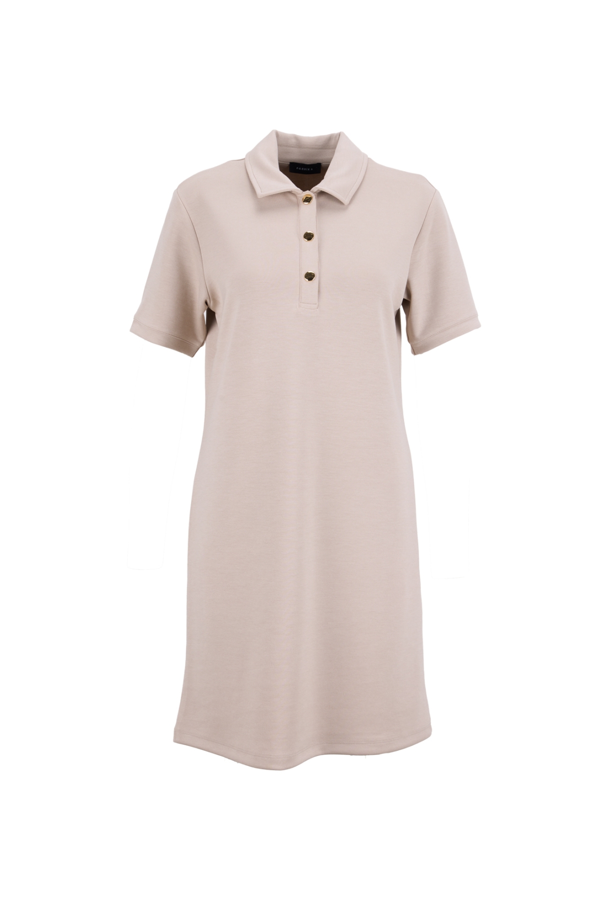 Fabrika Polo Yaka Düz Bej Mini Kadın Elbise F6SL-ELB0372