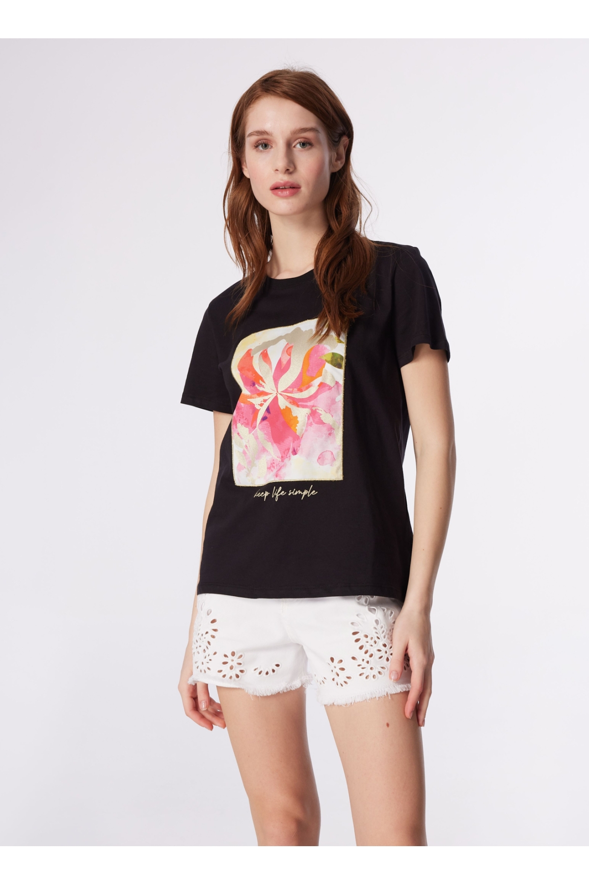 Siyah rengin zarif duruşunu yansıtan bu t-shirt, günlük stilinizi tamamlamak için mükemmel bir parça. FABRIKA markasının imzasını taşıyan bu model, %100 pamuk yapısıyla hem rahatlık sunar hem de şıklığı ön planda tutar. Bisiklet yaka ve kısa kol detaylarıyla yaz aylarının vazgeçilmezi haline gelirken, baskılı deseniyle dikkat çekici bir görünüm sağlar.Basic kalıbı sayesinde her vücut tipine uyum sağlayan bu t-shirt, spor şıklık arayanlar için ideal bir seçimdir. Jean pantolonlarla kombinleyerek gündelik hayatta rahatça kullanabilir veya eteklerle daha feminen bir hava katabilirsiniz. Üzerinize alacağınız hafif bir ceketle akşam davetlerinde de tercih edilebilir hale gelir.Aksesuar olarak sade takılarla ya da renkli çantalarla zenginleştirerek tarzınızı kişiselleştirebilirsiniz. Yazın sıcak günlerinde sandaletler ile kombinlemek ise ferah ve modern görünmenizi sağlar.Bu eşsiz parçayı dolabınıza eklemeyi unutmayın stilinizdeki farkı hemen hissedeceksiniz! Şimdi satın alarak modanın tadını çıkarma zamanı!