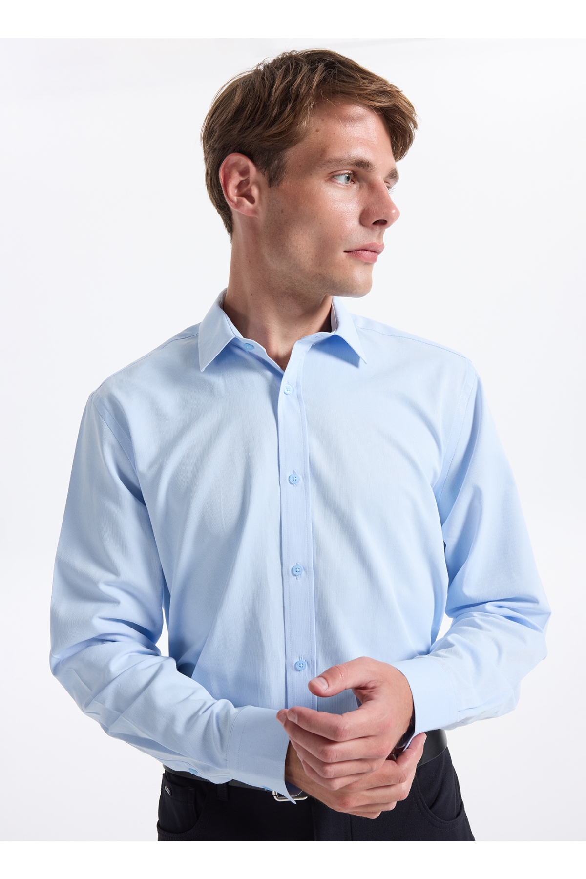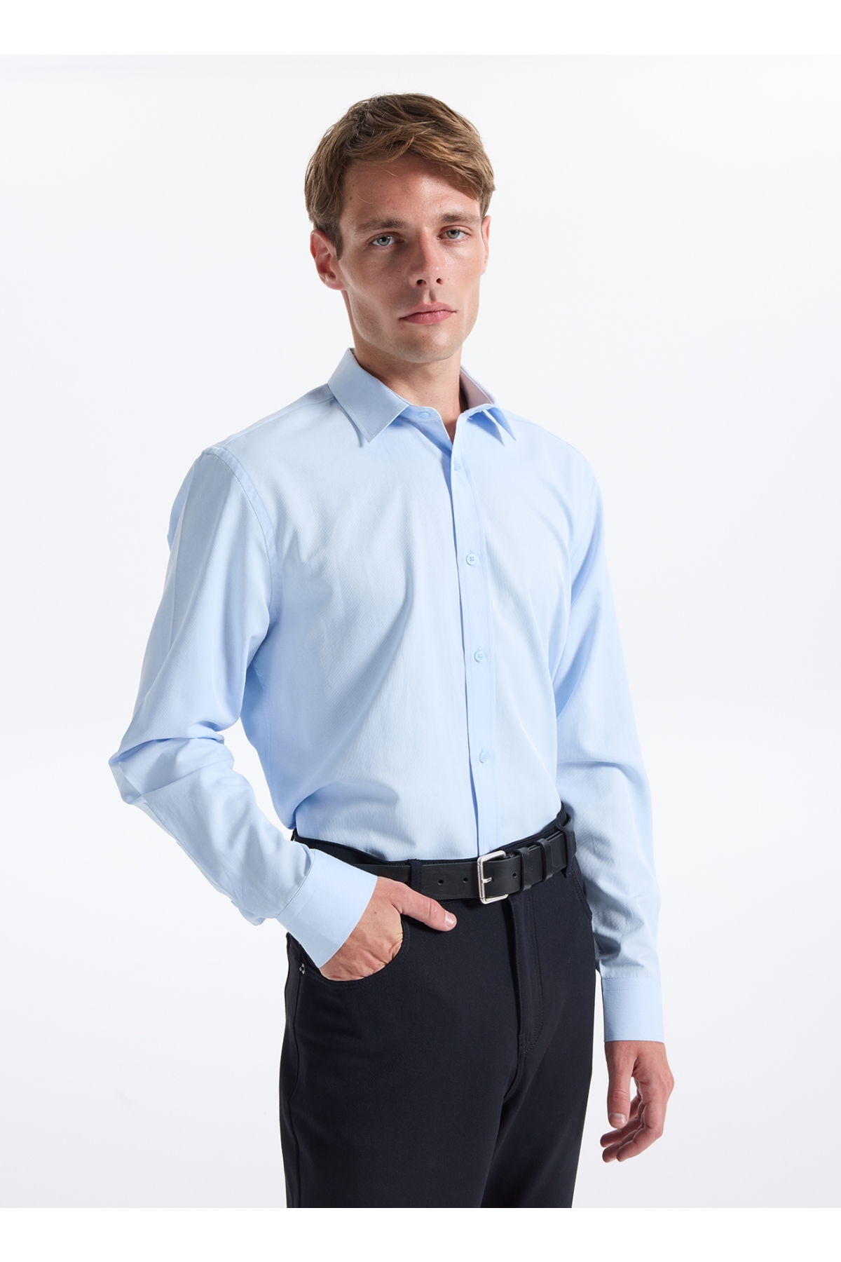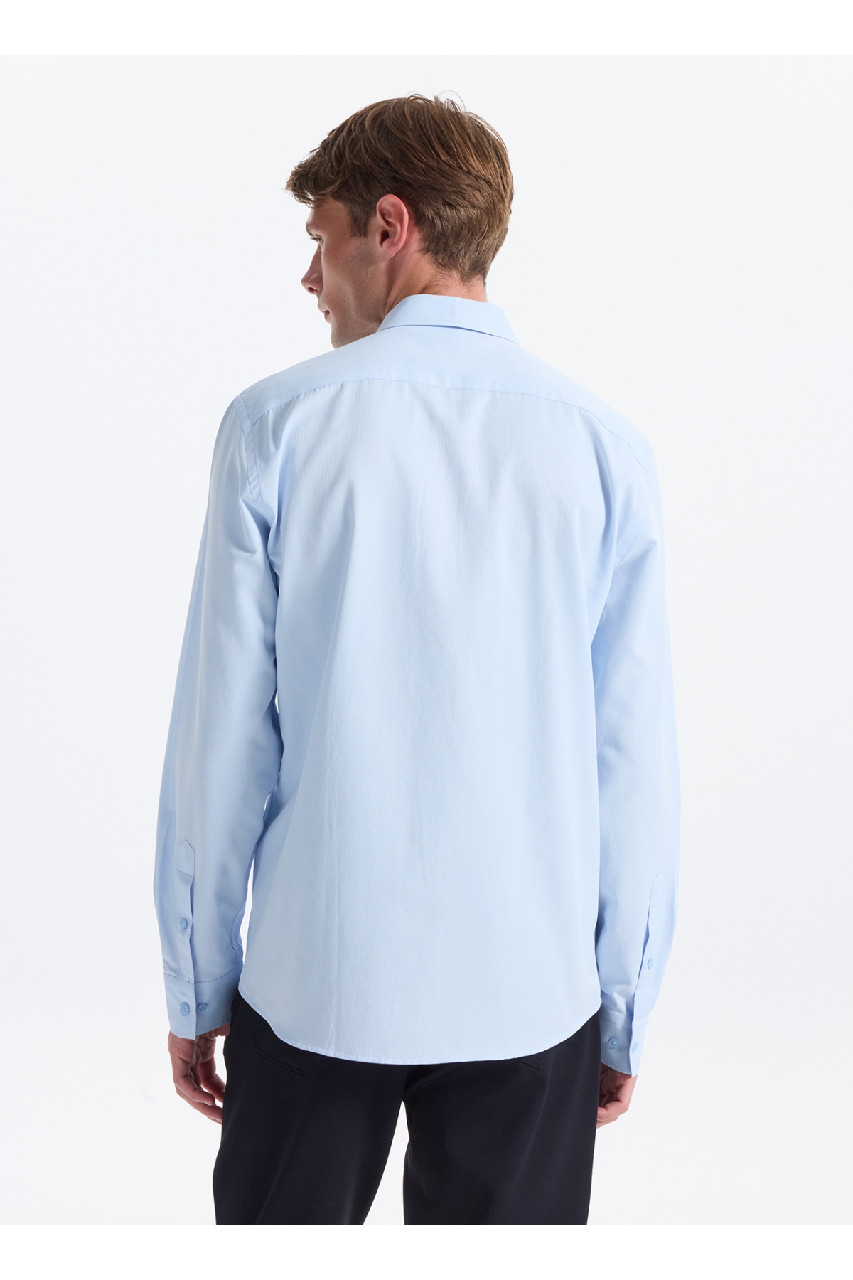 Fabrika Slim Fit Gömlek Yaka Armürlü Mavi Erkek Gömlek MAYDOS-Y 303