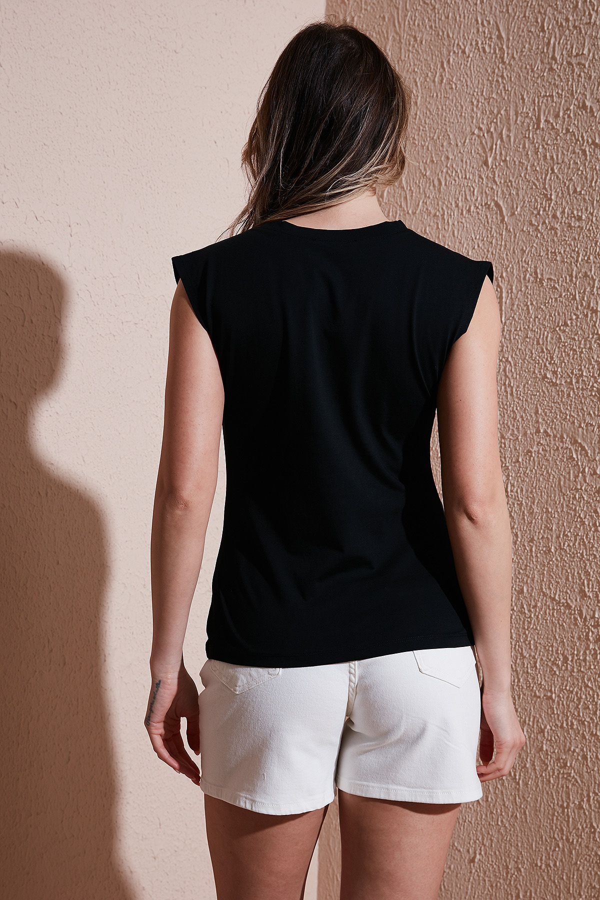 Model: Bluz Desen: Taşlı Mevsim: İlkbahar/Yaz Materyal: % 100 Pamuk Yaka Tipi: Bisiklet Yaka Kol Tipi: Kolsuz Kalıp Bilgisi: Standart Fit Manken Bedeni: Boy : 1.80 cm / Göğüs : 83 cm / Bel : 60 cm / Basen : 90 cm / Beden : S Menşei: Türkiye 2DY25Y0472K1.07