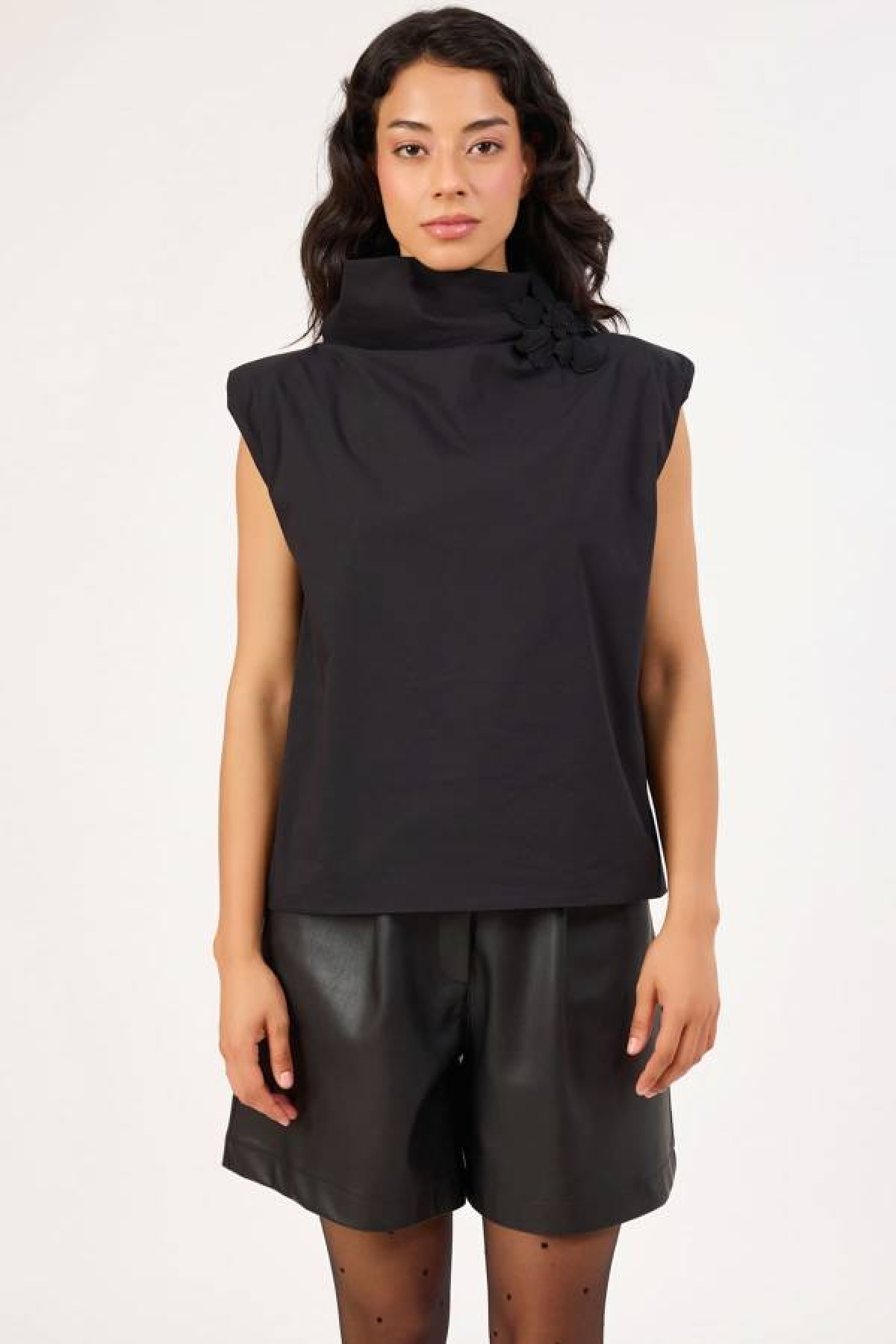 ÜRÜN BİLGİSİ:Pamuklu nefes alabilir poplin kumaş,dik yakalı,hafif düşük kollu,broş çicekli,düz form şık poplin bluz.1 beden 36-38-40 2 beden 42-44-46 alabilir. KUMAŞ İÇERİĞİ:%67 Pamuk % 30 Polyester % 3 Elestan ÜRÜN BOY ÖLÇÜSÜ:60 cm MANKEN BOYU:176 cm MANKEN ÖLÇÜLERİ:81-62-91 MANKEN ÜZERİNDEKİ ÜRÜN BEDENİ:1