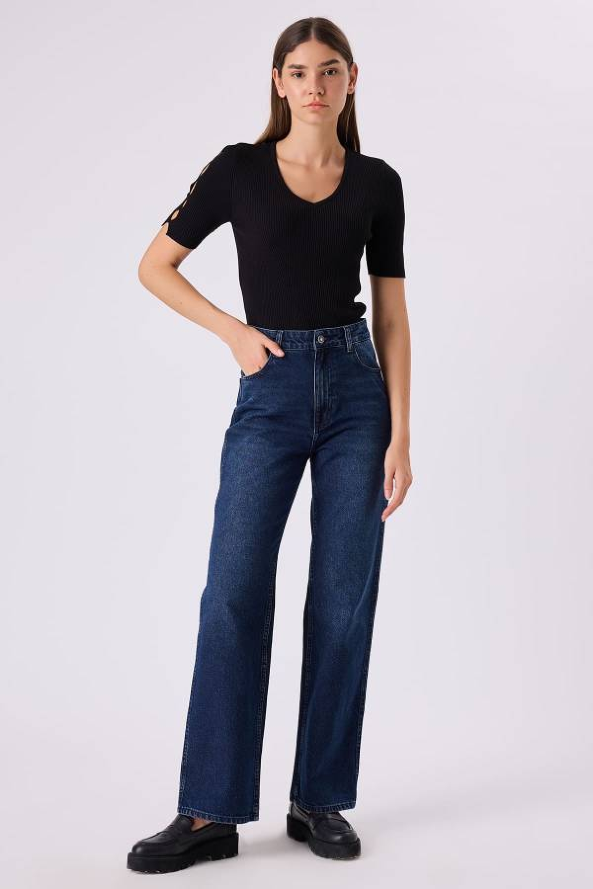 ÜRÜN BİLGİSİ:Yıkamalı denim kumaş,normal belli,düğme kapamalı,fermuarlı,beş cepli,düz form jean pantolon. KUMAŞ İÇERİĞİ:% 100 Pamuk ÜRÜN BOY ÖLÇÜSÜ:79 cm MANKEN BOYU:178 cm MANKEN ÖLÇÜLERİ:83-60-90 cm MANKEN ÜZERİNDEKİ ÜRÜN BEDENİ:36 ÜRETİM YERİ:Türkiye