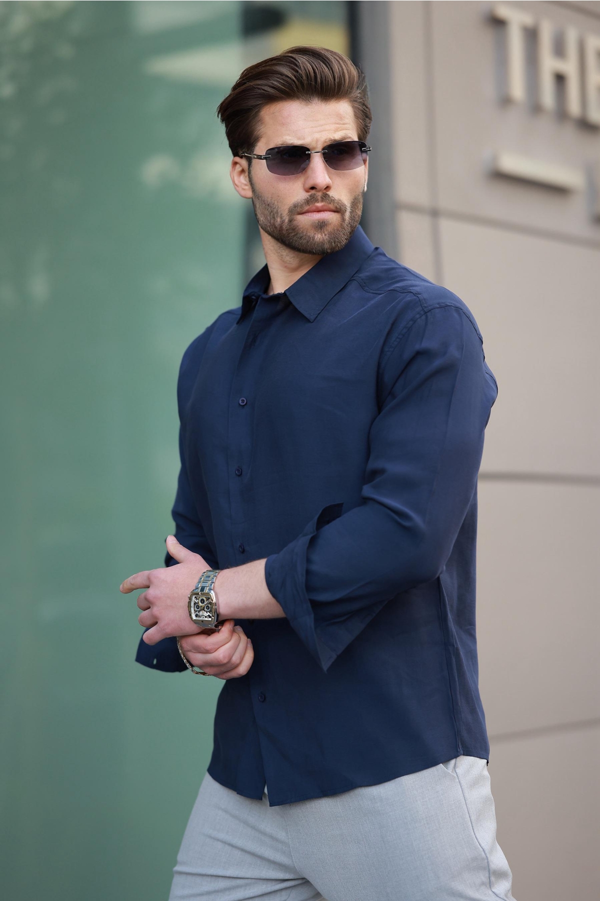 Madmext Füme Basic Uzun Kollu Erkek Gömlek E6762