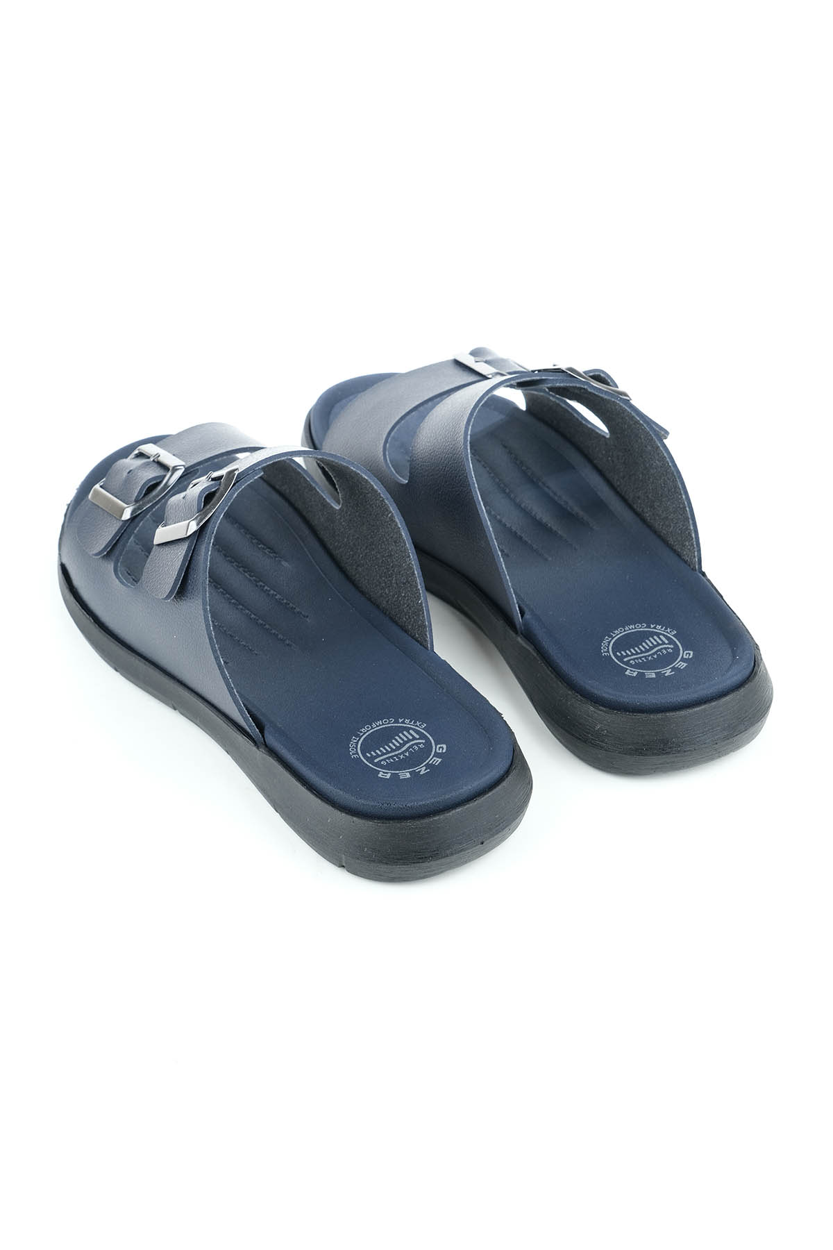 Gezer Yazlık Terlik Ürünümüzün İç Tabanı ve Alt Tabanı Poliüretan Hammaddesinden, Üst Kısım İse ( Saya ) Suni Deriden oluşmaktadır. Ürün Günlük kullanımda ve Ev, Bahçe, gibi alanlarda kullanıma uygundur. İç tabanları orta sertlikte fakat rahattır. İki kemerinden tokalı olan modelimiz ayağınıza göre ayarlanabilir. Yaz giyim kombinlerinizi tamamlayacak şıklıkta olan modelimiz uzun süreli kullanımlarda rahatlığı yansıtacaktır. Ürün görsellerinde iç taban ölçüleri santim olarak yazmaktadır. Buna göre sizin için uygun olan ölçüyü tercih edebilirsiniz. Ürünlerimiz tüketicilerin sağlık ve güvenliğinin korunması amacı ile ayak giyeceği kapsamında bulunan, tehlikeli kimyasal maddeler içermemektedir.