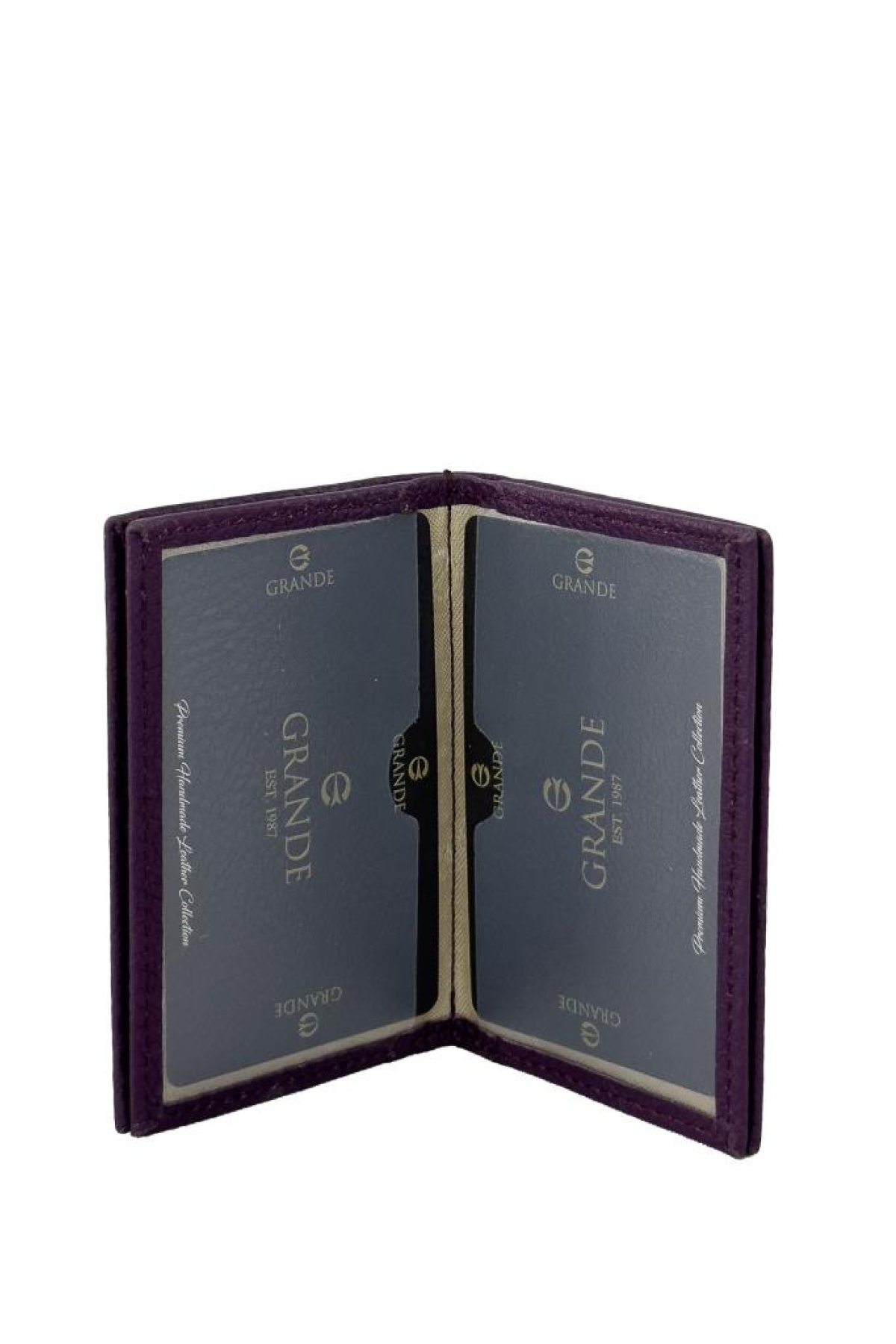 Grande Hakiki Deri Erkek Kartlık Mor 825." Bu, mor renkte (Mor), 825 model numaralı, erkekler için hakiki deri bir kartlık