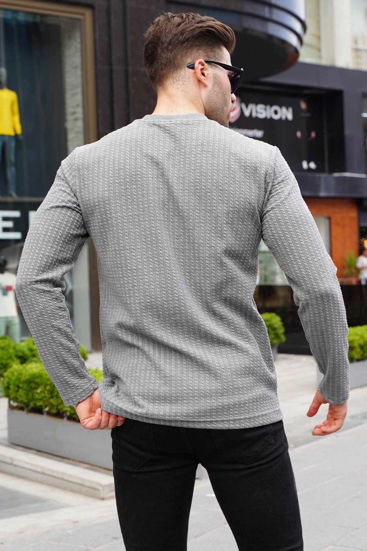 Madmext Gri Waffle Kumaş Basic Kazak 6007Madmext Gri Waffle Kumaş Basic Kazak 6007