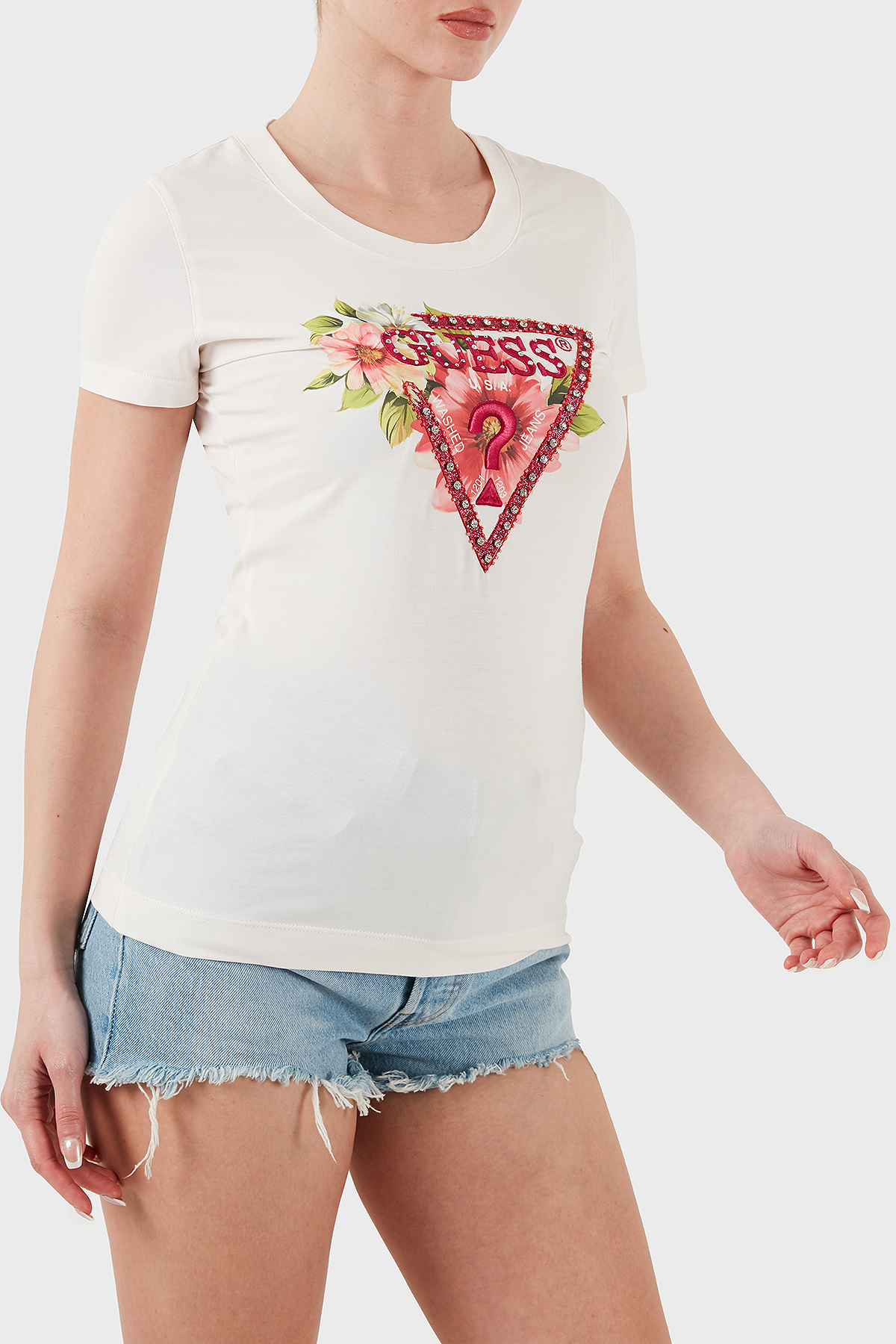 Model : T-Shirt Sezon : İlkbahar/Yaz Desen : Taşlı Logolu Materyal : % 95 Pamuk % 5 Elastan Yaka Bilgisi : Bisiklet Yaka Kol Bilgisi : Kısa Kol Kalıp Bilgisi : Slim Fit Manken Bedeni : Boy : 1.80 cm / Göğüs : 83 cm / Bel : 60 cm / Basen : 90 cm / Beden : S Menşei : Çin Detaylar : -Önde desenli, nakış işlemeli, simli ve taşlarla süslenmiş tasarım detay 5DY2W5GI10J1314G012.69
