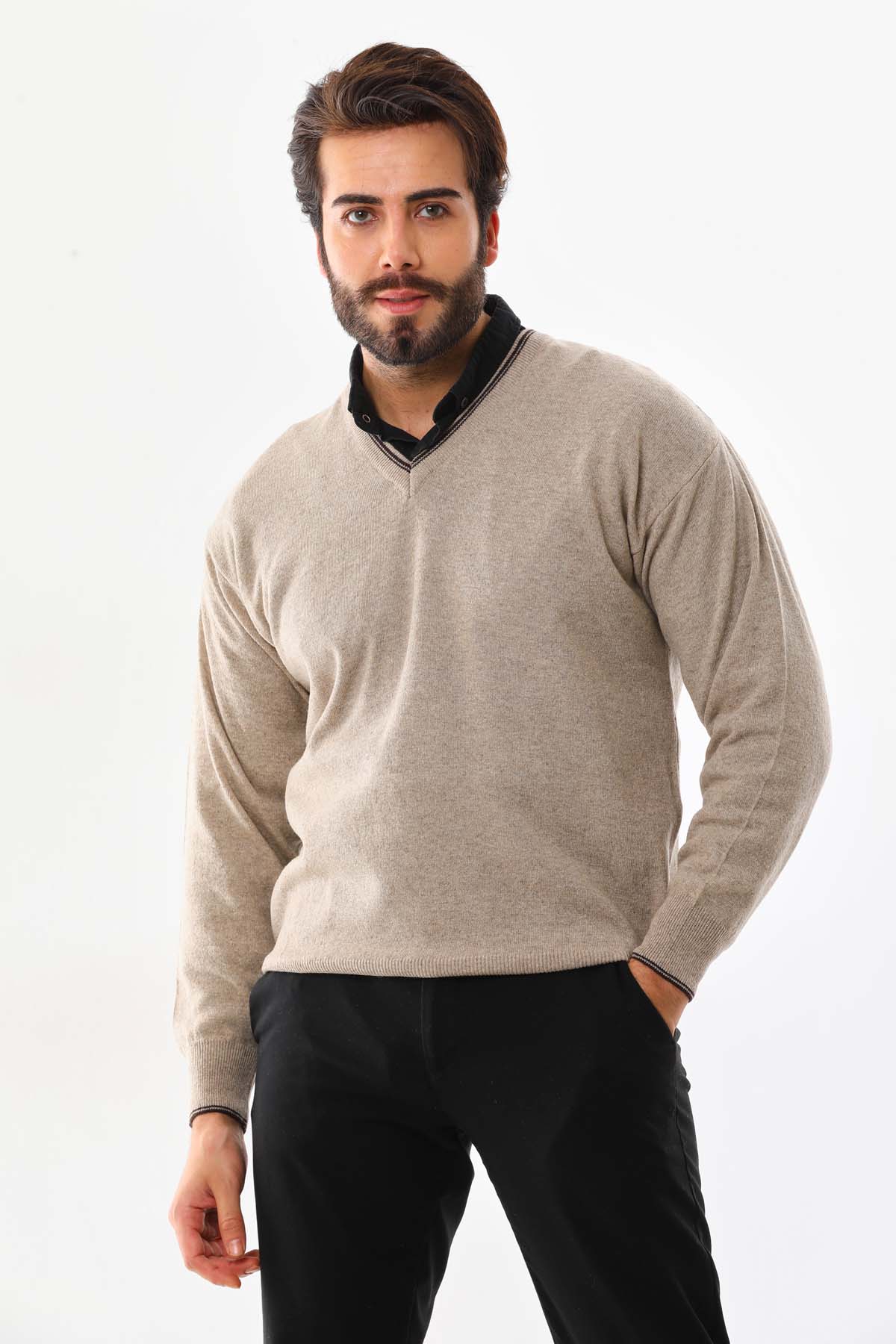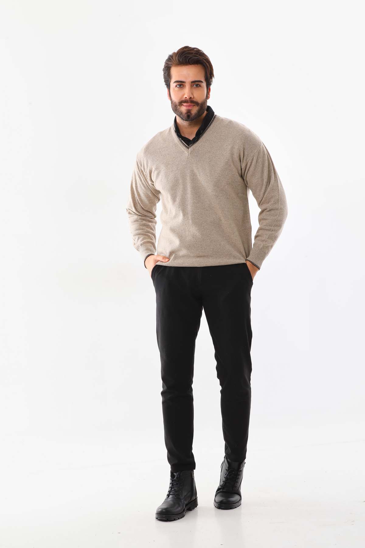 Ürün Tipi: Kazak;Materyal Bilgisi: %80 Yün %20 Akrilik;Kalıp Bilgisi: Standart;Detay: V yaka, uzun kollu, yün kazak;Model Ölçüleri(cm) / Üzerindeki Ürün: Boy - 189, Göğüs - 110, Bel - 88, Kalça - 103, / L Beden