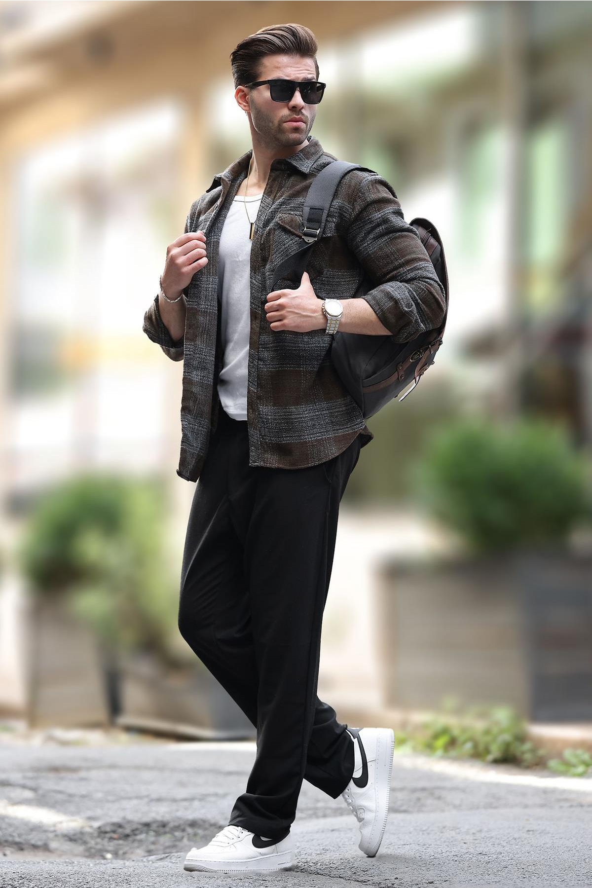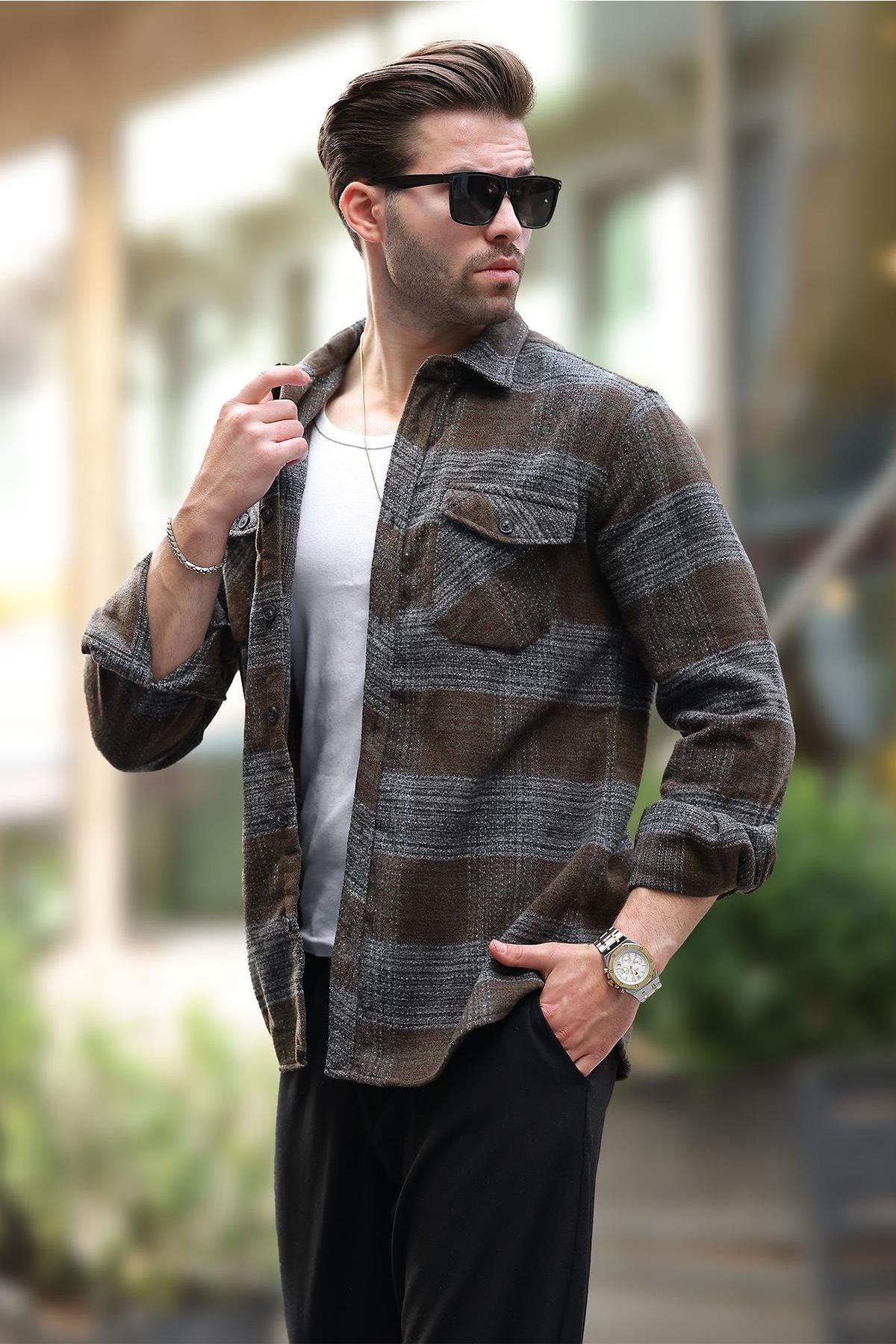 AnasayfaGiyimGömlekGünlük gömlekHaki desenli göğüs cepli erkek polar gömlek 6754