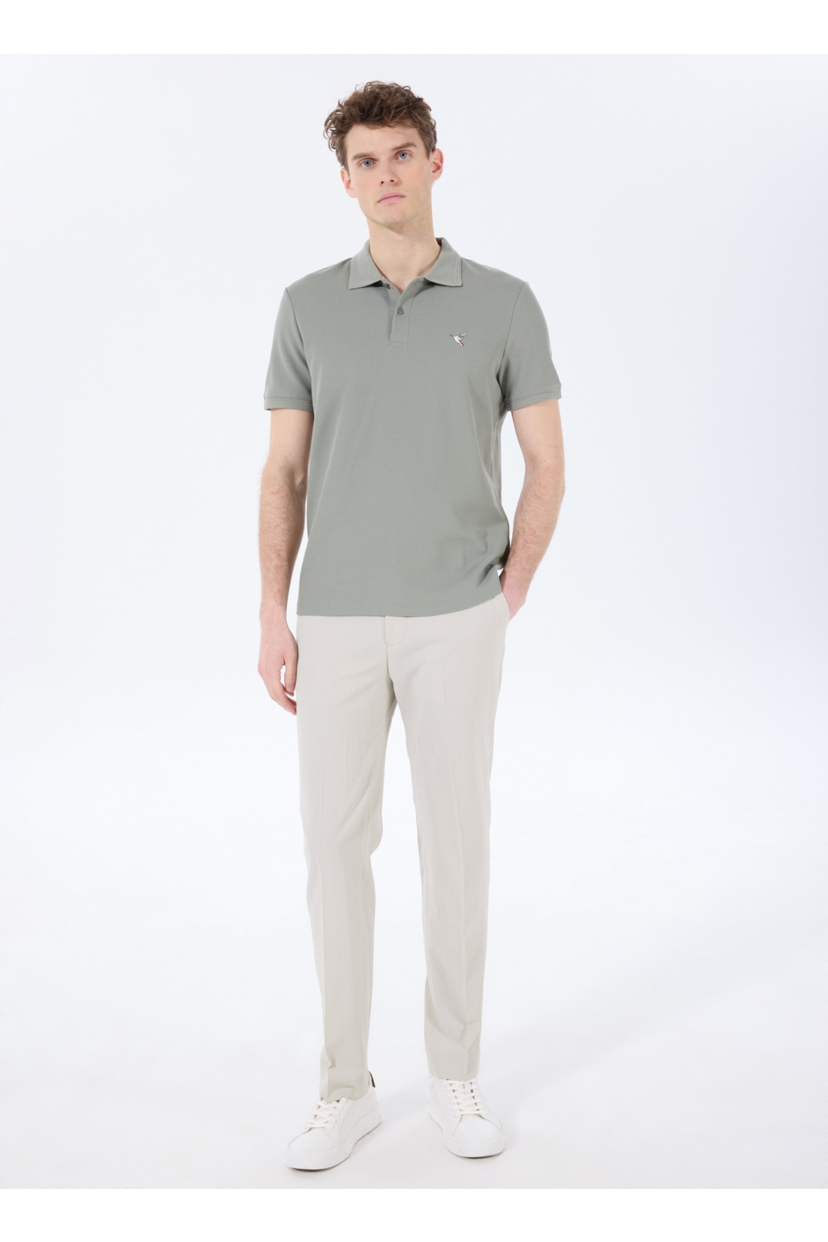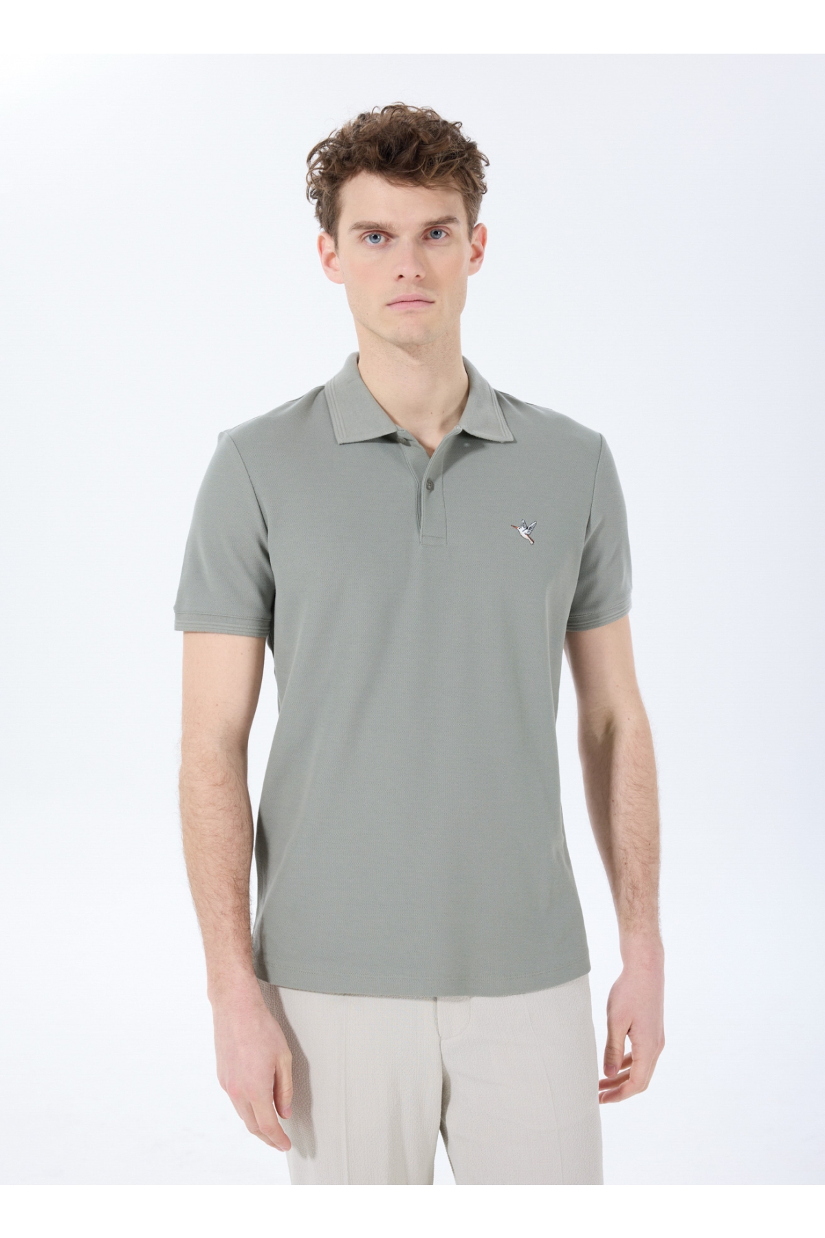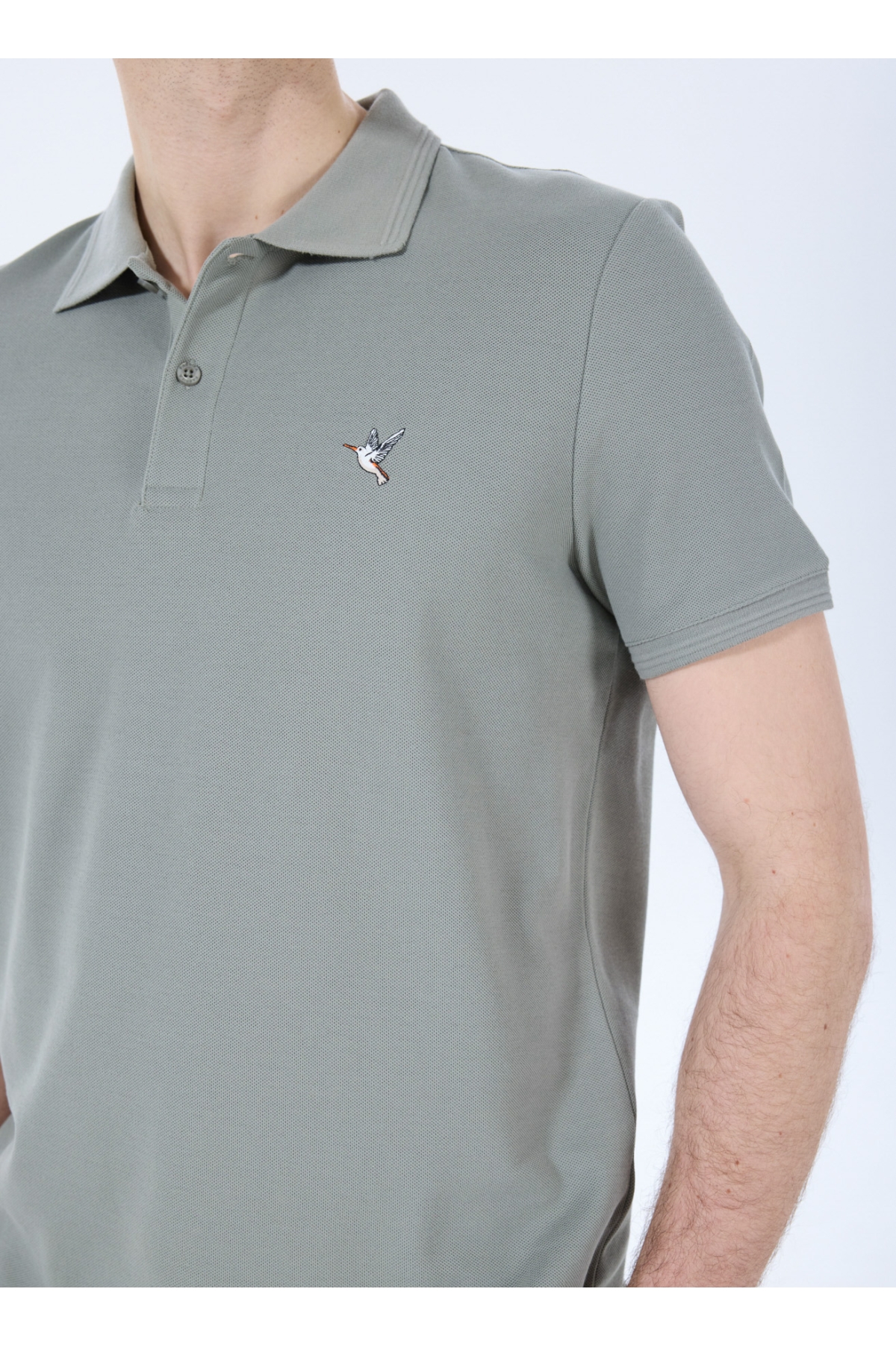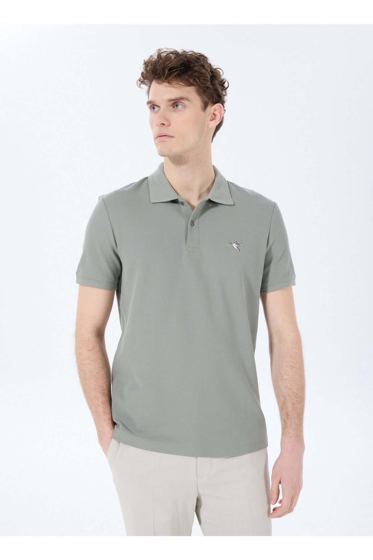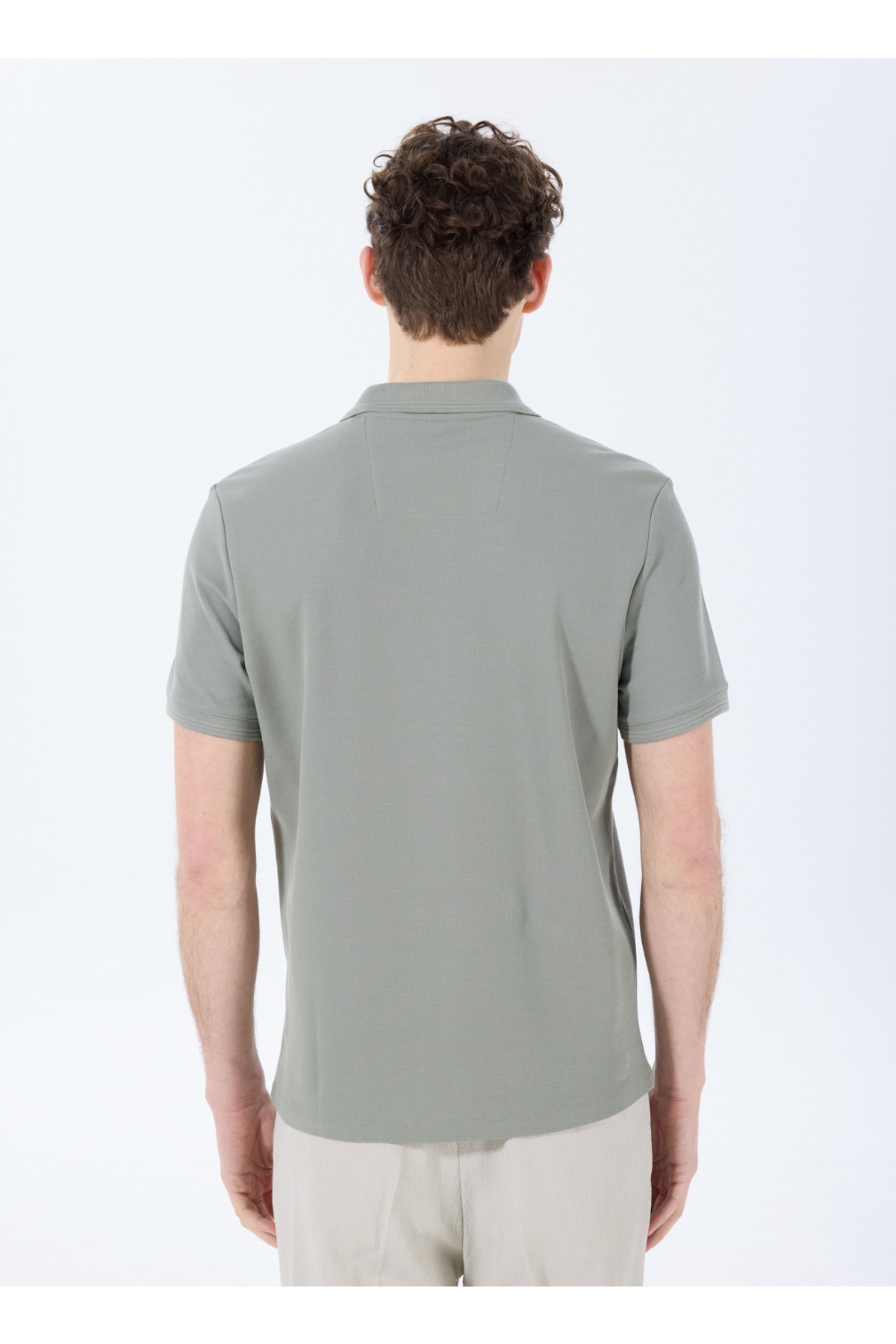 Haki Erkek Basic %100 Pamuk Kıvrılmaz Yaka Serin Tutma Özellikli Polo T-Shirt F5SM-TST 2779