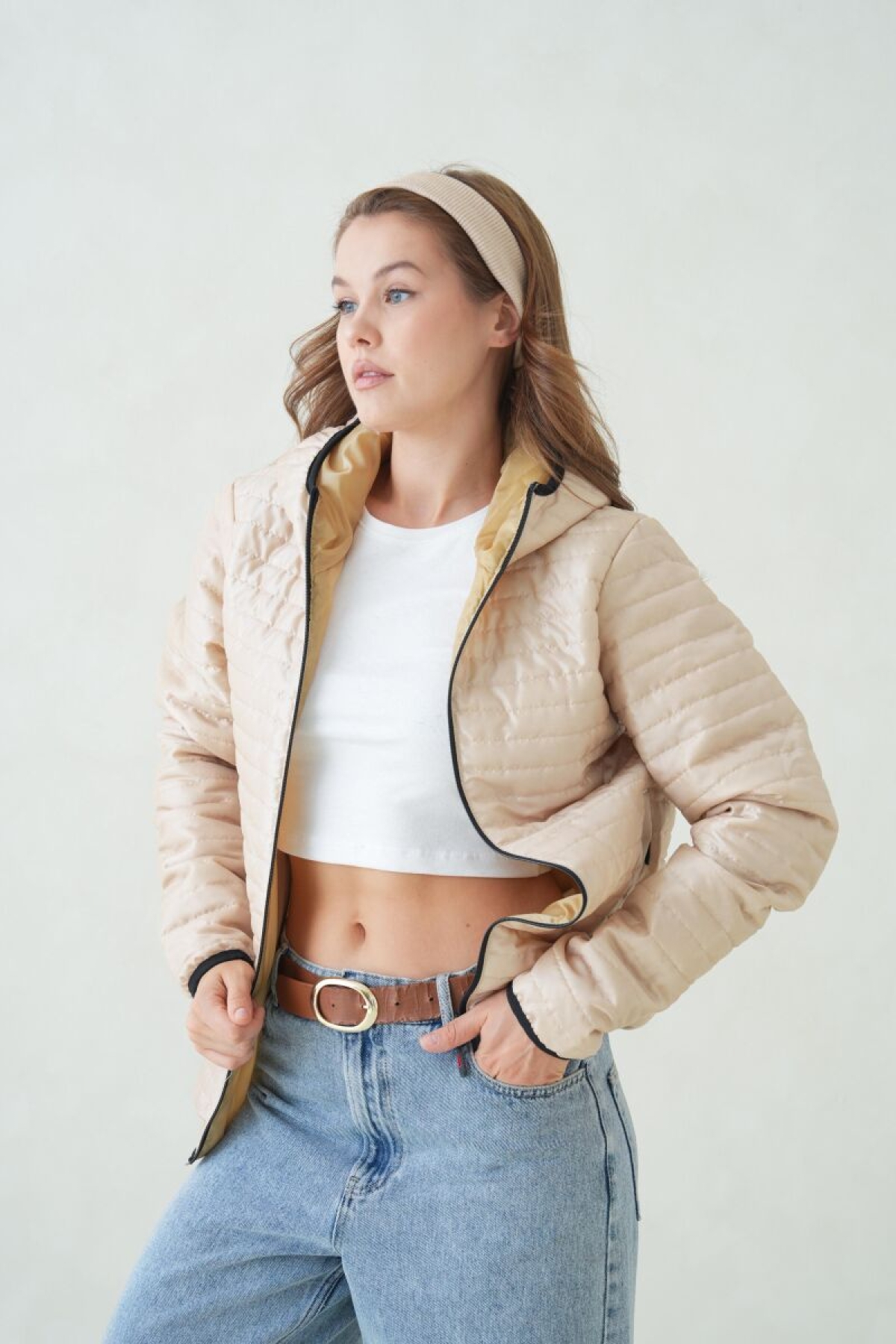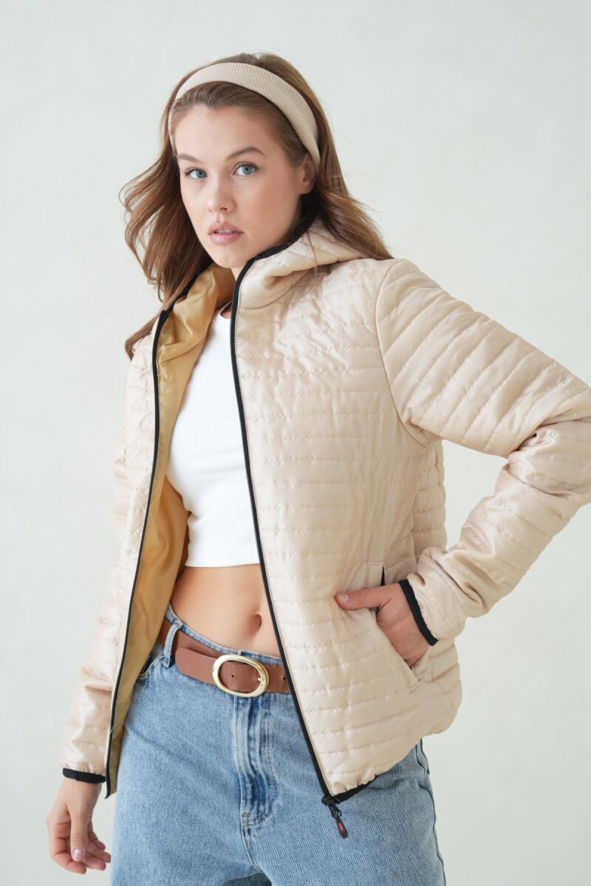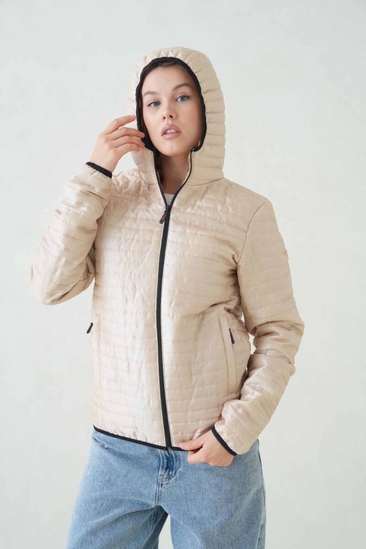 AnasayfaGiyimDış giyimMontŞişme montİçi astarlı su ve rüzgar geçirmez cepli kapüşonlu kadın mont