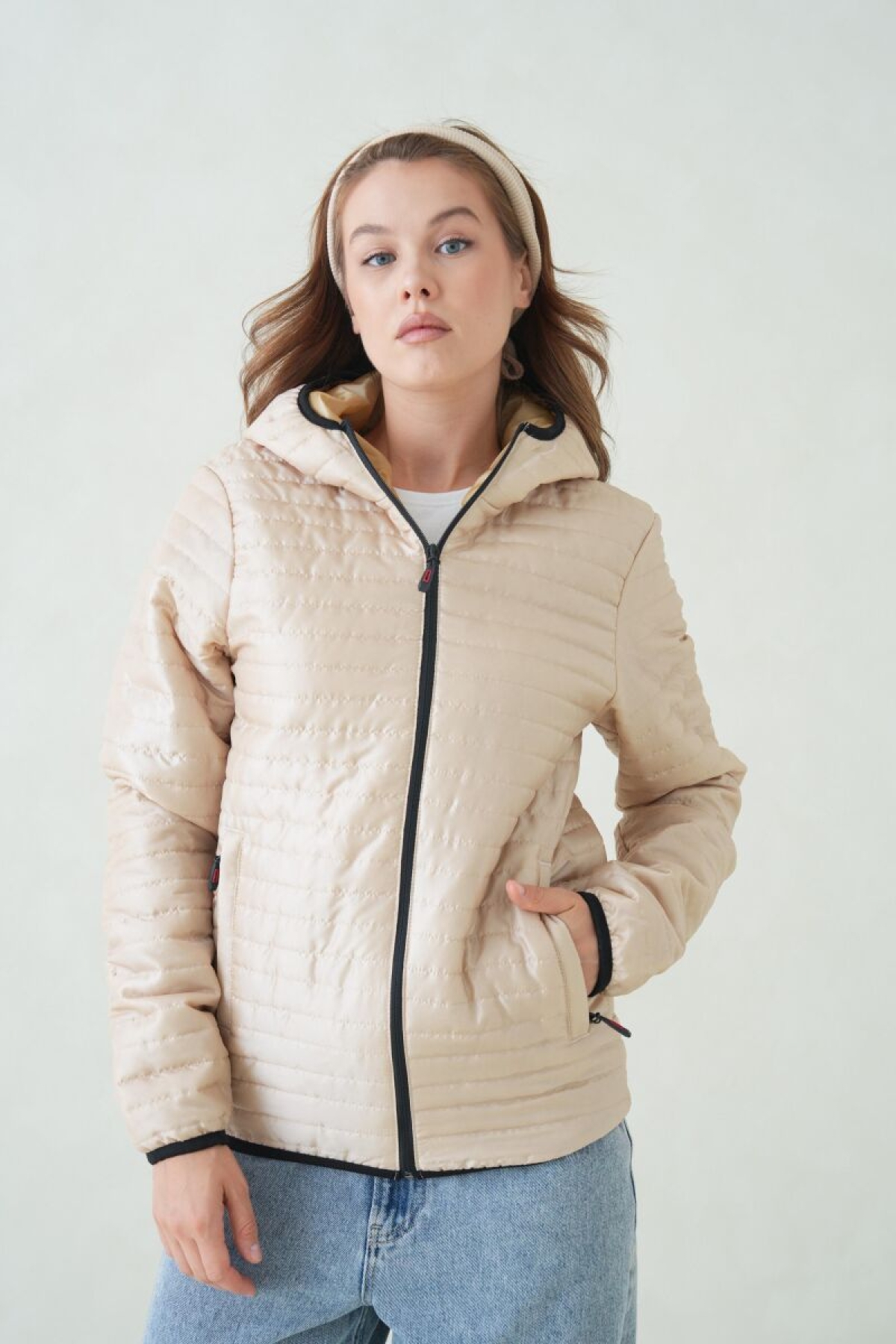 D1fference İçi Astarlı Su ve Rüzgar Geçirmez Cepli Kapüşonlu Kadın Mont
