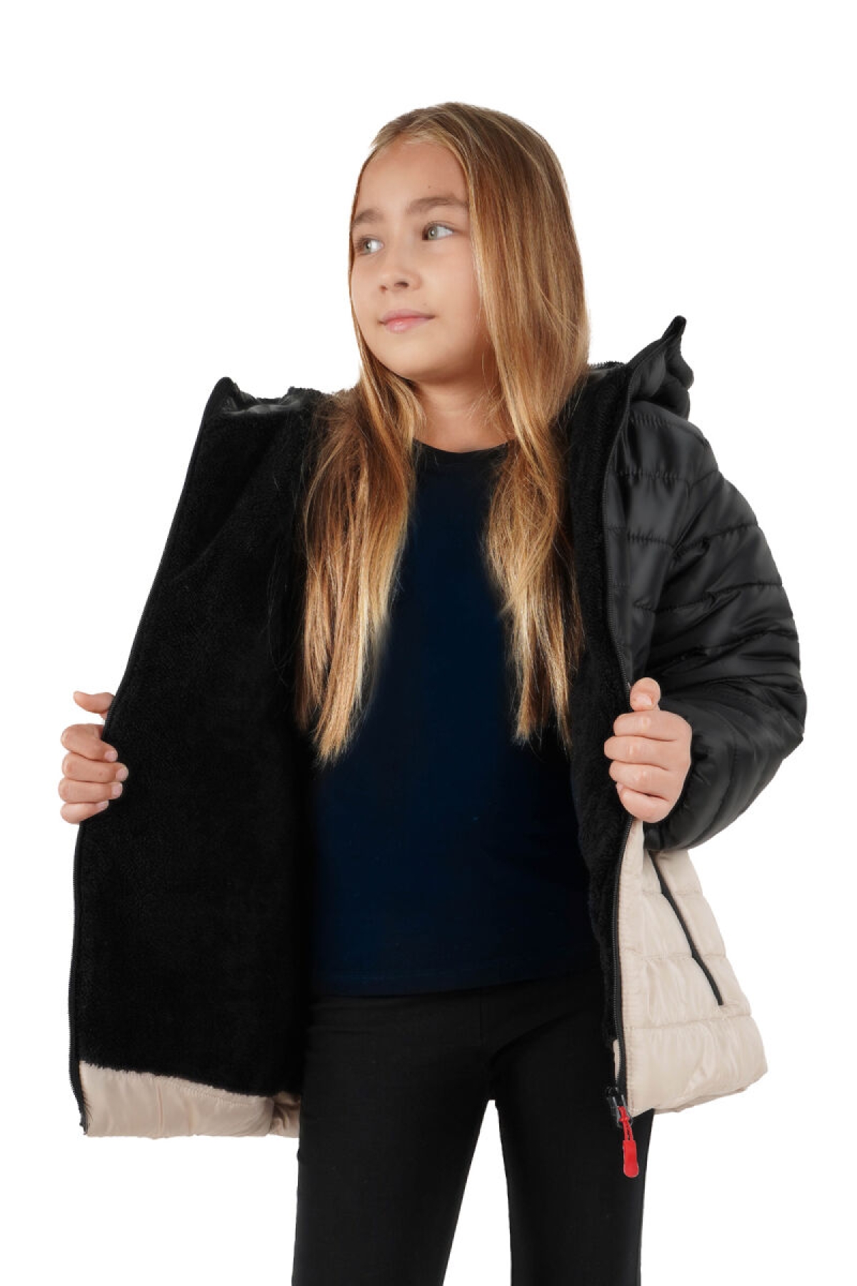 AnasayfaGiyimDış giyimMontŞişme montİçi kürklü su ve rüzgar geçirmez kapüşonlu kız çocuk mont