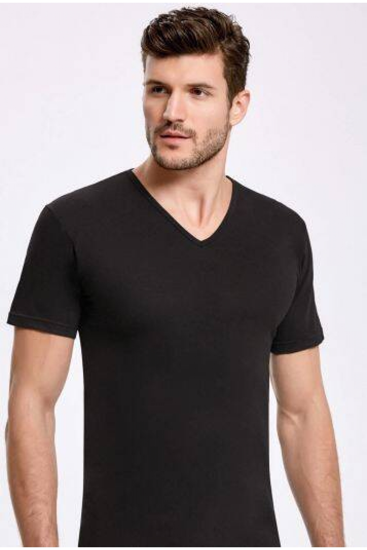 İlke Siyah V Yaka Kollu %100 COTTONModelin ölçüleri: Boy:1,88 Bel:81 Göğüs:100 Basen:97 Numune Bedeni 'M' BedendirRegular Fit