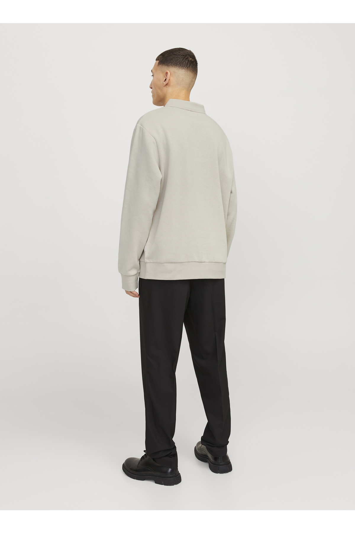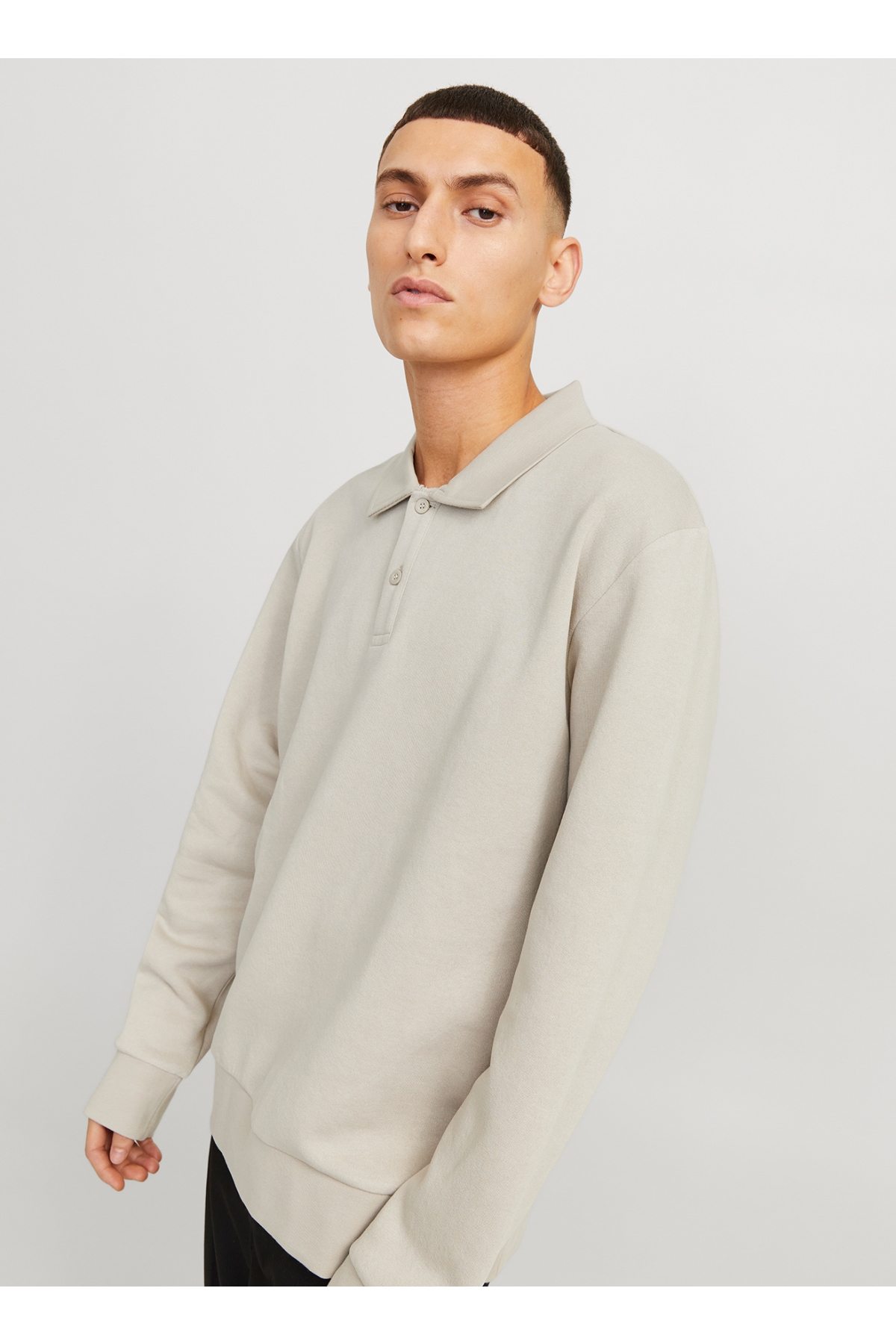 Jack & Jones Polo Yaka Bej Erkek Sweatshırt 12278586_JJEBRADLEY SWEAT POLO NOOS