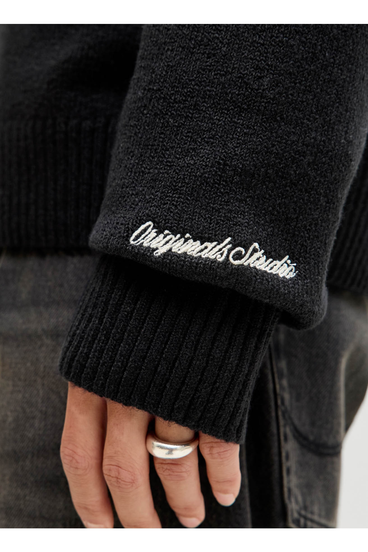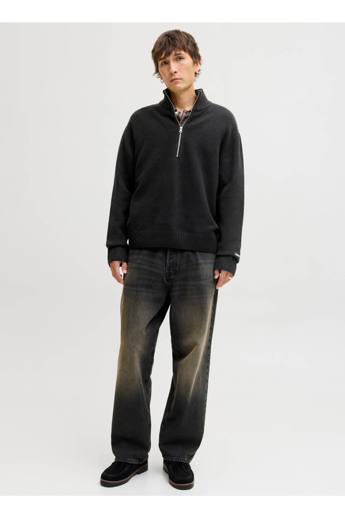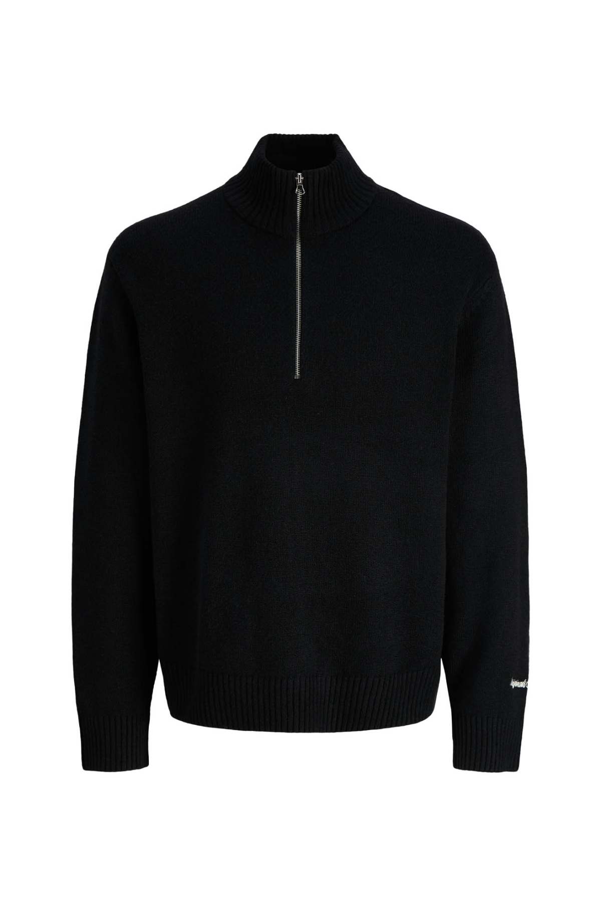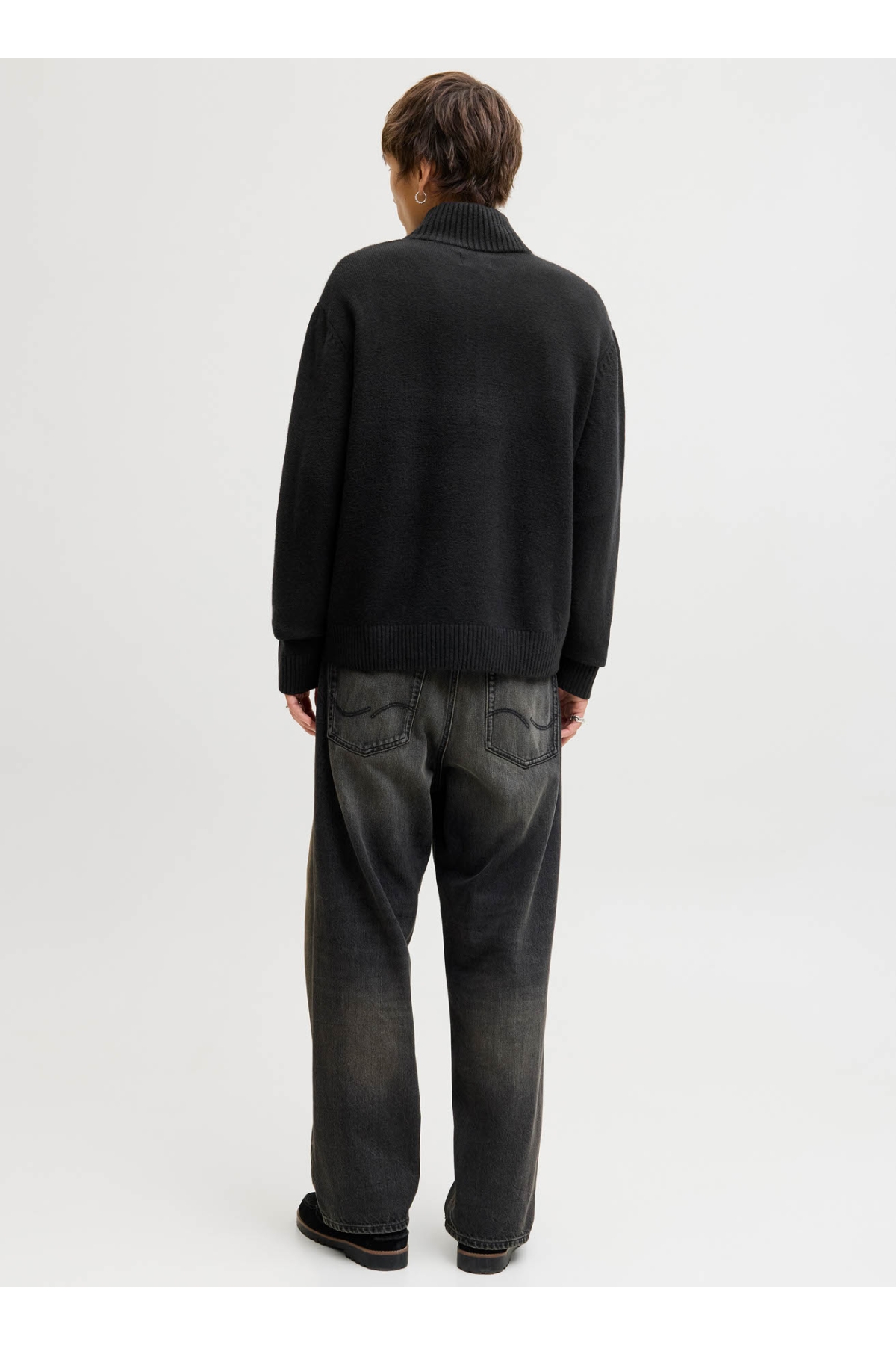 Jack & Jones Yüksek Yaka Bol Kesim Siyah Erkek Kazak 12282749_JORNORREBRO KNIT HALF ZIP