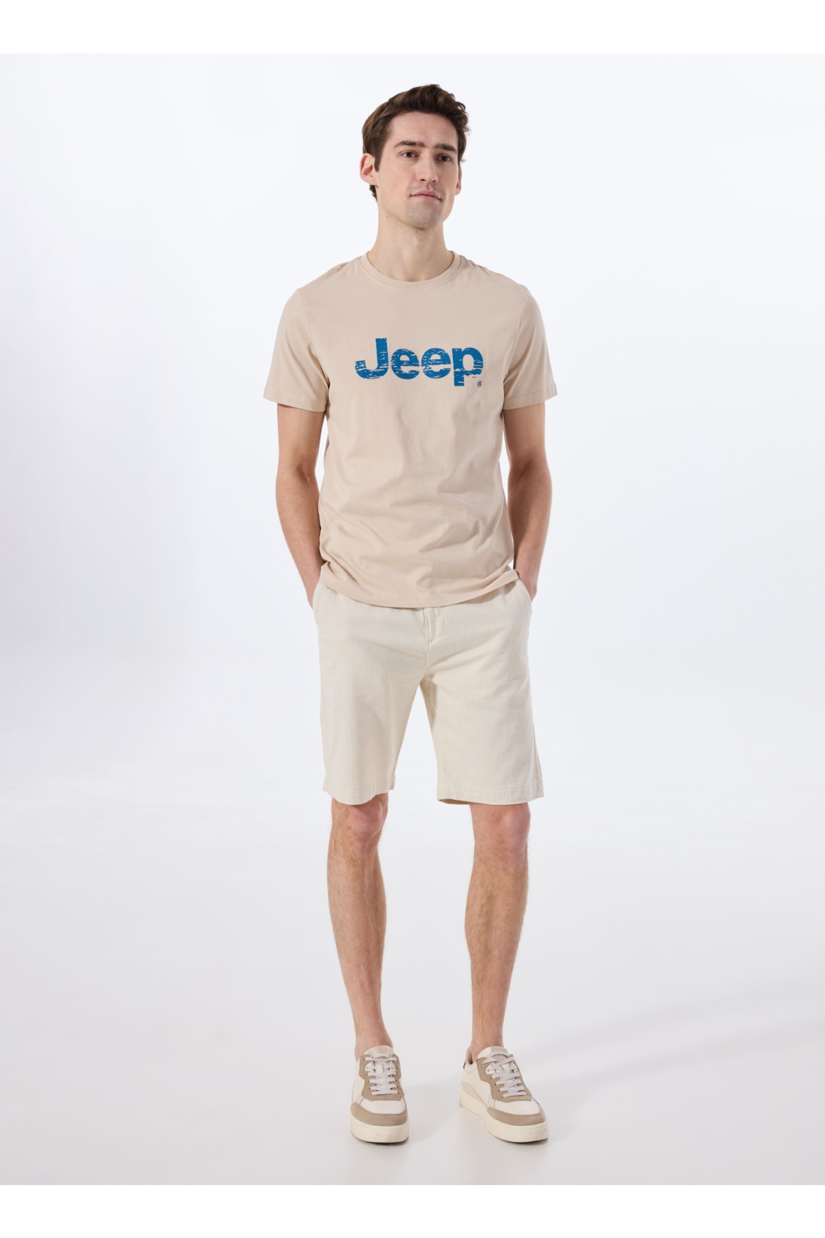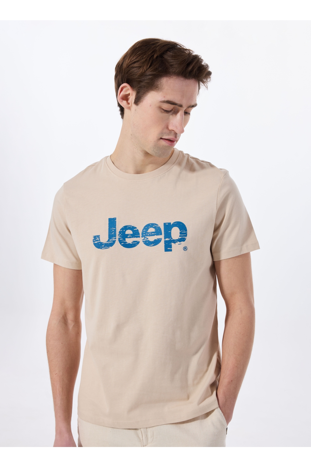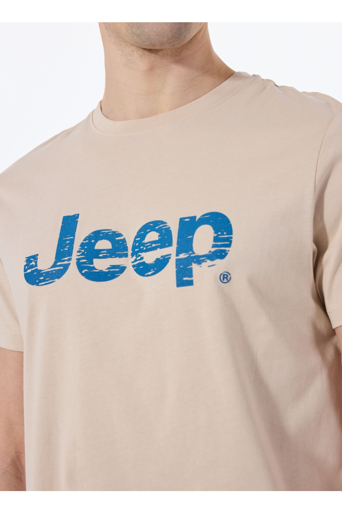 Jeep Bisiklet Yaka Baskılı Bej Erkek T-Shirt J4SM-TST7256