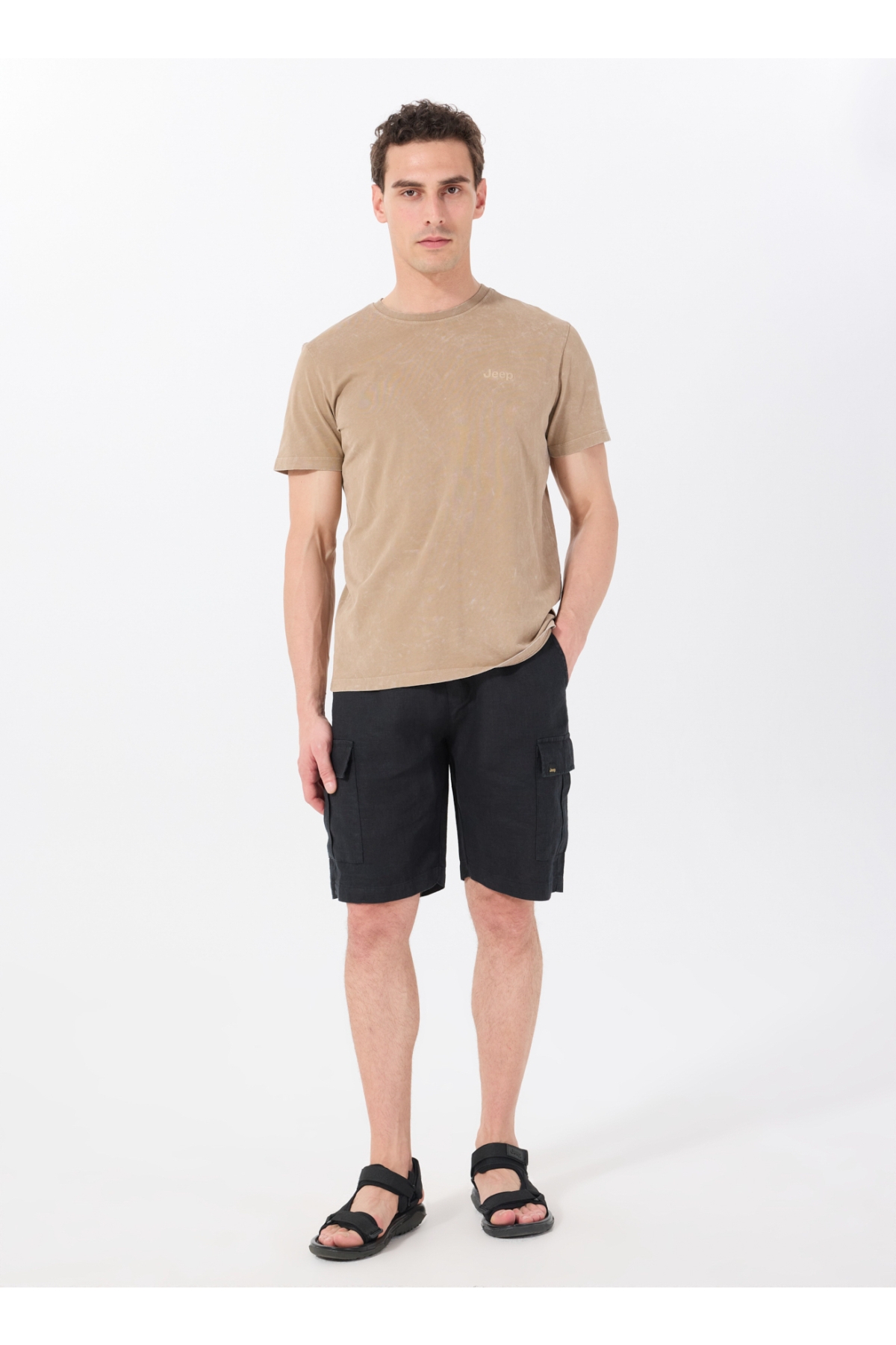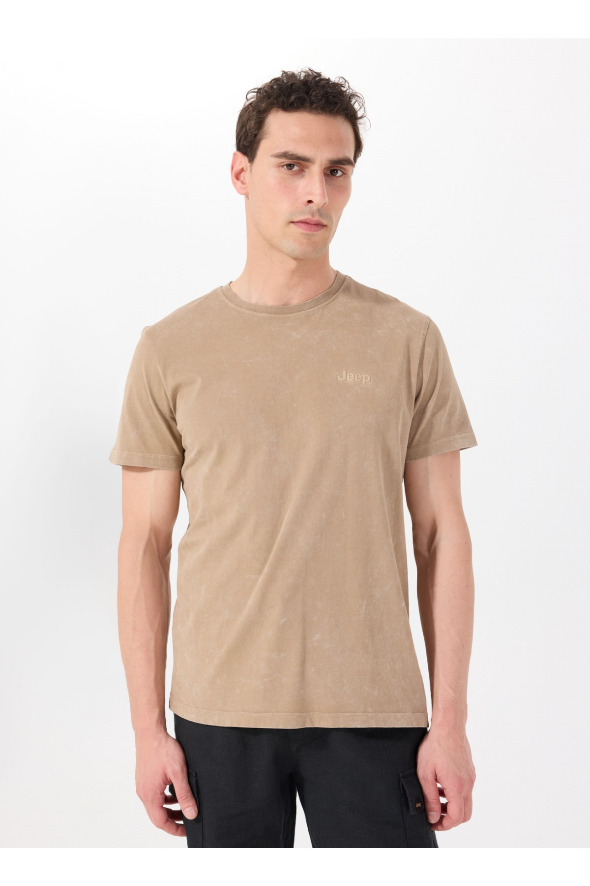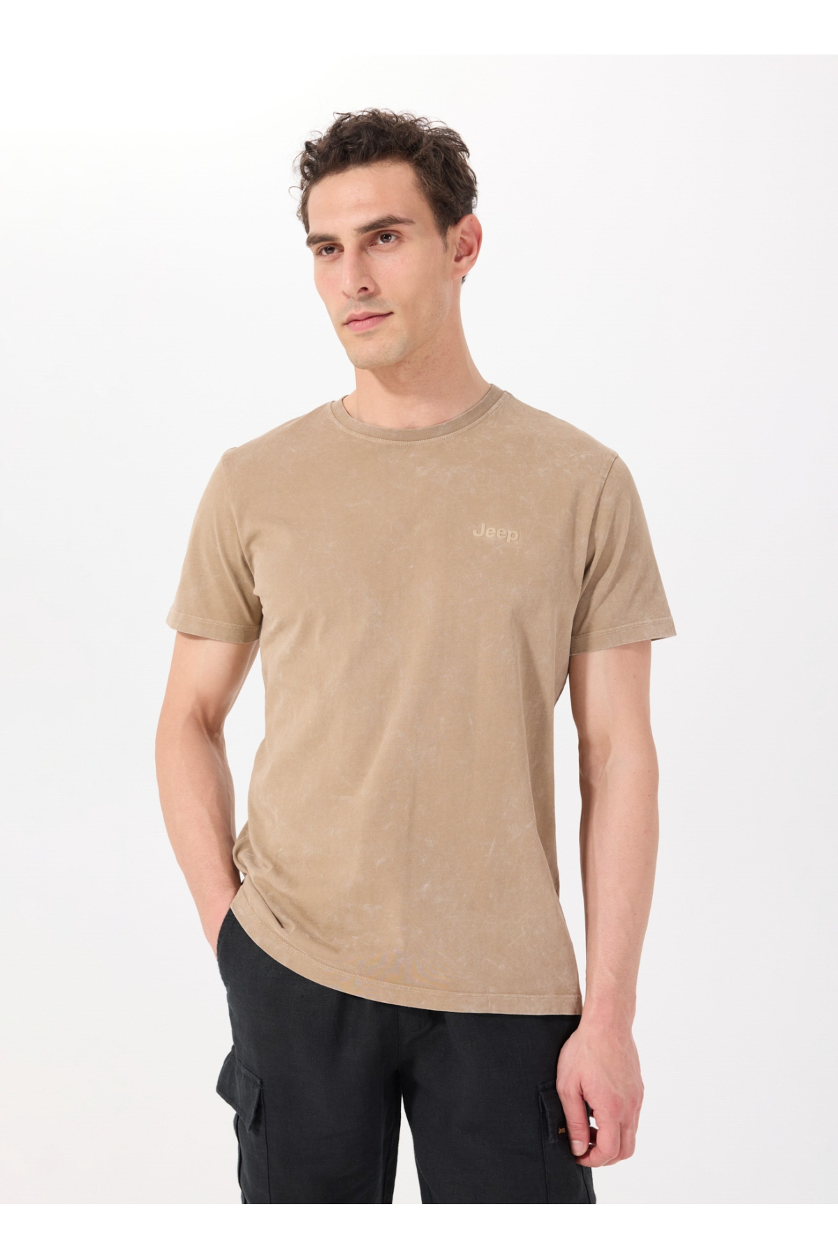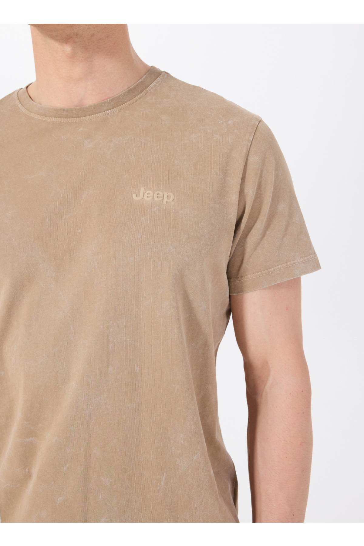 Jeep Bisiklet Yaka Baskılı Deve Tüyü Erkek T-Shirt C4SM-TST4707