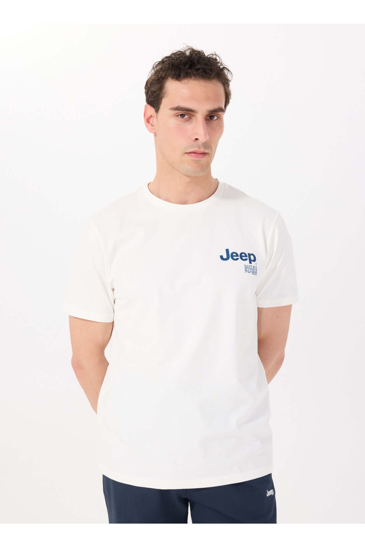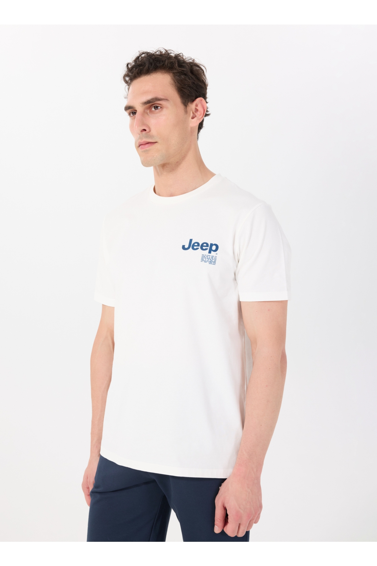 Jeep Bisiklet Yaka Baskılı Kırık Beyaz Erkek T-Shirt J5SM-TST7289