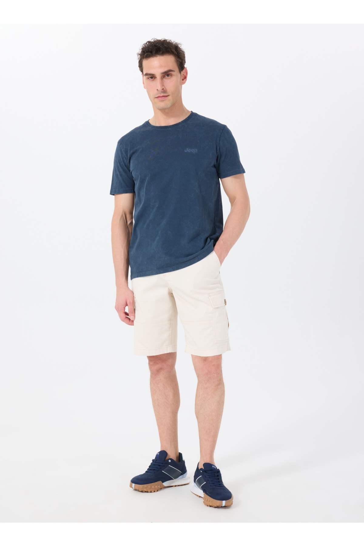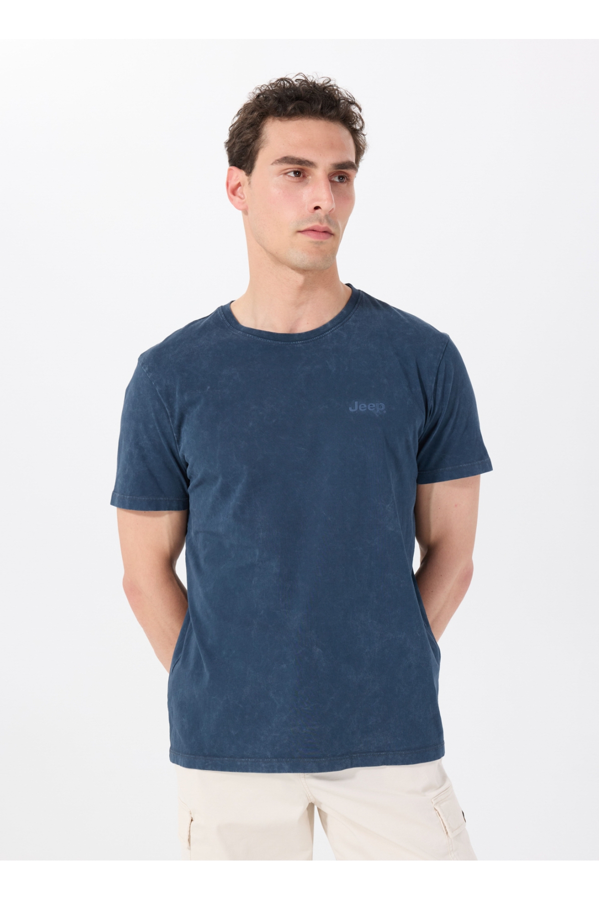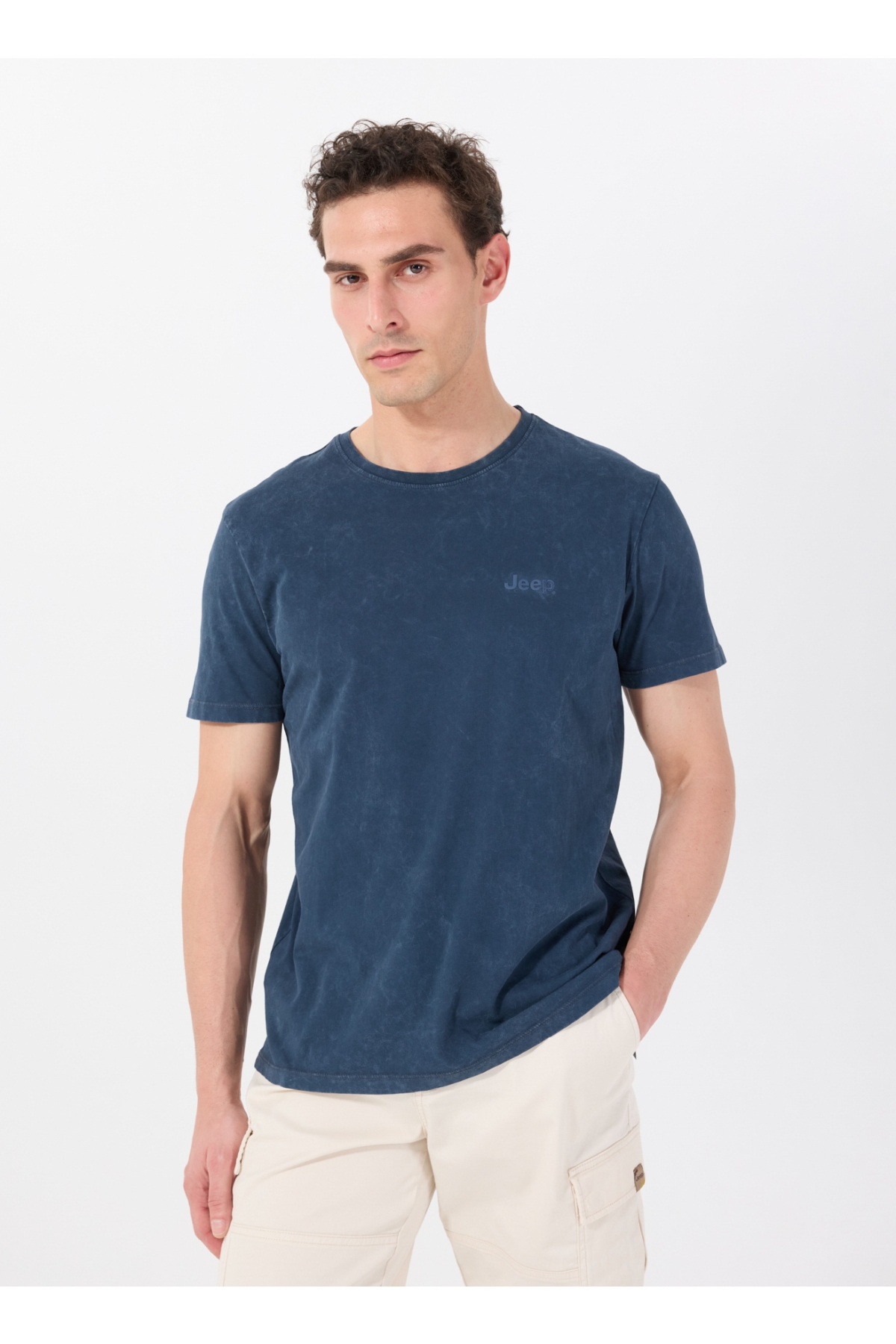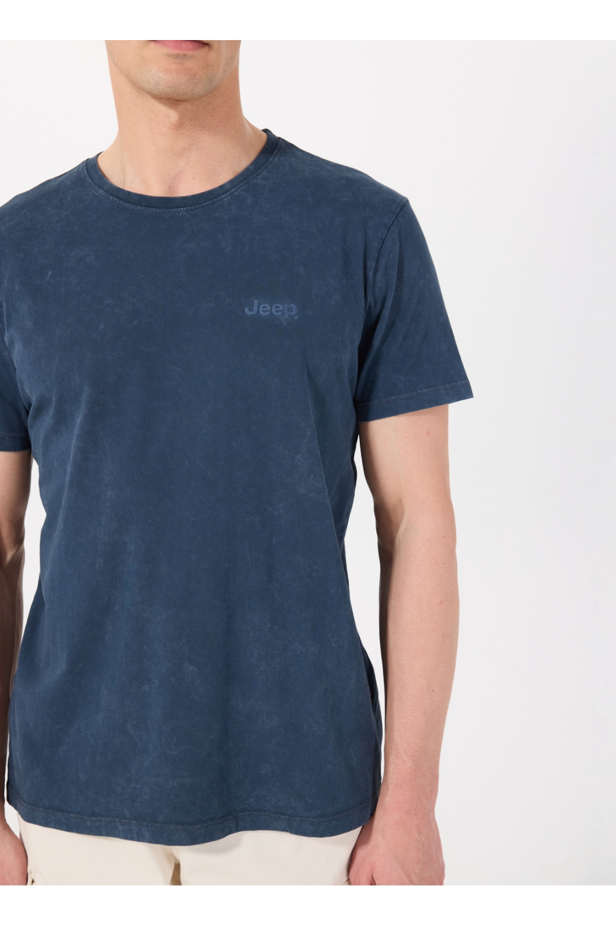Jeep Bisiklet Yaka Baskılı Lacivert Erkek T-Shirt C4SM-TST4707