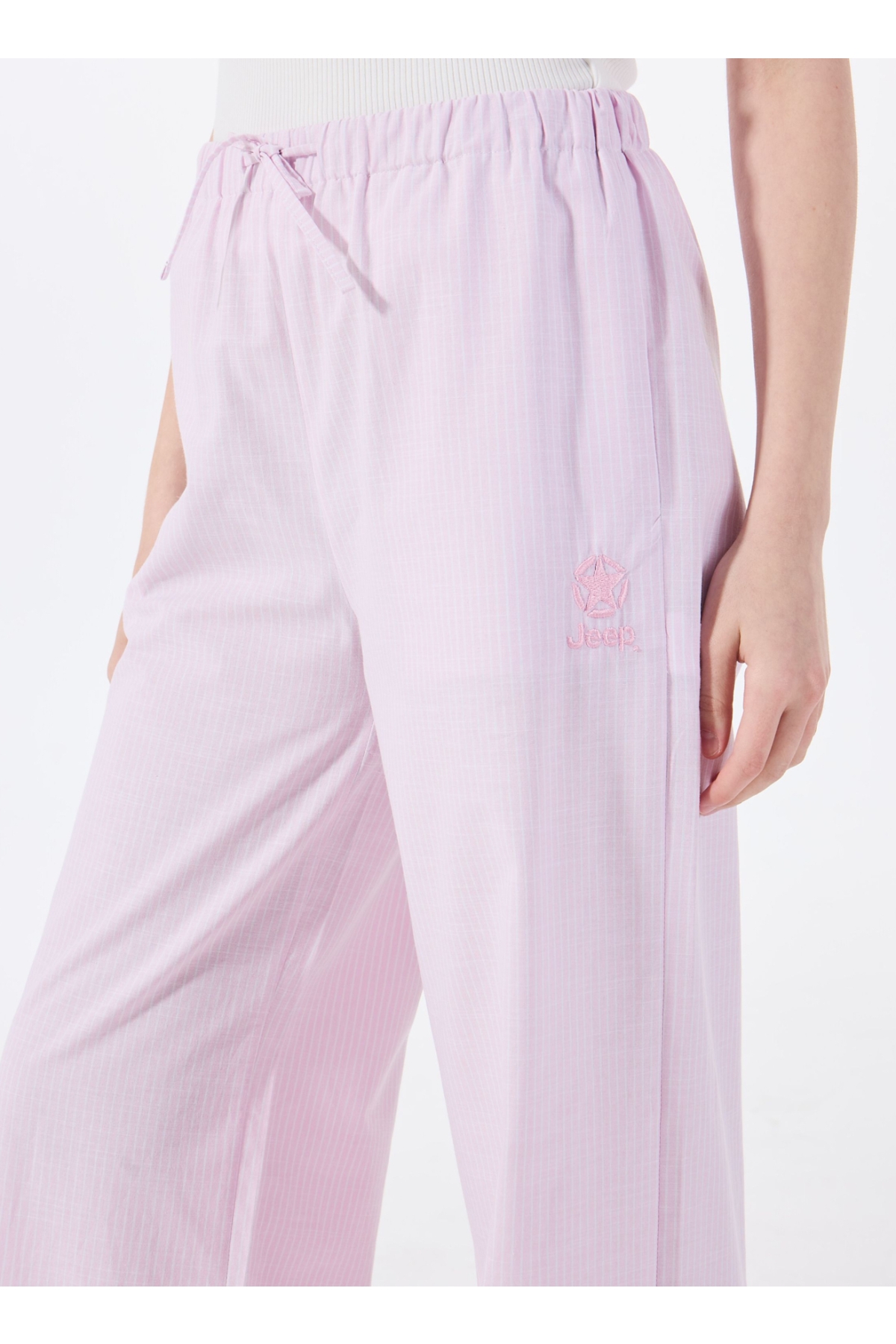 Renkli ve rahat bir stil arayanlar için mükemmel bir seçenek sunan bu pantolon, şıklığı ve konforu bir araya getiriyor. Bol kesim tasarımı sayesinde hareket özgürlüğü sağlarken, lastikli bel detayı ile gün boyu rahatlık sunuyor. Pembe rengiyle enerjik bir görünüm elde etmenizi sağlayan Jeep bol kesim çizgili pantolon, yaz aylarının vazgeçilmezi olacak.Günlük hayatta ya da tatil planlarınızda tercih edebileceğiniz bu parça tişörtler veya hafif bluzlarla kombinlenerek şık ve spor bir görünüm yaratır. Sandaletler veya beyaz spor ayakkabılarla tamamlayarak hem modern hem de dinamik tarzınızı ön plana çıkarabilirsiniz. Ayrıca büyük çantalarla yapacağınız kombinlerle günlük alışverişlerinize renk katabilir ya da plajda keyifli anların tadını çıkarabilirsiniz.%100 pamuklu dokusu ile cildinize dost olan bu pantolon, sıcak havalarda ferah hissetmenizi sağlar. Çizgili deseni ise zamansız modanın izlerini taşırken aynı zamanda farklı stillerle uyum sağlamanıza yardımcı olur.Kendi tarzınıza uygun aksesuarlarla zenginleştirebileceğiniz Jeep pembe kadın bol kesim çizgili pantolonu hemen gardırobunuza ekleyin! Şimdi satın alarak stilinizi yenileyebilirsiniz!