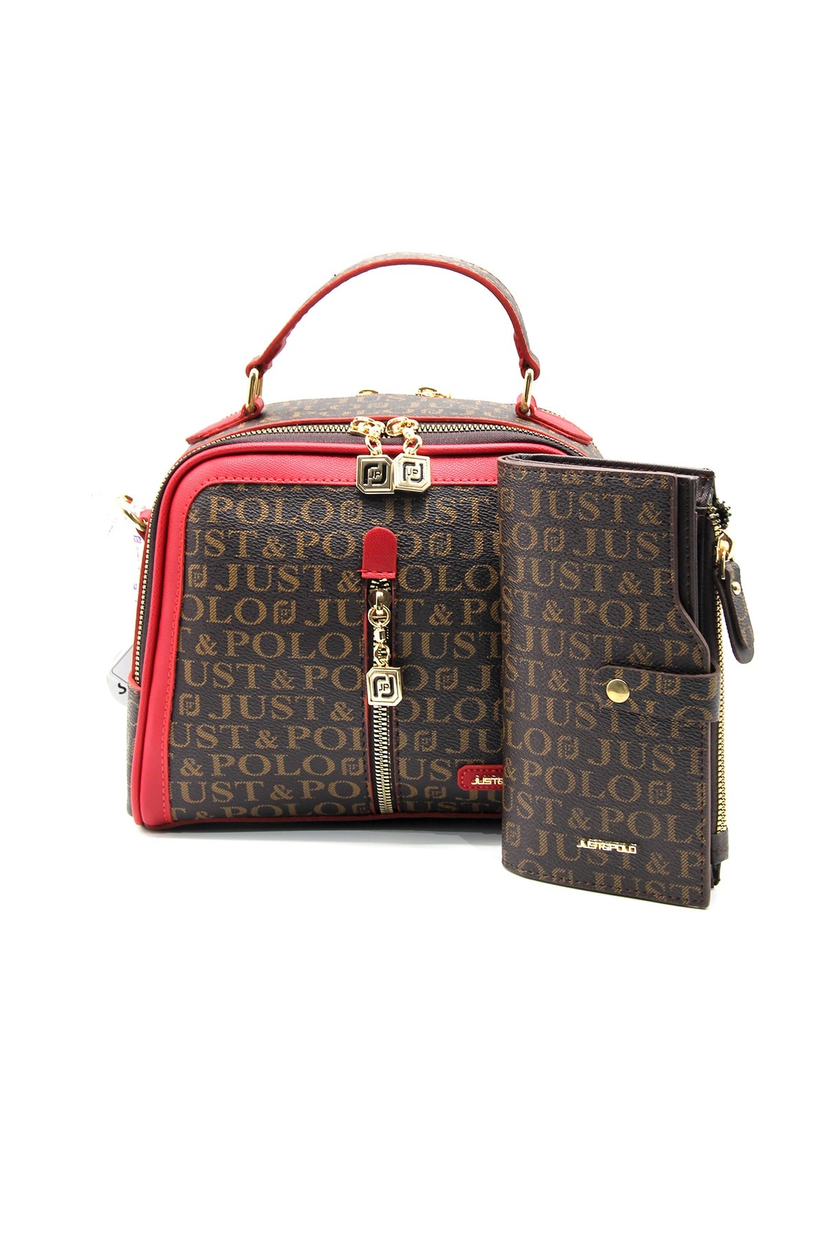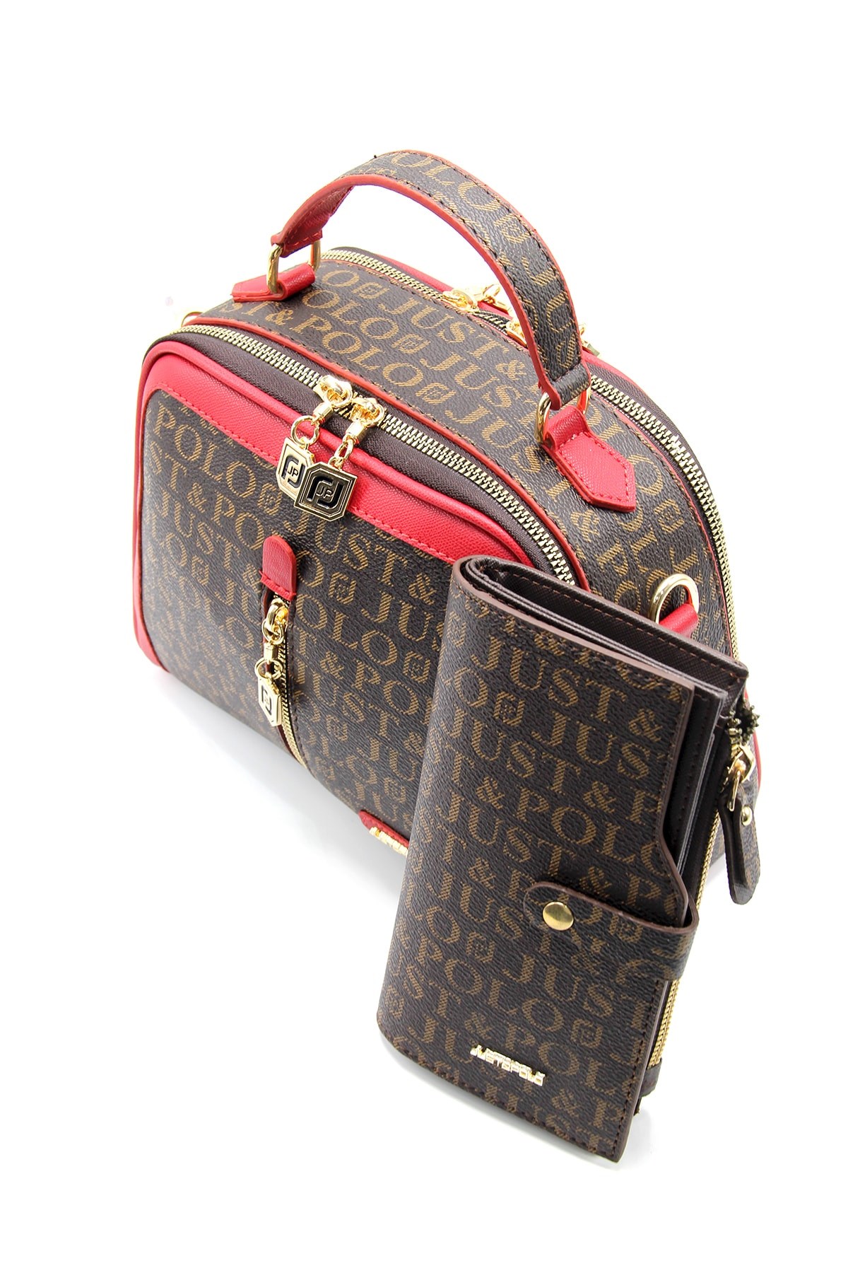 Orjinal yerli üretim Suni Deri Baskı Desen JUST POLO marka çanta ve cüzdan kombini