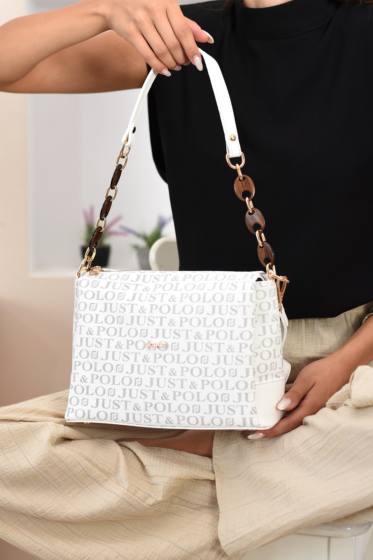 Just Polo Kolon Askılı Zincir Detaylı 5 Bölmeli Vegan Deri Kadın El ve Çapraz Omuz Çantası NL2802