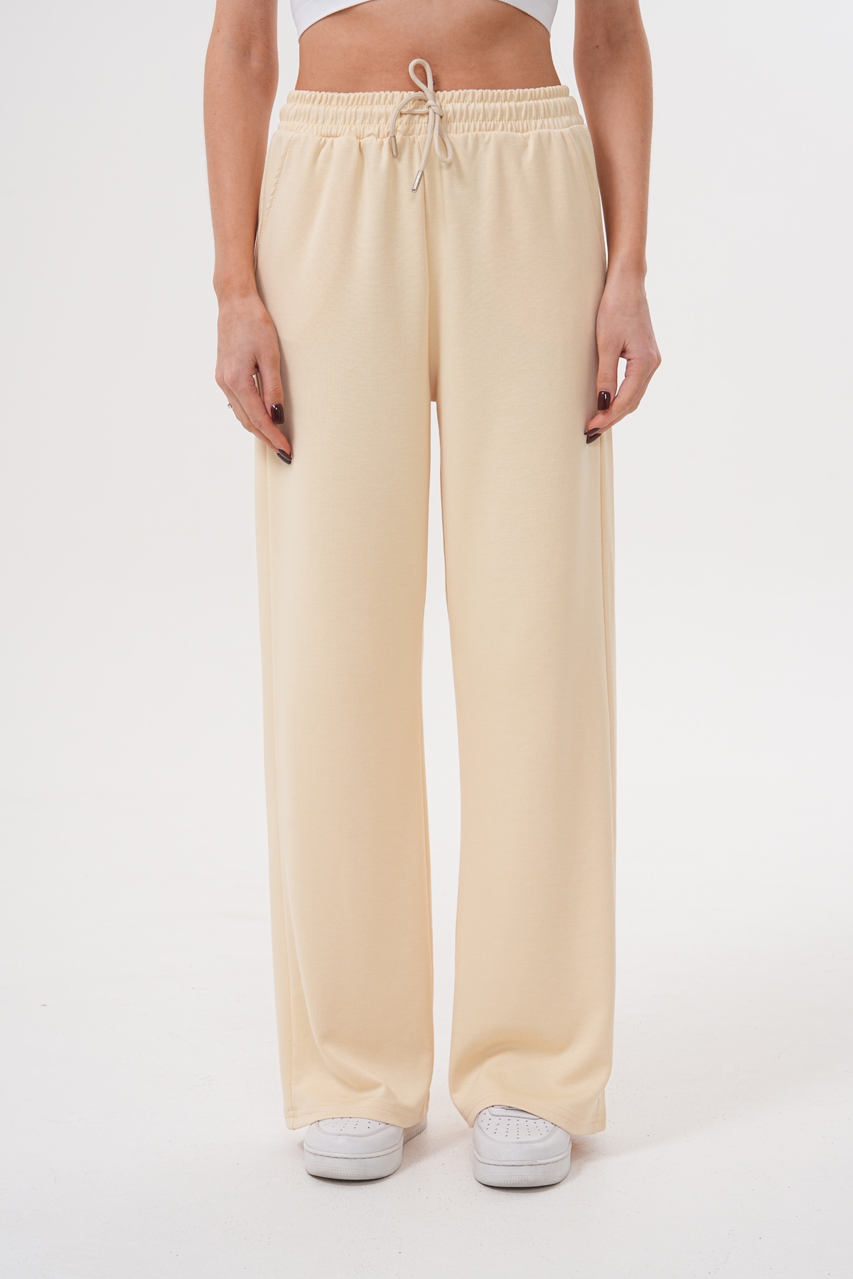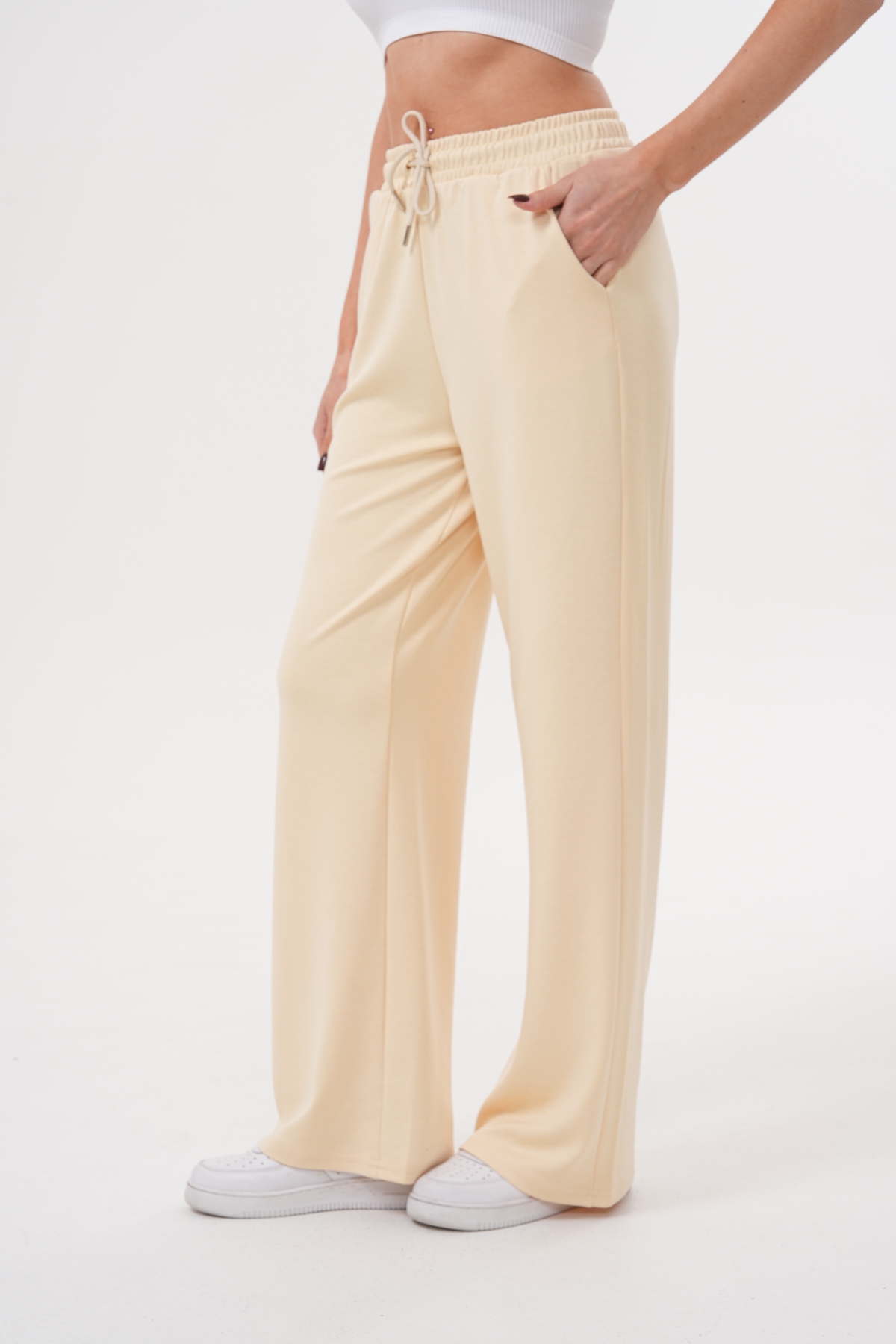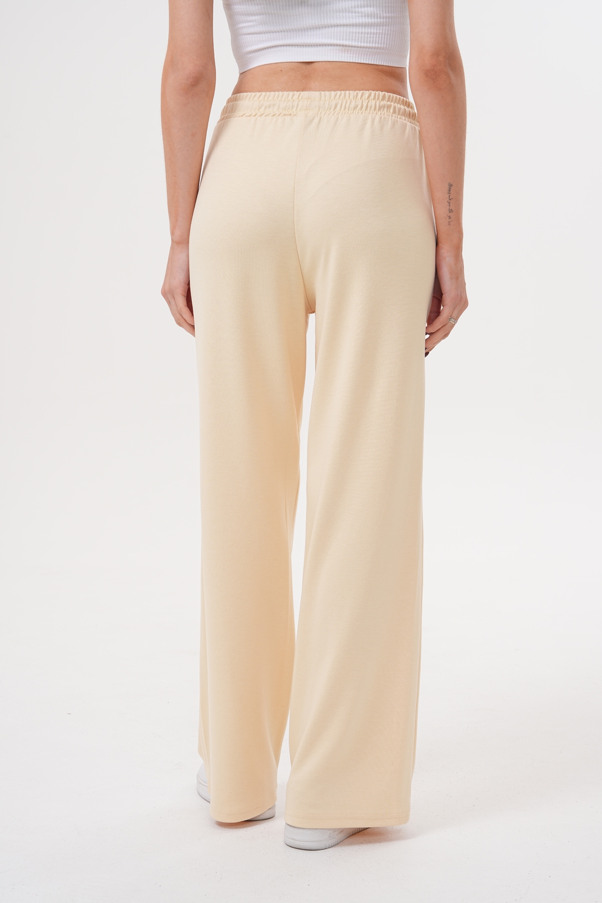 Elastik ayarlanabilir bel, yan cepli, esnek yapılı, geniş paça eşofman altı İçerik: %50 Modal %45 Polyester %5 Elastan Ürün boyu: S :106 cm M:107 cm L:108 cm 30° makinede yıkanabilir. Kurutucu kullanımı önerilmez. Beyazlatıcı kullanımı önerilmez. Tersten ve düşük ısı ile ütü önerilir. Stüdyo çekimlerinde renkler ışık farklılığından dolayı farklılık gösterebilir. Mankenin üzerindeki ürün 36/S bedendir. Mankenin ölçüleri: Boy: 1.72 cm Göğüs: 83 cm Bel: 58 cm Kalça: 87 cm