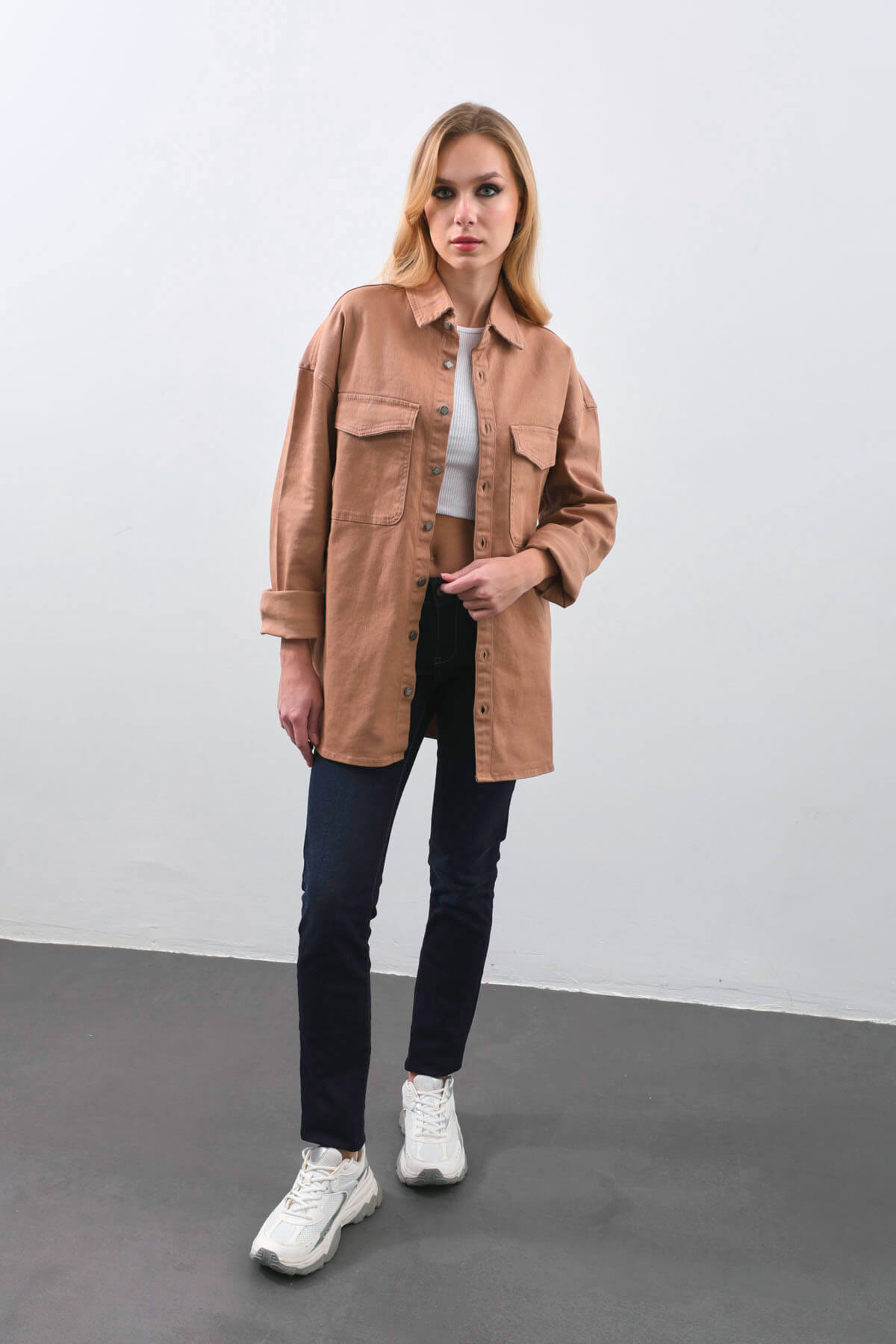 Ürünün omuzdan boy uzunluğu 76 cmdir. Likralı kumaşı sayesinde rahat bir giyim deneyimi sunar. Oversize kesimi, modern ve trend bir tarz yaratır. Göğüs cebi kullanışlı bir detaydır. Şık ve rahat bir görünüm için bu oversize jean gömleği dolabınızın vazgeçilmez parçalarından yapabilirsiniz.Kumaş Bilgisi :%98 Pamuk %2 ElestanFit Bilgisi :Regular Fit Rahatlık, tarz ve günlük kullanıma uygun şıklık bir arada. Her gün severek giyebileceğin, dolabında yerini kolayca bulacak parçalar. Kumaş kalitesiyle fark yaratır, sade ve kullanışlı tasarımıyla sana uyum sağlar. İster evde ister dışarıda, işe giderken ya da sevdiklerinle vakit geçirirken, günün her anında seninle. Farklı beden seçenekleriyle her vücut tipine uyum sağlar, zarif detaylarıyla stilini tamamlar. Şimdi favori parçanı seç, konforu ve şıklığı bir arada yaşa! Aradığın her ürün Markapia’da – şimdi mağazamızı ziyaret et!