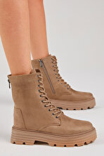 Kadın Siyah Cilt Termo Taban Nakışlı Dilim Desenli Cırtlı Bağcıklı ve Fermuarlı Bot