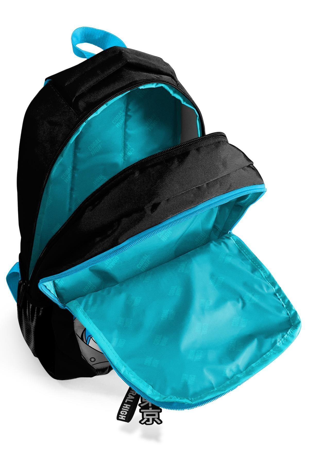 Kids Siyah Mavi Anime Desenli Üç Bölmeli Okul Sırt Çantası 23666