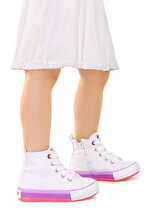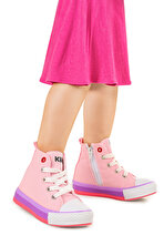 Kiko KidsTinna Bağcıklı Kız Bebek Boğazlı Keten Spor Ayakkabı Beyaz - Pembe