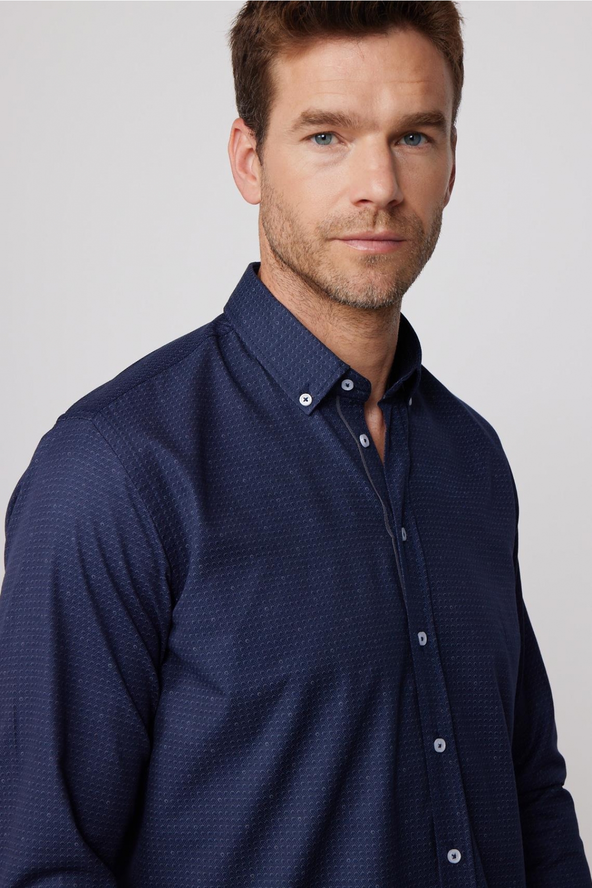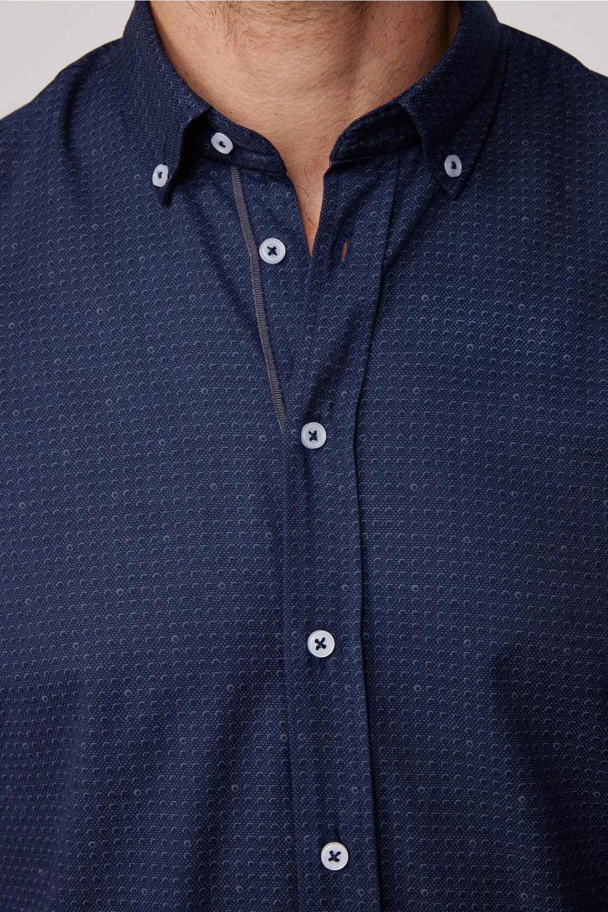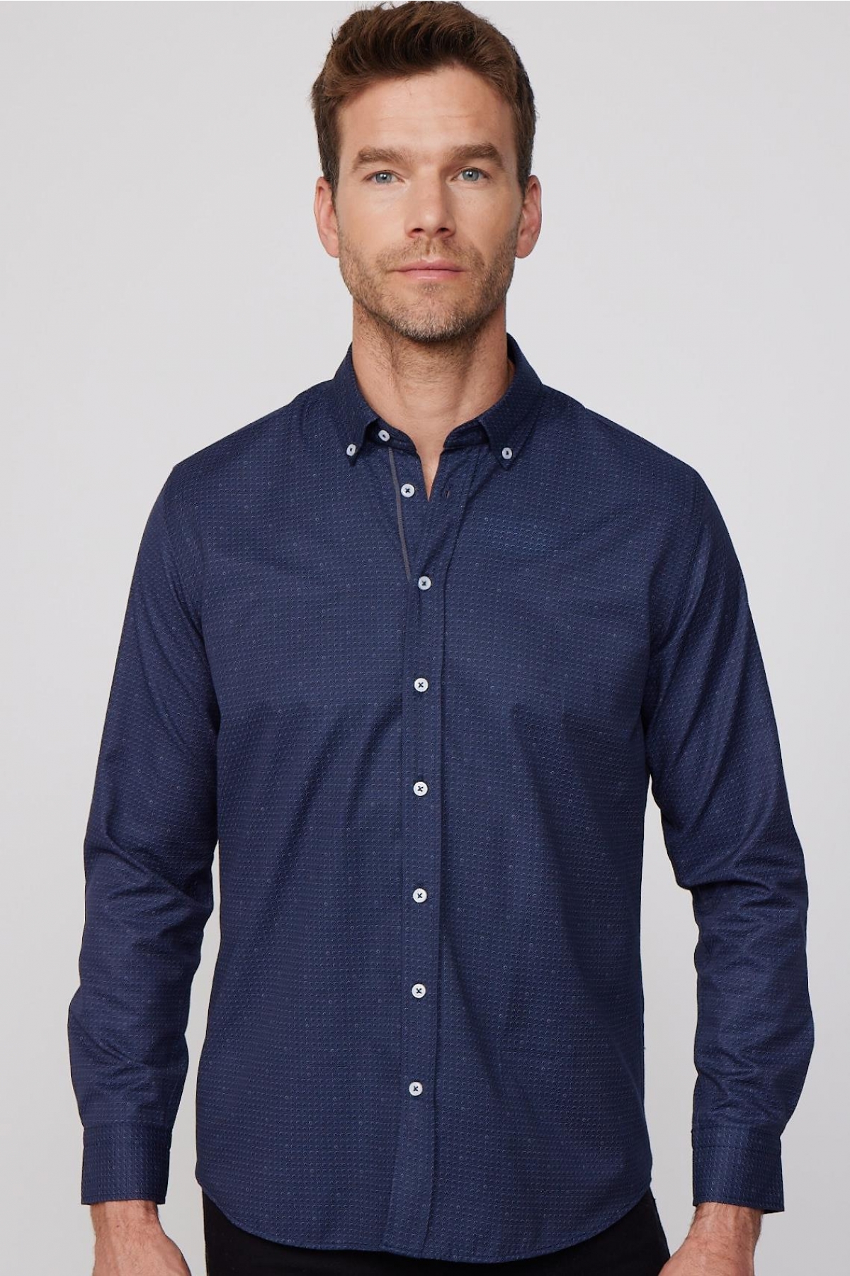 Klasik Fit Pamuklu Kolay Ütü Baskılı Lacivert Erkek Gömlek