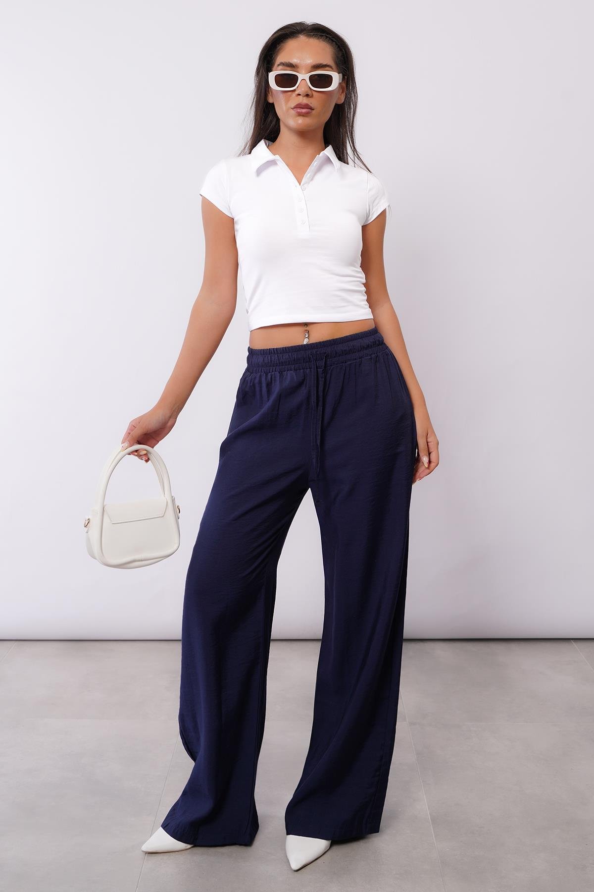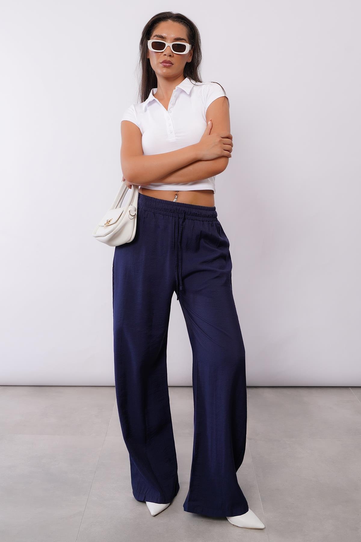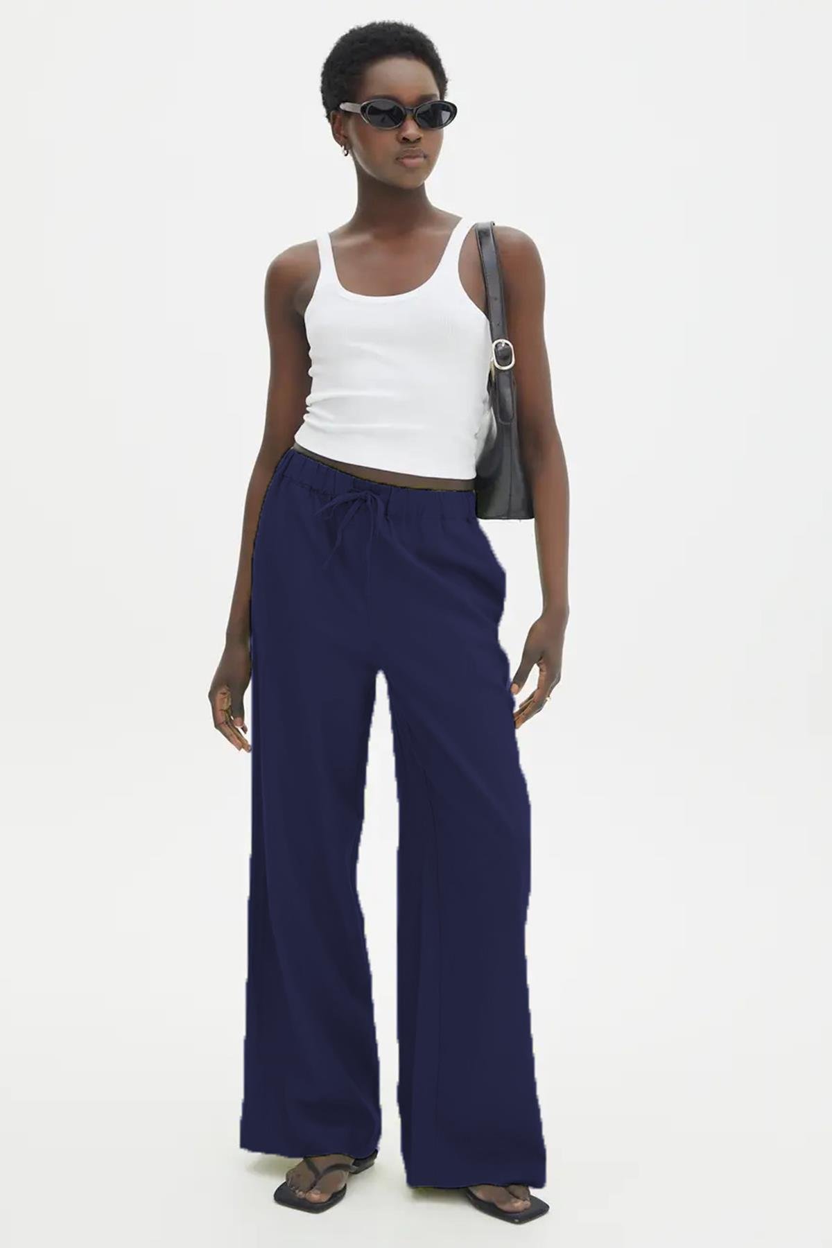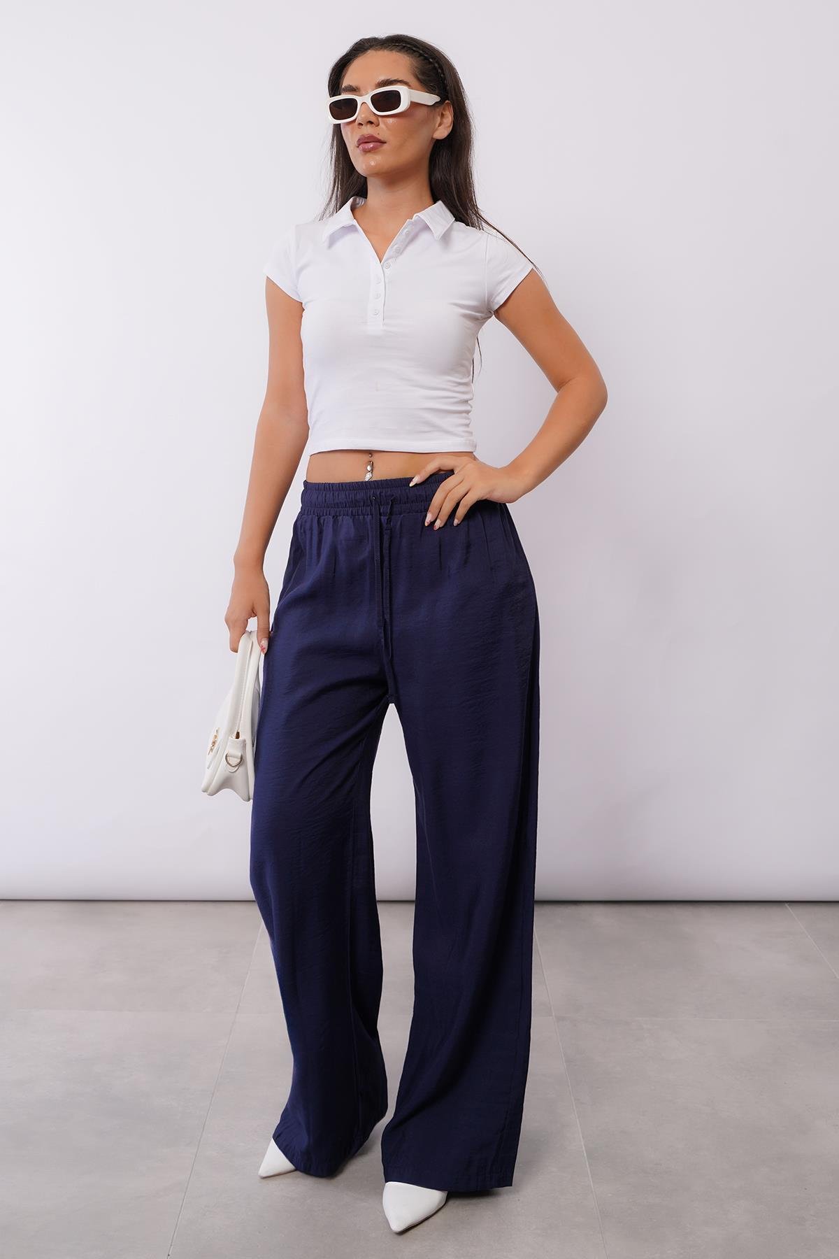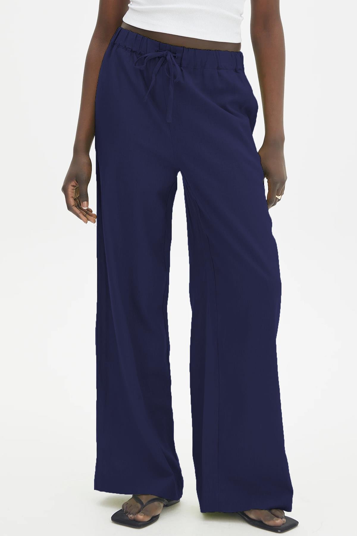 AnasayfaGiyimPantolonLacivert geniş paça kadın pantolon mg1982